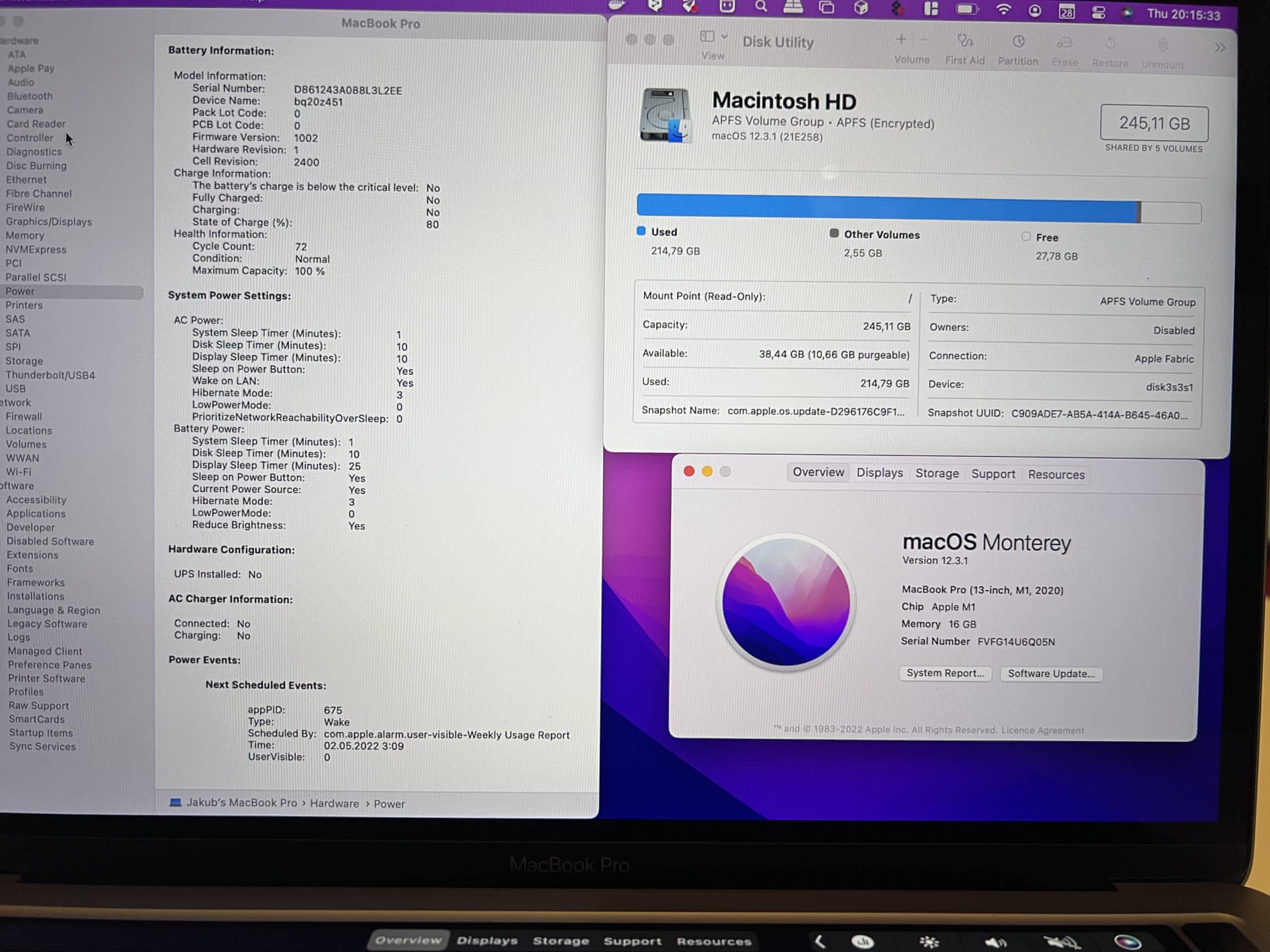 Prodám MacBook Pro 2020 16GB unifikované paměti s 256GB SSD diskem.