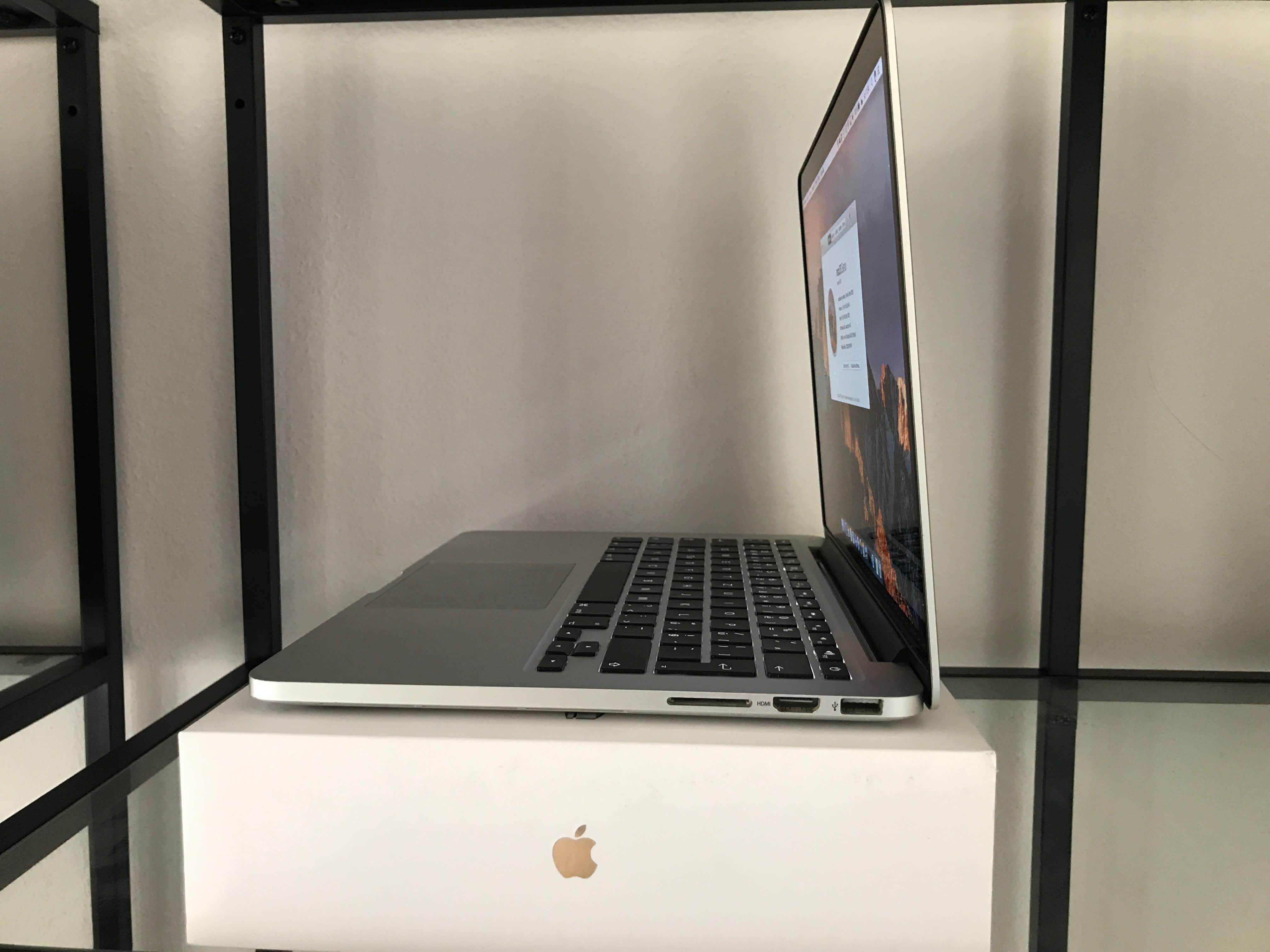 Prodám MacBook Pro (Retina, 13-inch, Rok 2013) Název procesoru: Intel Core i5 Rychlost procesoru: 2,6 GHz Paměť RAM: 8 GB Disk: 256 GB SSD MacBook je ve výborném stavu, nošen v obalu, bez škrábánců a poškození, vše je plně funkční. Nainstalována nejnovější verze MacOS. Bude uveden do továrního nastavení jako při koupi nového zařízení. Baterie 92% původní kapacity – stále výborná výdrž přes 5 hodin práce.