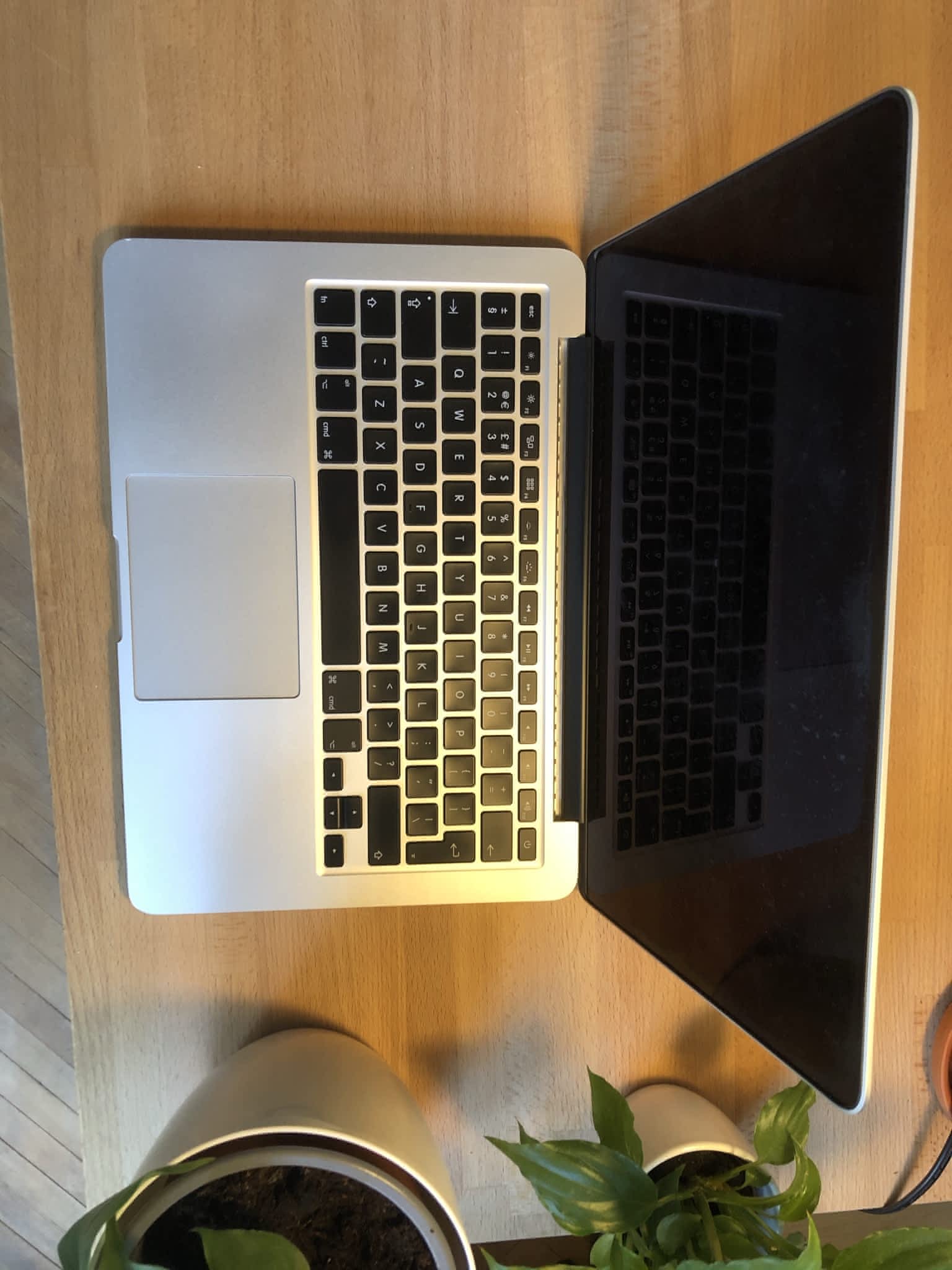 Notebook má novou baterii a nový disk Transcend JetDrive 512GB. Notebook je ve výborném stavu, vše kompletně funkční, nese pouze drobné známky používání. Na notebooku je původní display s antireflexní vrstvou, na které jsou při vypnutém macu vidět otlaky od klávesnice. Možná by toto šlo vyměnit v rámci kdysi svolávací akce Apple, ale už jsem se k tomu nedostal.