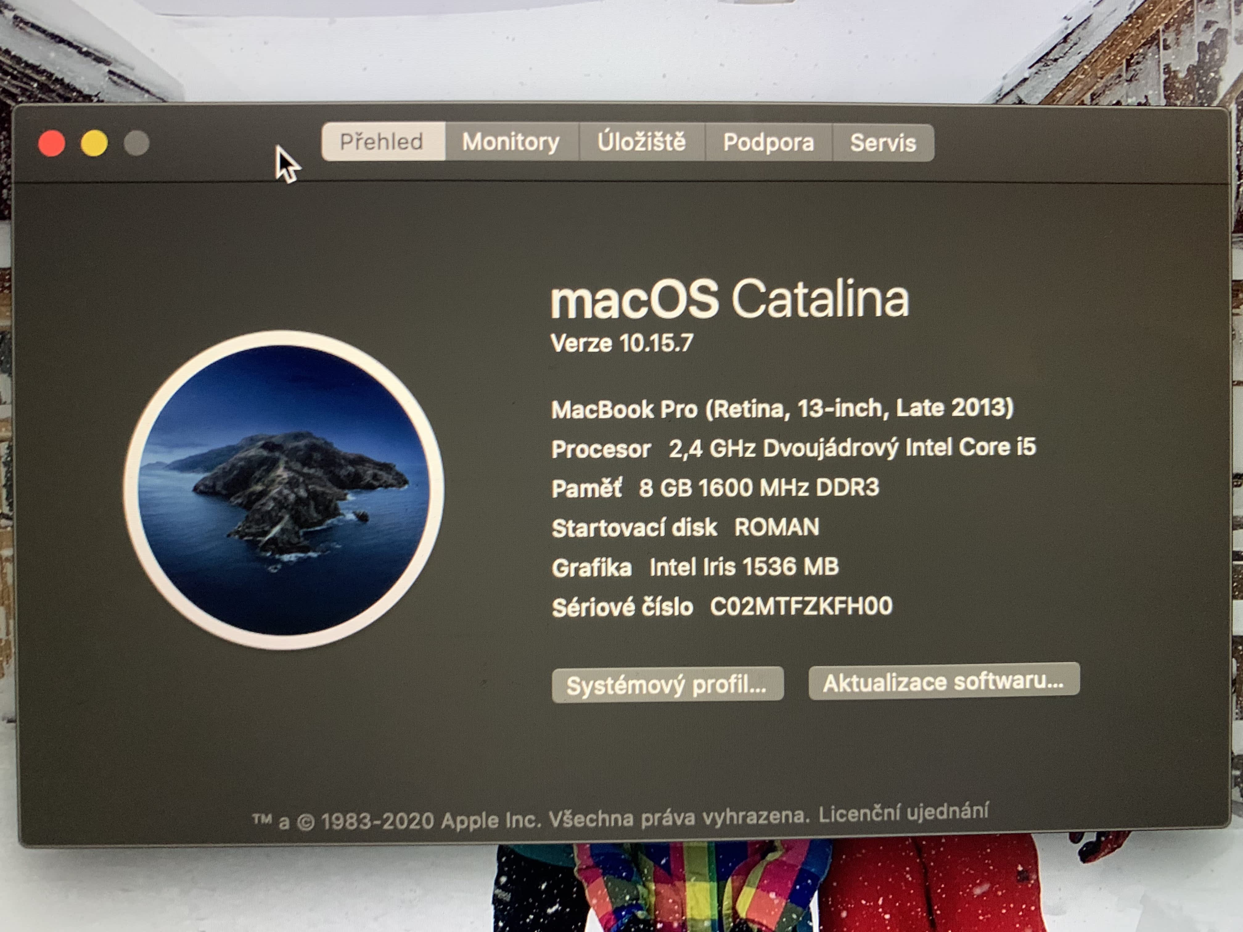 Dobrý den, prodám MacBook Pro (Retina, 13-inch, Late 2013) s pamětí 8G 1+ SSD 256GB, procesor 2,4 GHz Dvoujádrový Intel Core i5 a grafika Intel Iris 1536 MB.