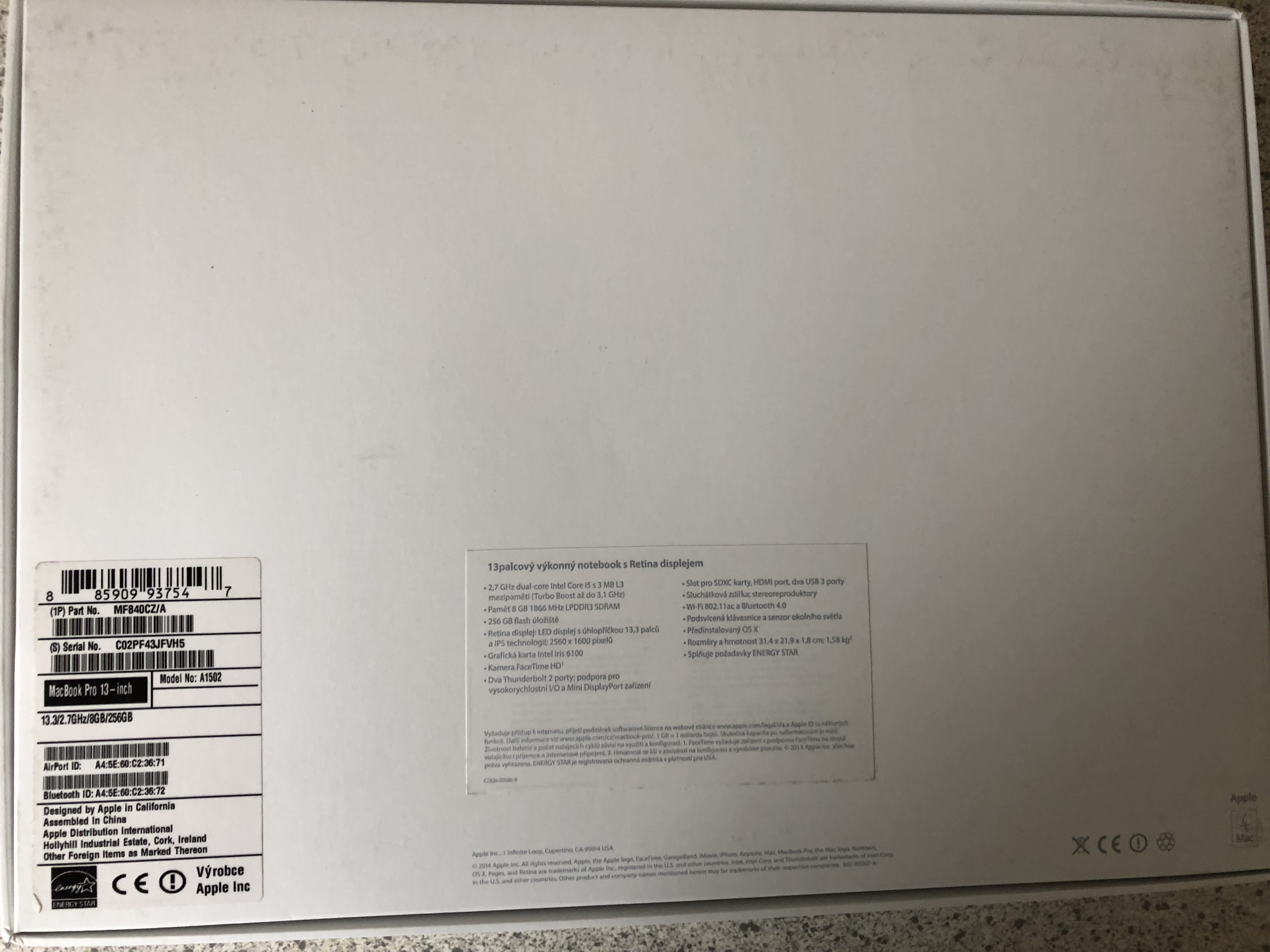 Prodám MacBook PRO Retina 13,3" model early 2015 s českou klávesnicí bez závad. Zakoupen v CZ.