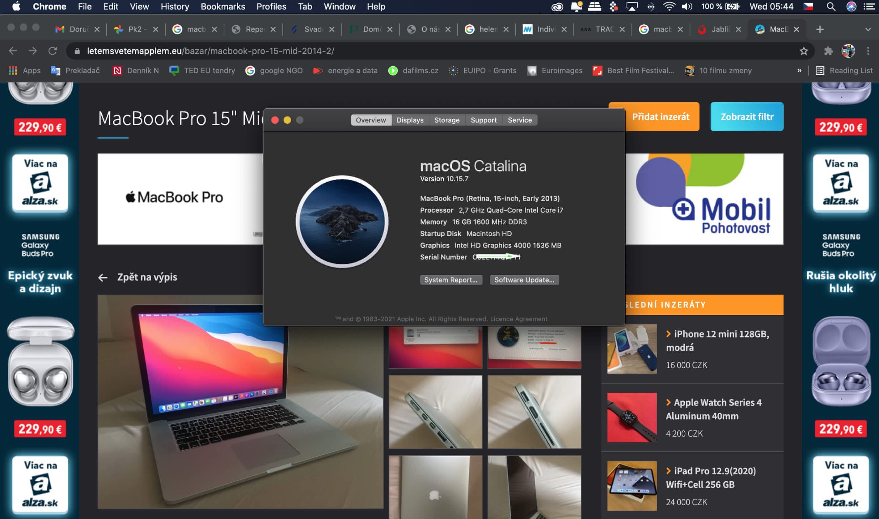 Počítač je v perfektním stavu, drobné oděrky, česká klávesnice. V originálním balení + 2 nabíječky!!! Obsahuje instalaci macOS Catalina 10.15.7. Počítač je 100% funkční + nainstalován balík Adobe CC 2018 (Photoshop, Premiere PRO, atd.) vše dokonale běhá, ideální na střih videa a grafické práce. Podrobné specifikace: MacBook Pro (Retina, 15-inch, Early 2013), Procesor 2,7GHz Quad-Core Intel Core i7, Memory 16GB 1600 MHz DDR3, SSD 512 GB, Intel HD Graphics 4000 1536 MB.