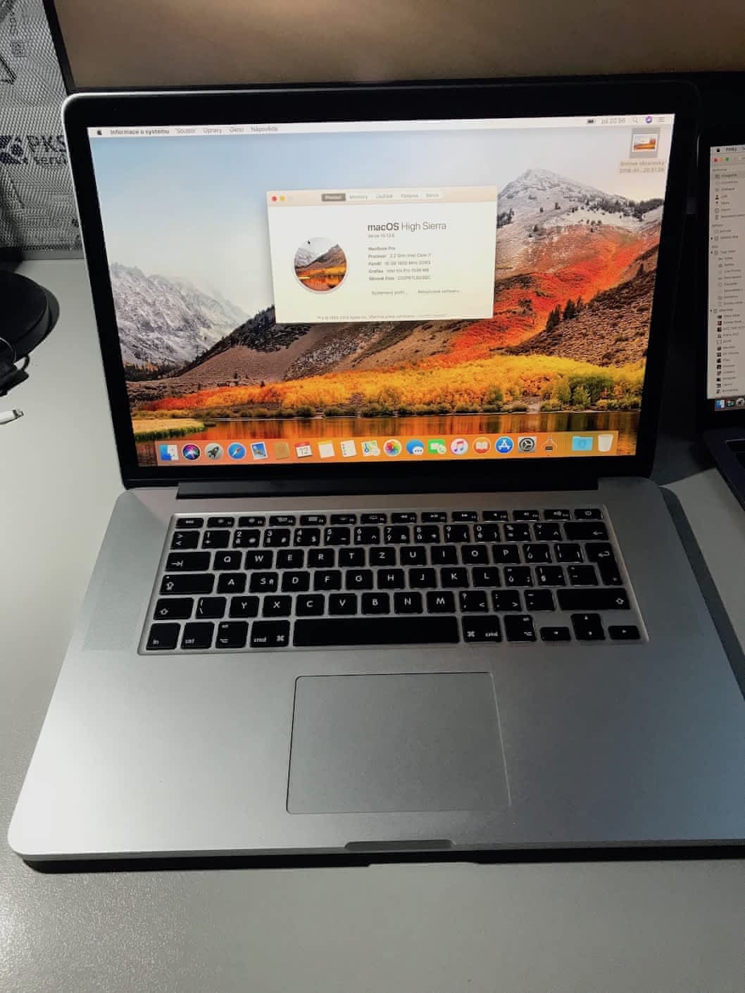 prodám MB PRO RETINA 15-inch mid 2014. Zakoupený v květnu 2015 v iStyle Ostrava. Specifikace: 2,2 GHz i7, 16 GB 1600 MHz DDR3, Intel Iris Pro 1536 MB, 250 GB SSD, baterie 634 cyklů, display nemá žádné vypálené pixely. Stoprocentní stav bez vad. K Macbooku přidávám origo krabici i nepoužité samolepky 8-), dále 2x origo Apple zdroj 85W MagSafe 2 (jeden jsem požíval v kanceláři a jeden doma). Dále přidávám origo Apple redukci z thunderbolt na ethernet a origo Apple redukci z mini display port na DVI. Navíc přidám i neoprenový ochranný obal od Dicoty.