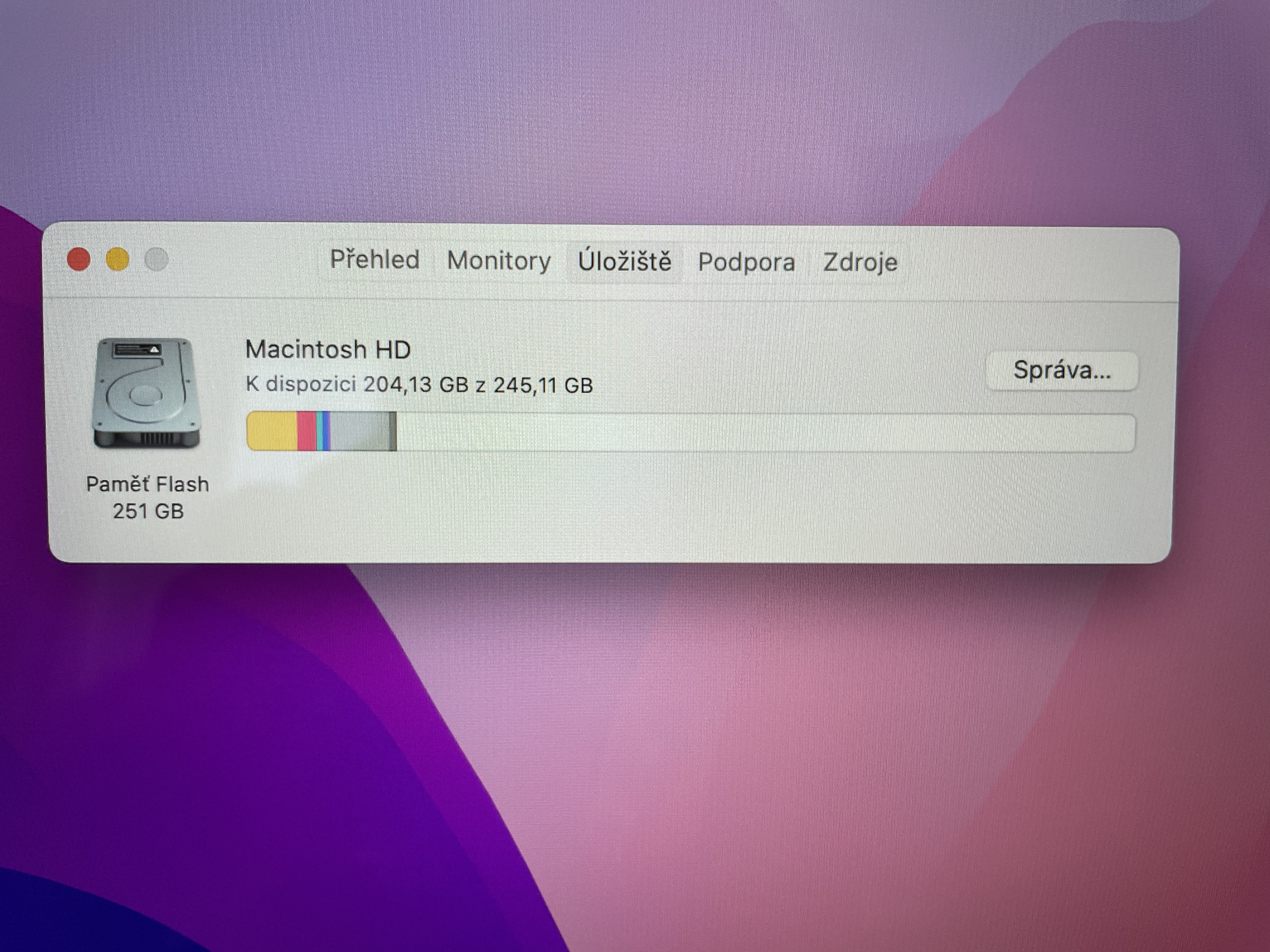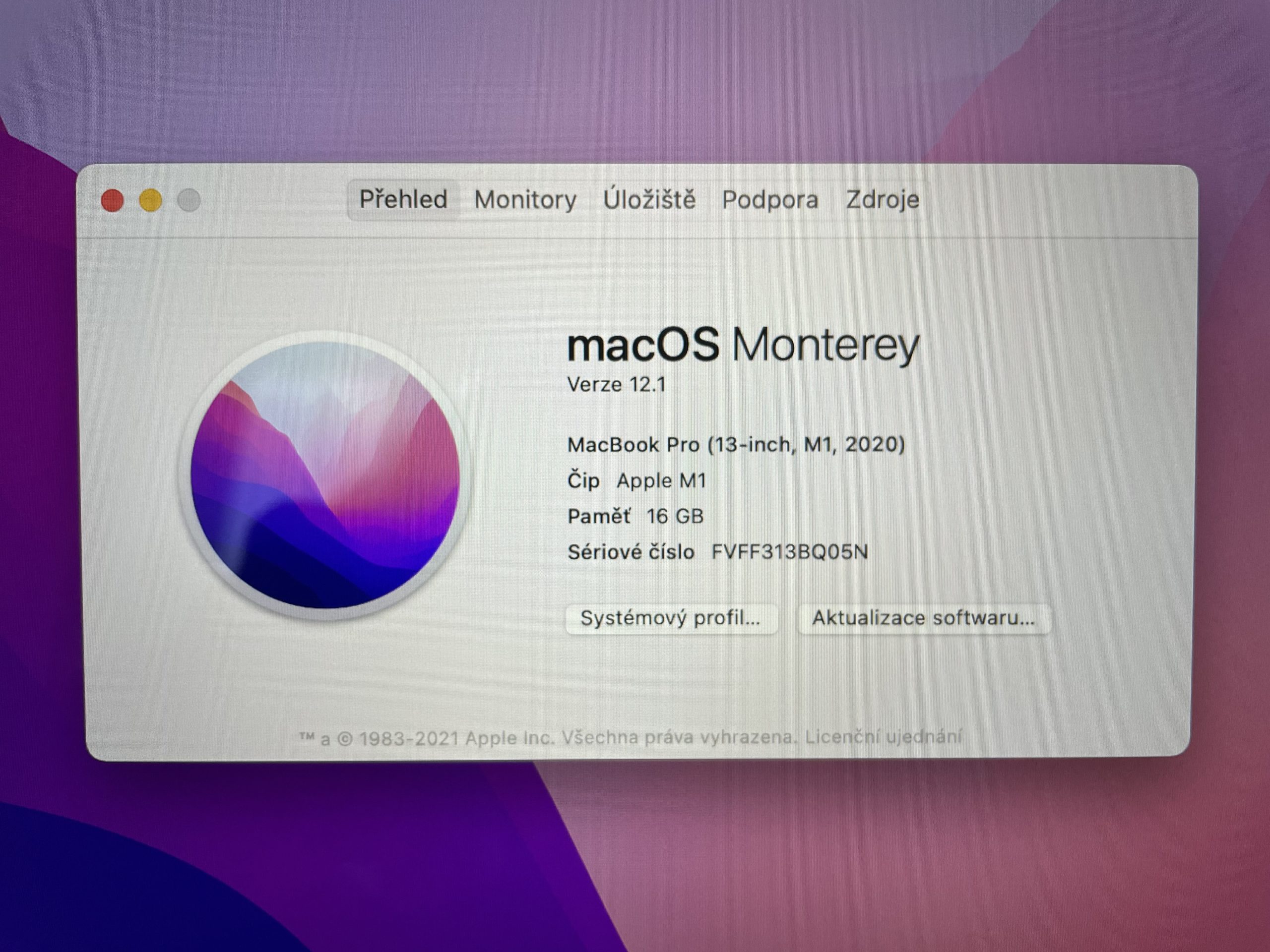 Konfigurace jak uvádím v titulku, tedy plnohodnotný procesor M1 včetně 8-jádrové grafické jednotky, doplněný o 16GB operační paměti. Systémový disk SSD ve velikosti 256GB.