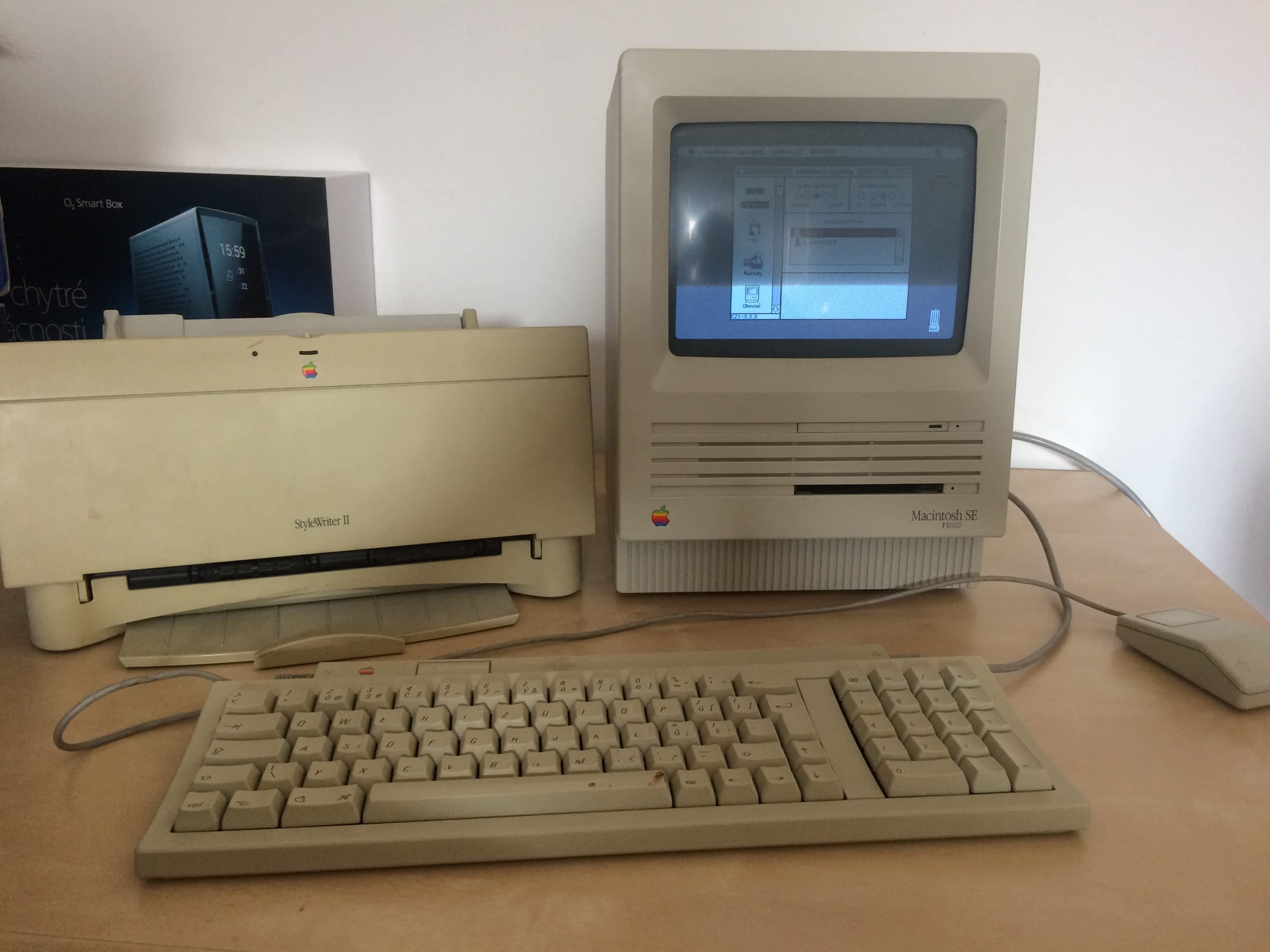 další kus fukční historie Macintosh SE model M5011 kompletní balení starého Macintoshe s tiskárnou, klávesnicí a myší. Vše plně funkční. r.v. 1989