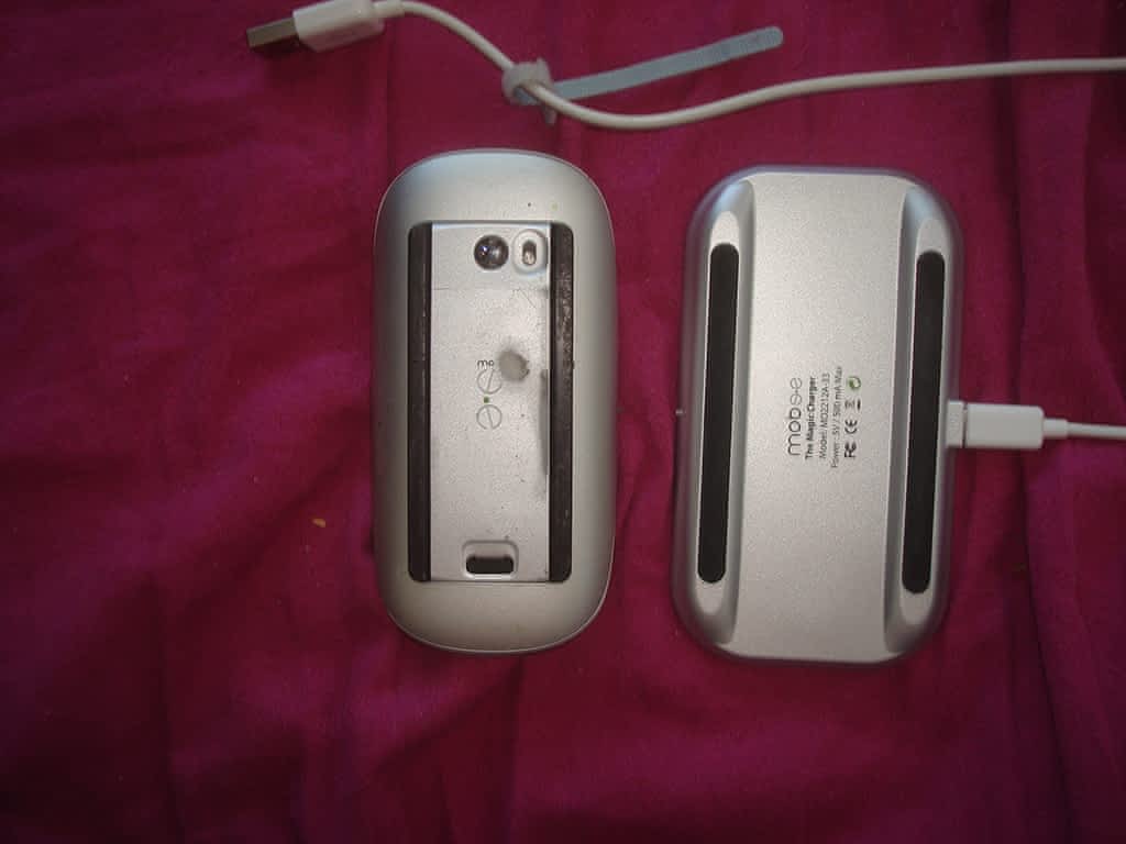 Prodám pouzitou (sezhora stale docela peknou, jen vespod uz je "ojezdena") Magic mouse 1 s Mobee Chargerem. Originalni kryt pro tuzkove baterky zmizel kdesi, netusim kde, pouzivam ji k plne spokojenosti s Chargerem a nejsou s ni zadne problemy. Kolik vydrzi na jedno nabiti netusim, ale kdyz nepracuji, tak ji pokladam na Charger a vybitou jsem ji nemel ani nepamatuji…
