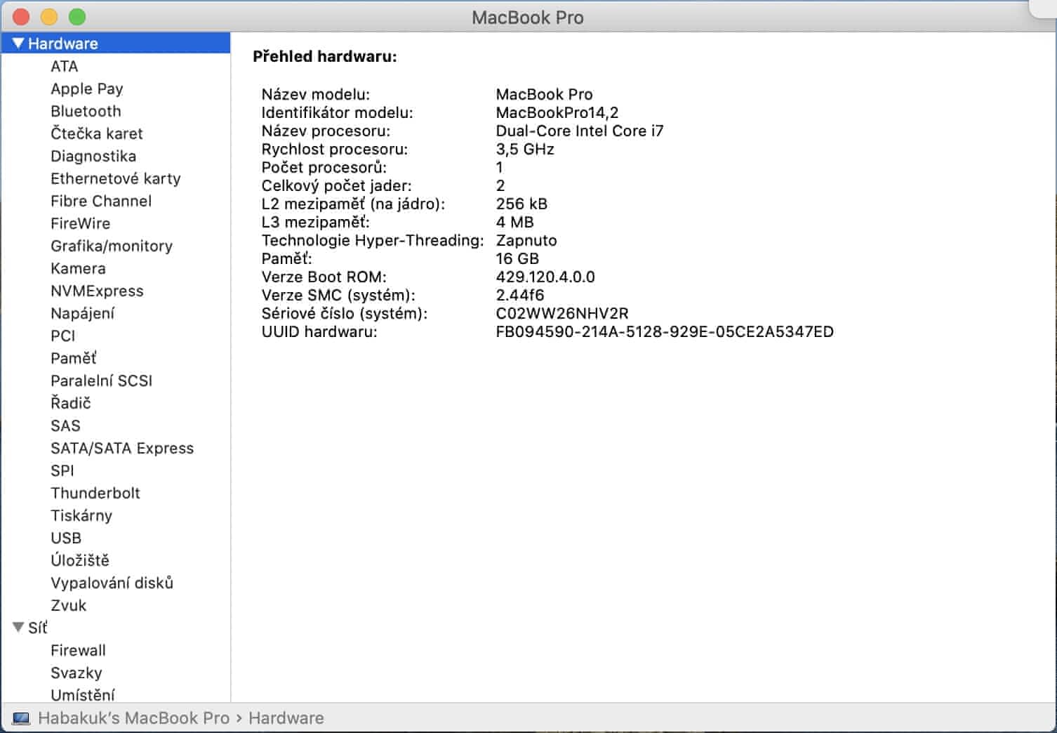 Prodám MacBook Pro 13" 2017 16GB RAM 521GB SSD Procesor i7 3,5GHz – 4 thunderbolt porty
