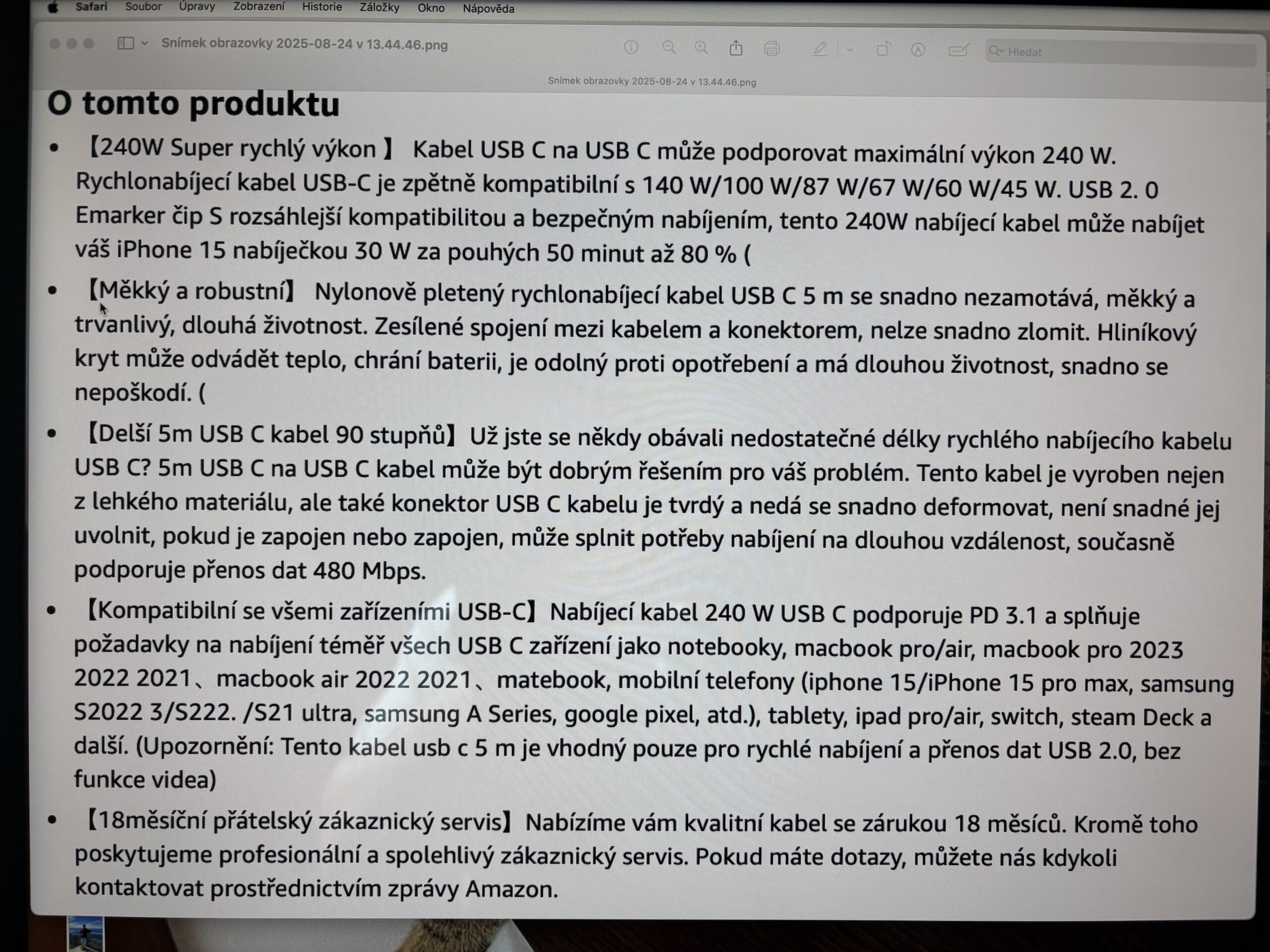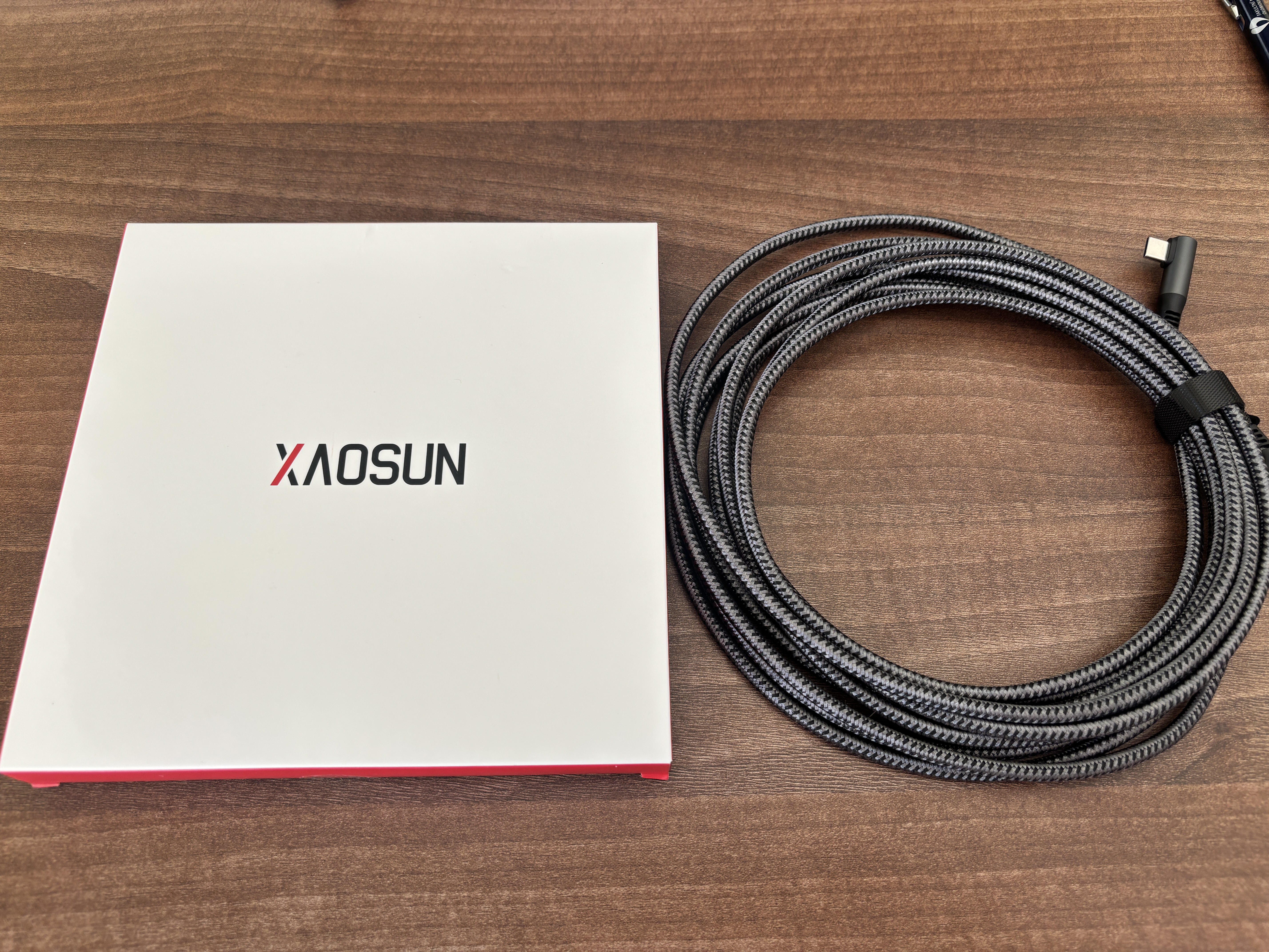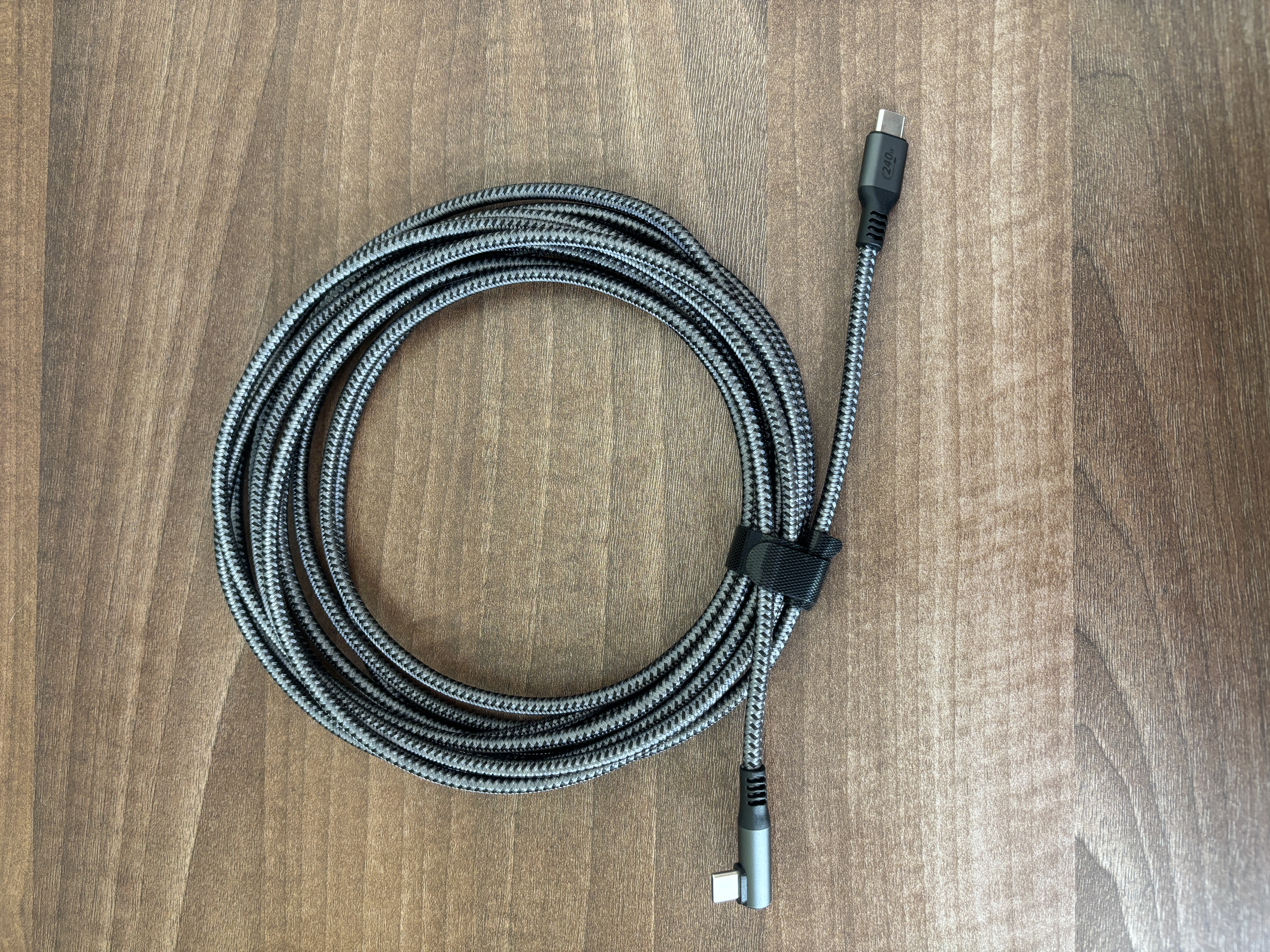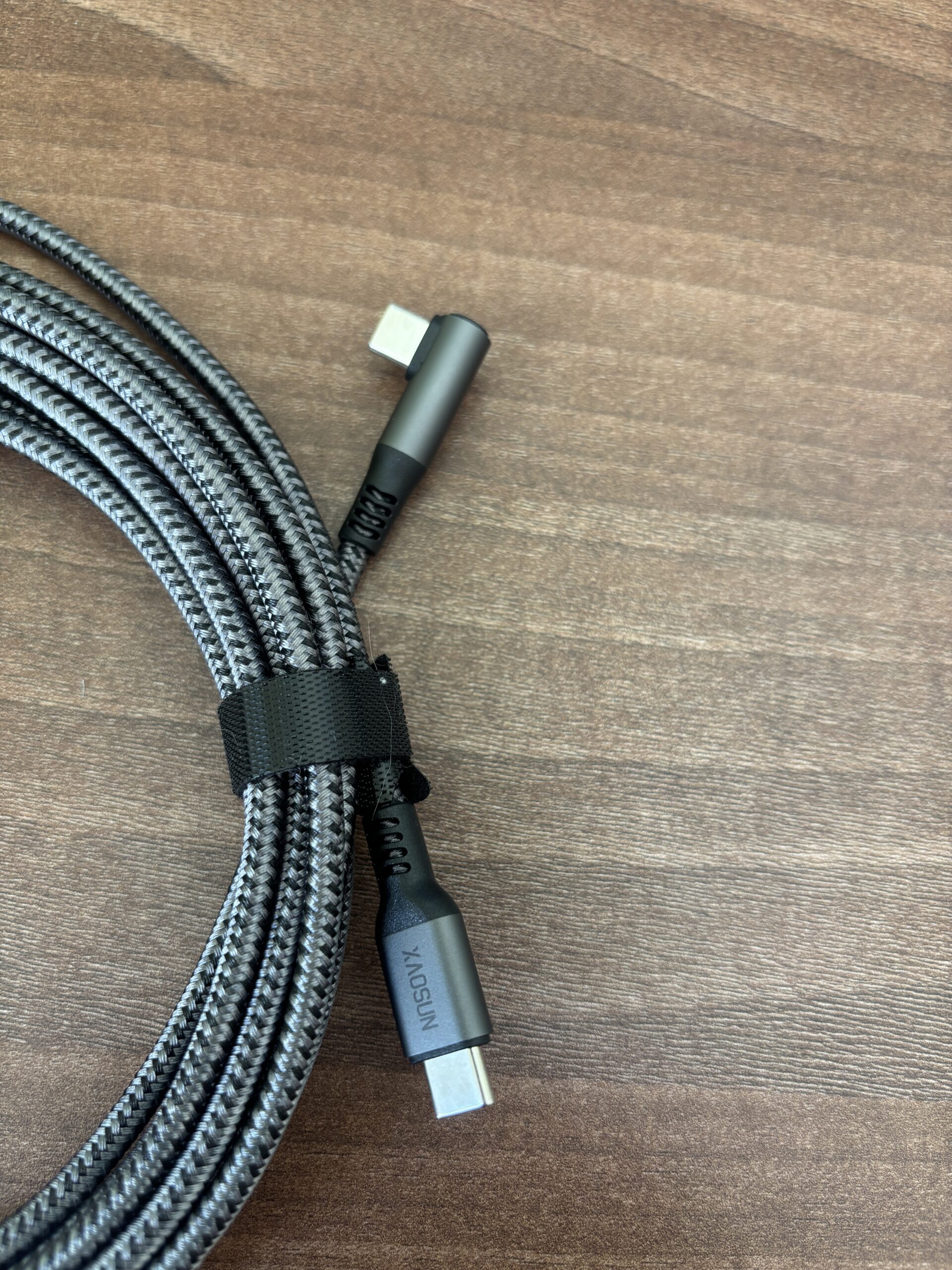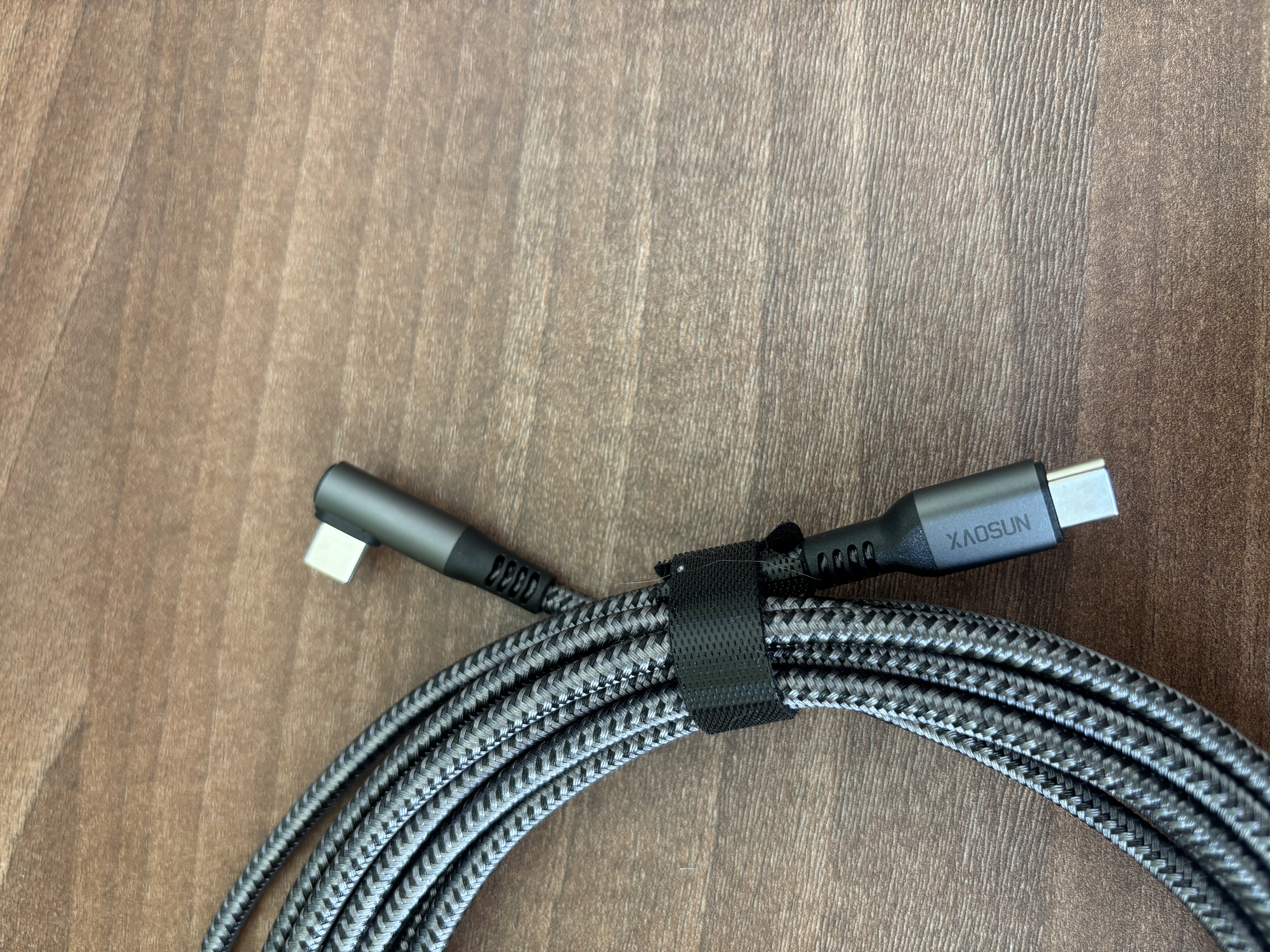 Prodám cca 3x použitý nabíjecí a datový kabel XAOSUN 240 W USB C na USB C kabel 5 M, nabíjecí kabel USB C 90 stupňů, PD 3. 1 (48V/5A) Rychlonabíječka kompatibilní s iPhone 15/16, MacBook Air/Pro, iPad Air/Pro, Samsung Galaxy S23+ Ultra, Pixel bezpečnostní čip E-Marker 2.0