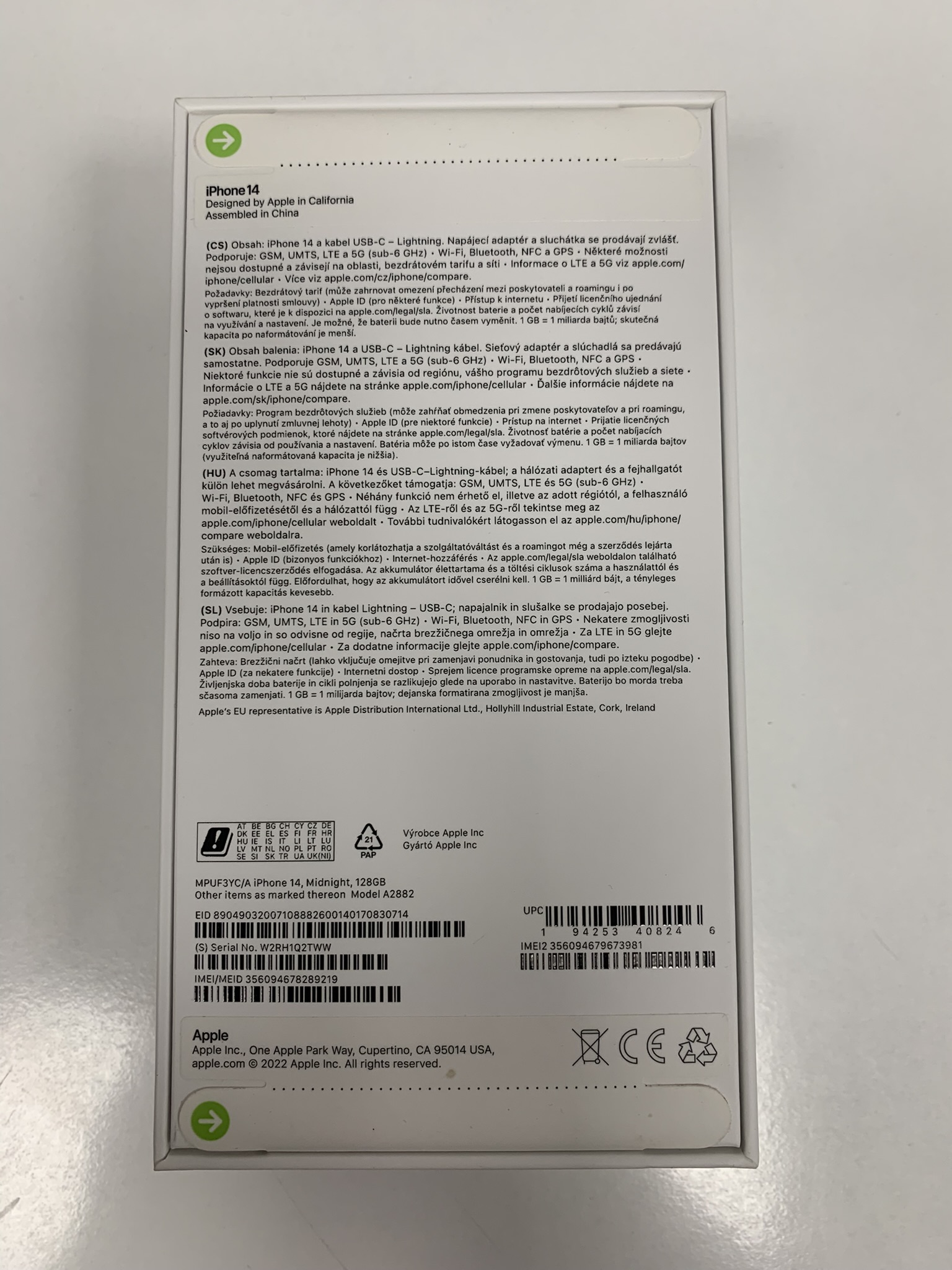 Prodám nerozbalený iPhone 14/128GB-Midnight black – s originálním koženým pouzdrem Apple.