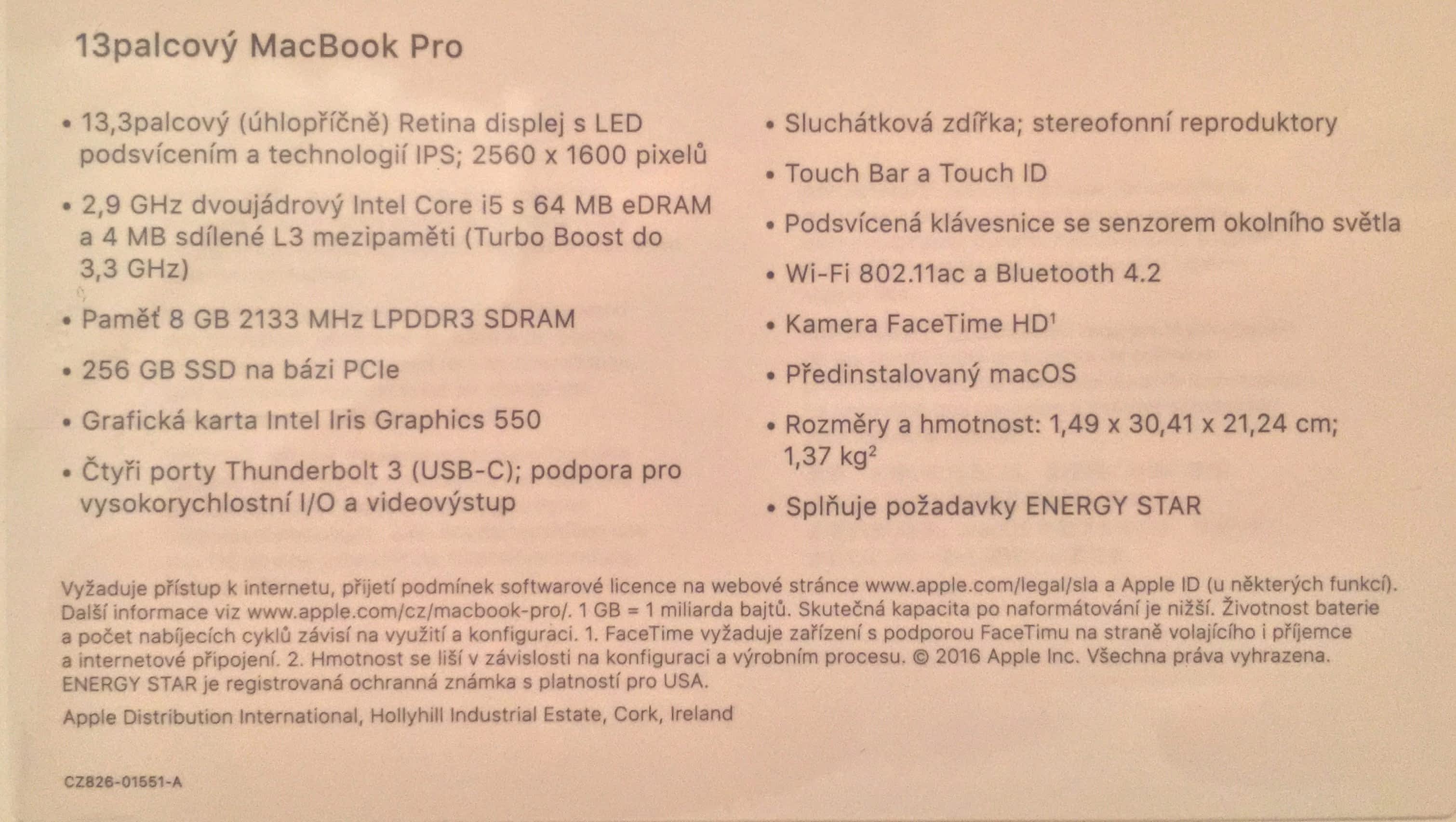 Prodám nový, ještě nerozbalený MacBook Pro 13" s Touch Bar, 256GB SSD – stříbrný . Záruka 24 měsícu