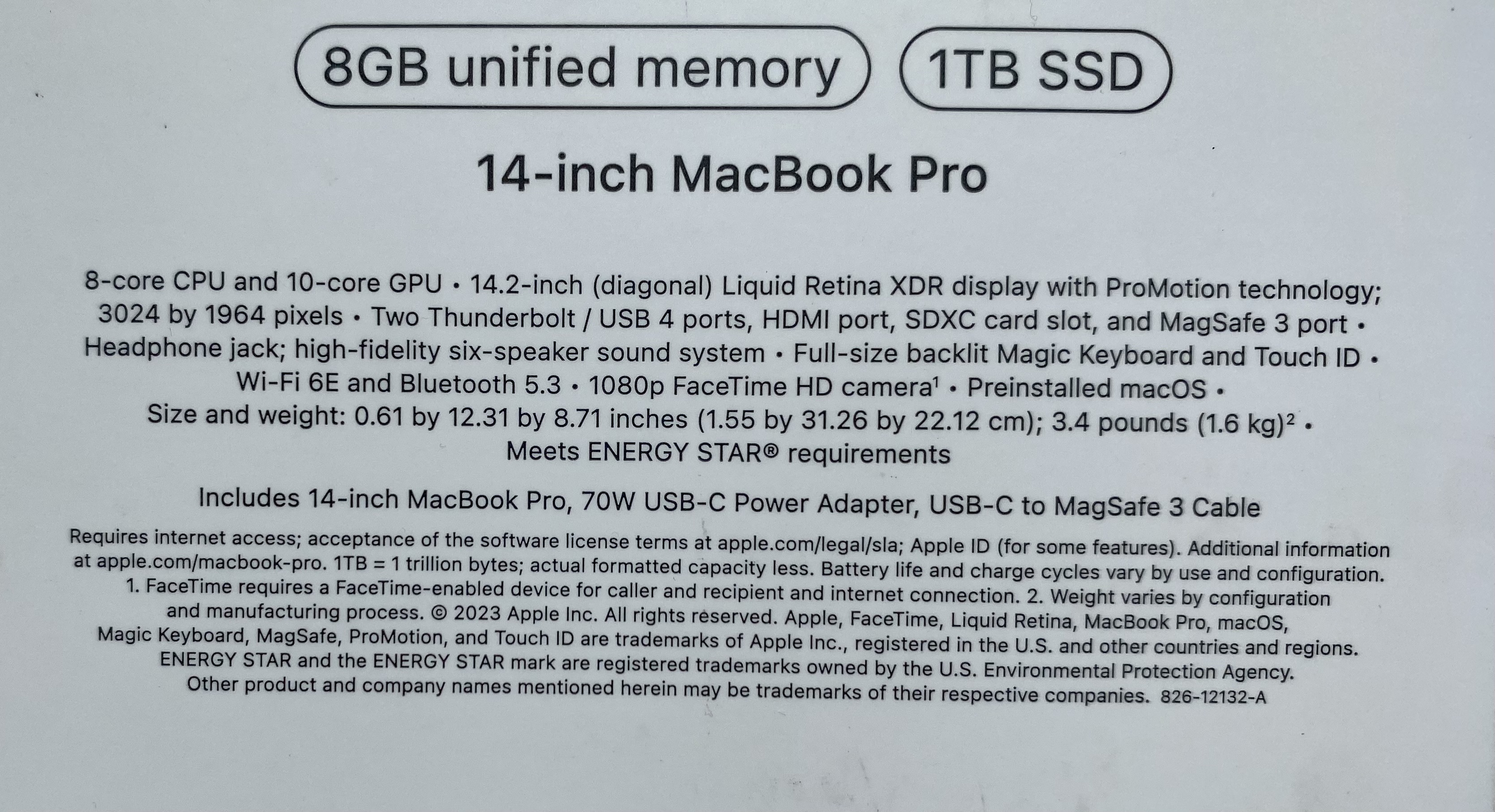 NEW MacBook Pro 14" M3, 8GB RAM, 1TB SSD
