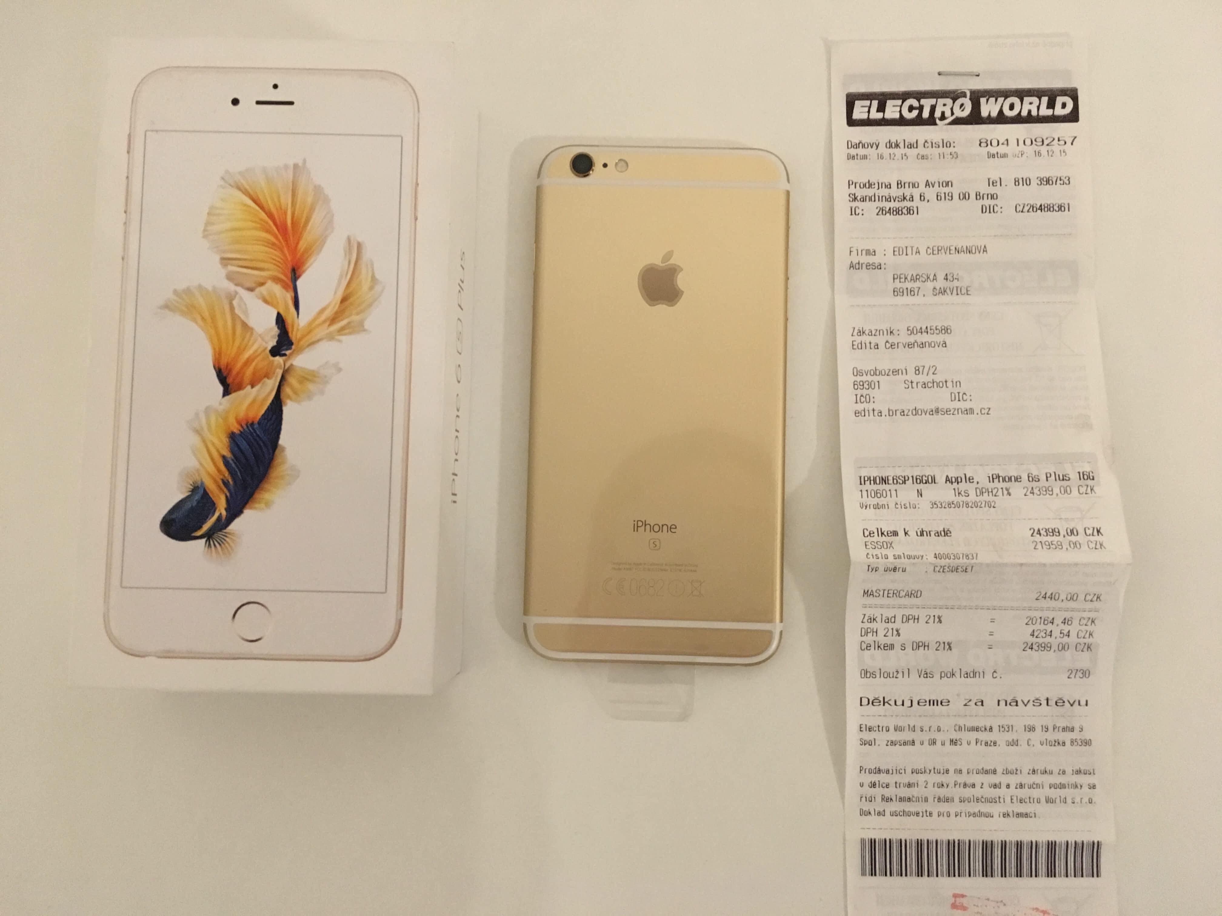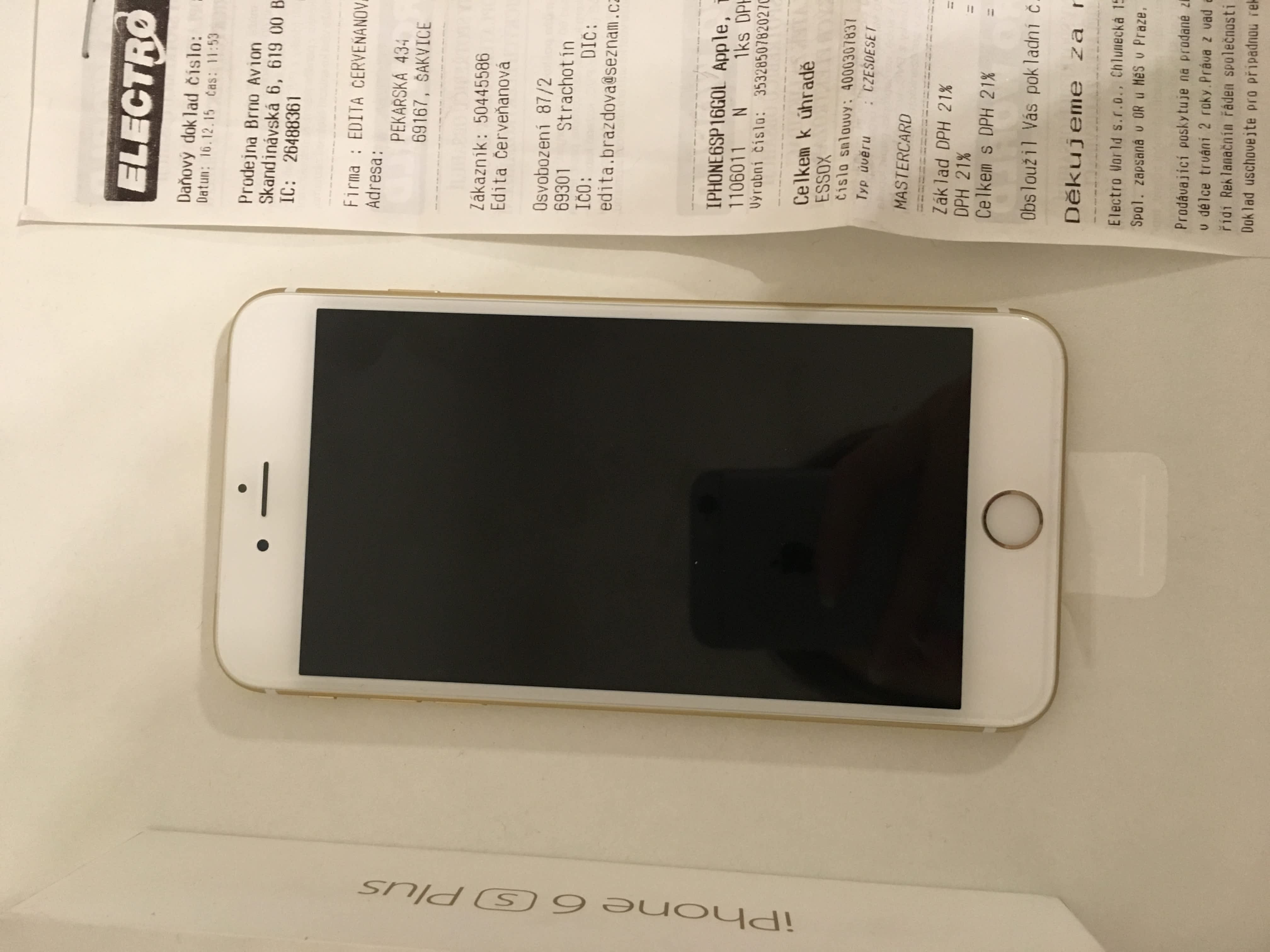 Dobrý den, prodam úplně nový iPhone 6s Plus gold 16gb česká distribuce, telefon je ještě rok v zaruce, kupovany v electroworldu, telefon přišel ze záruční opravy výměna kus za kus, telefon je zabaleny v ochraně fólii, nový kus, Brno a okolí možnost osobní předání..