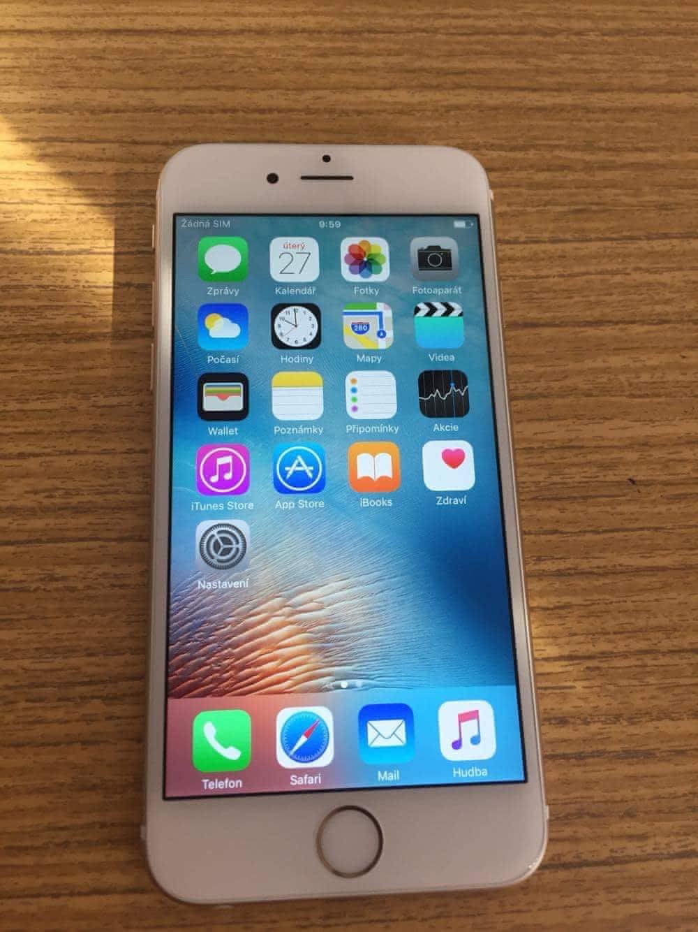 iPhone 6S zlaté barvy o velikosti paměti 16GB. K telefonu přidám samozřejmě záruční list, krabičku, nabíječku, obal, manuály, samolepky, jehlu. Telefon je 24 měsíců (bez 7 dnů) v záruce. Přidám k němu i obal, se kterým byl asi ty 3 dny používán. Osobní předání v Praze či Karlových Varech.