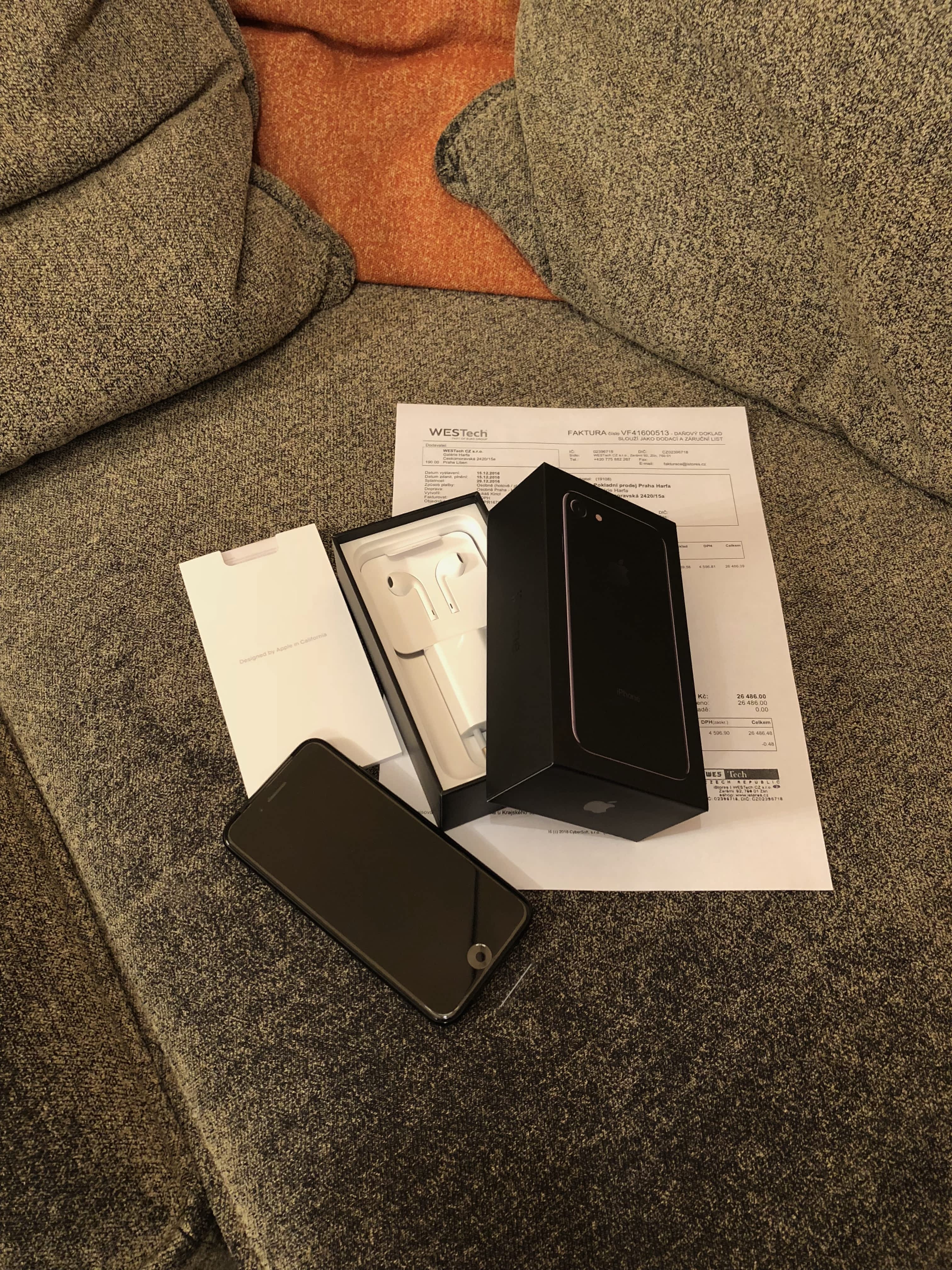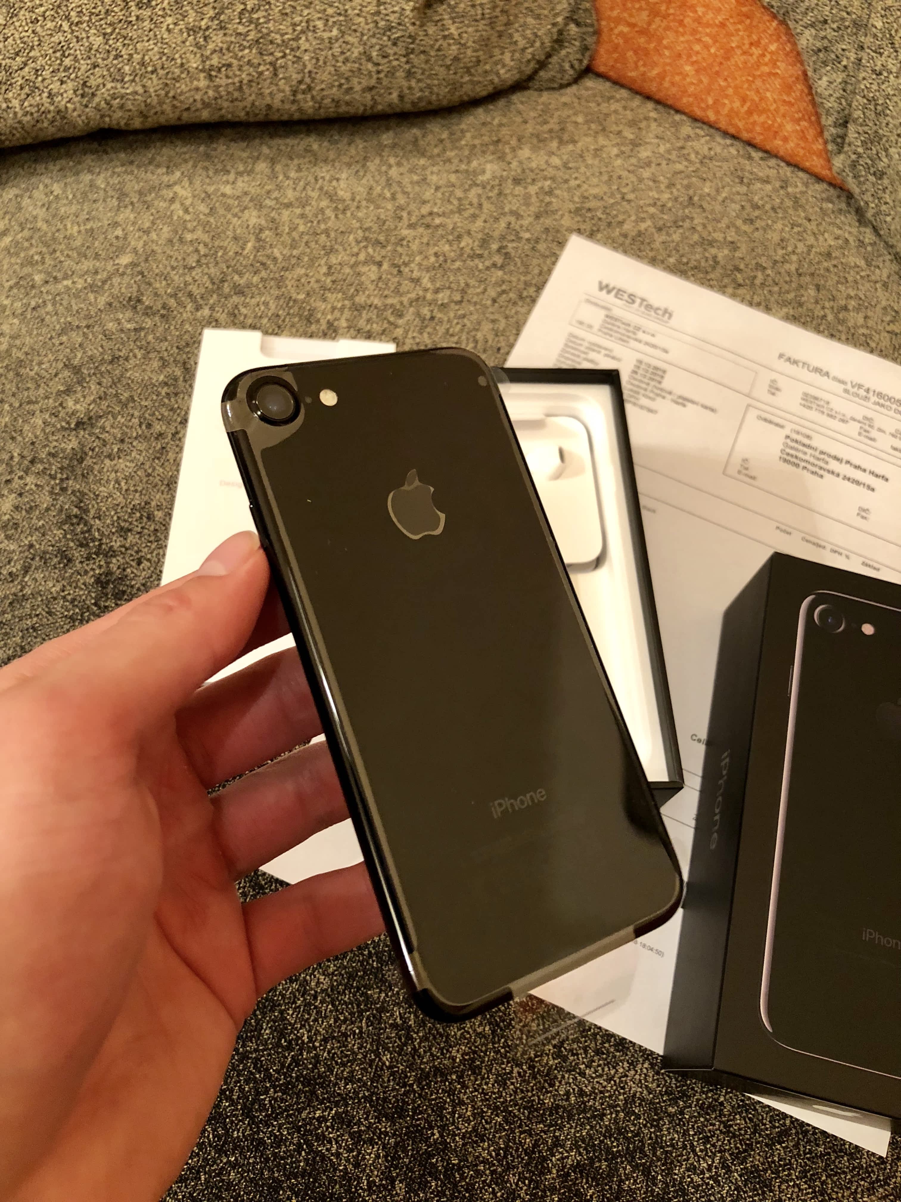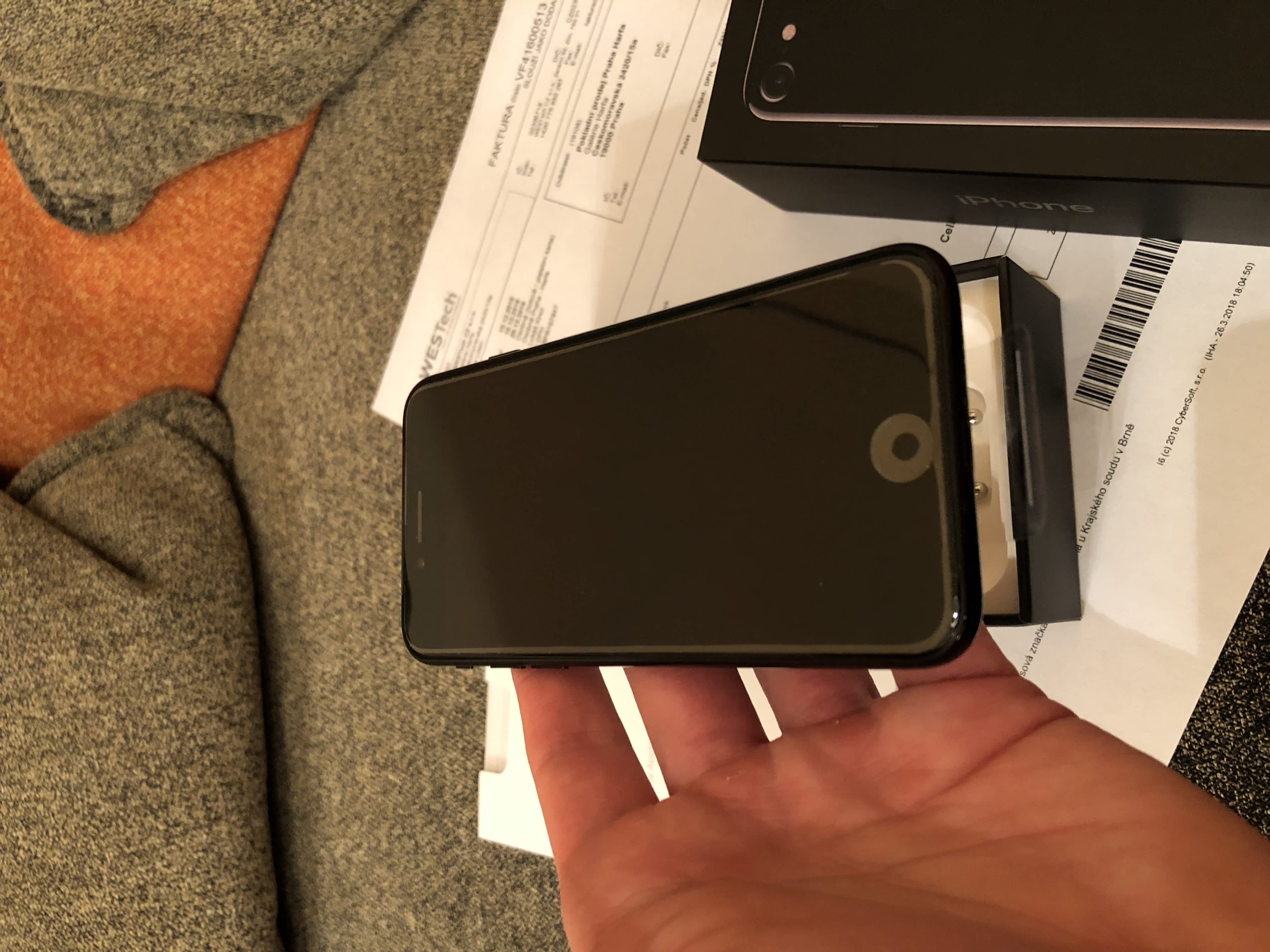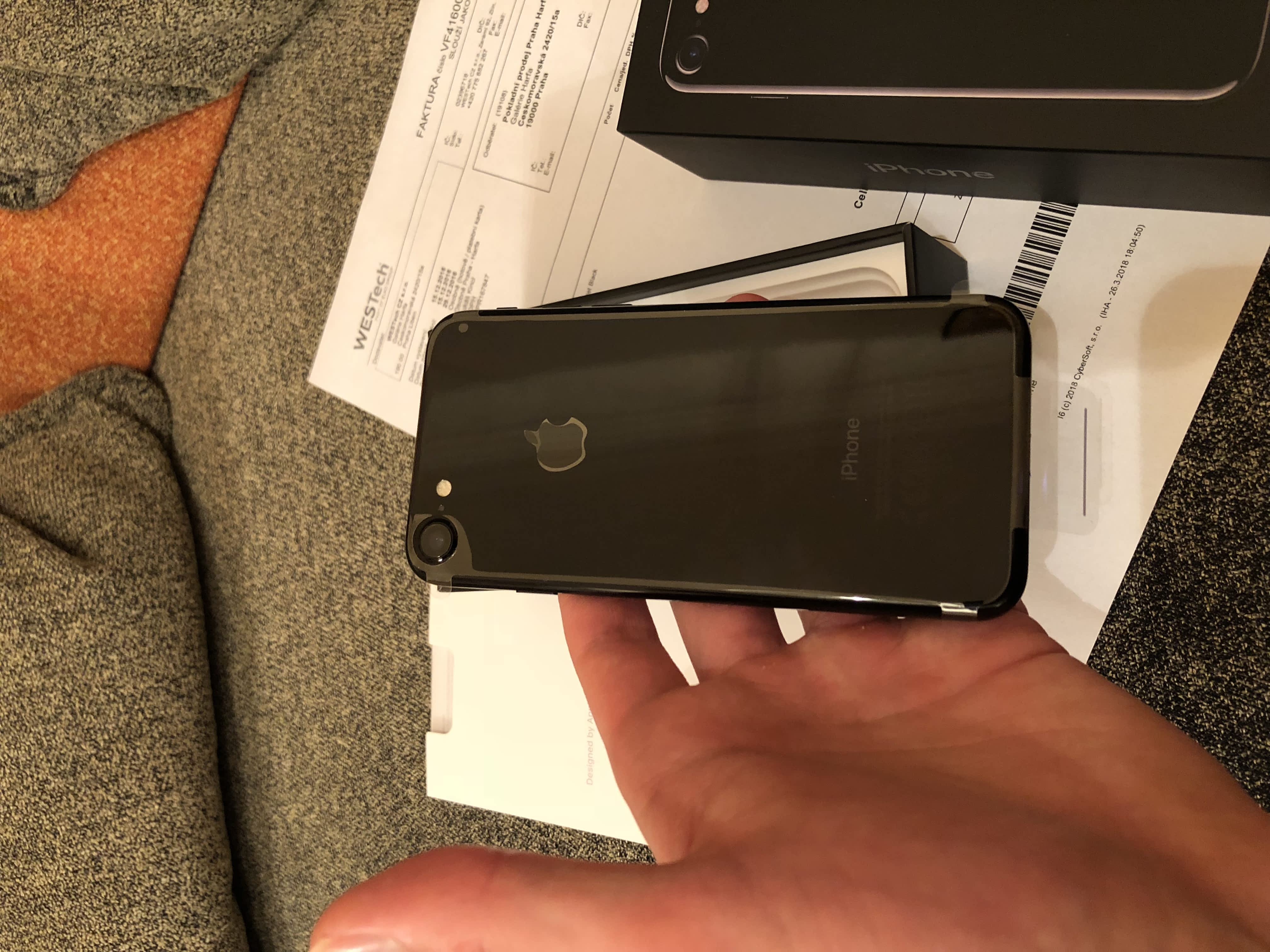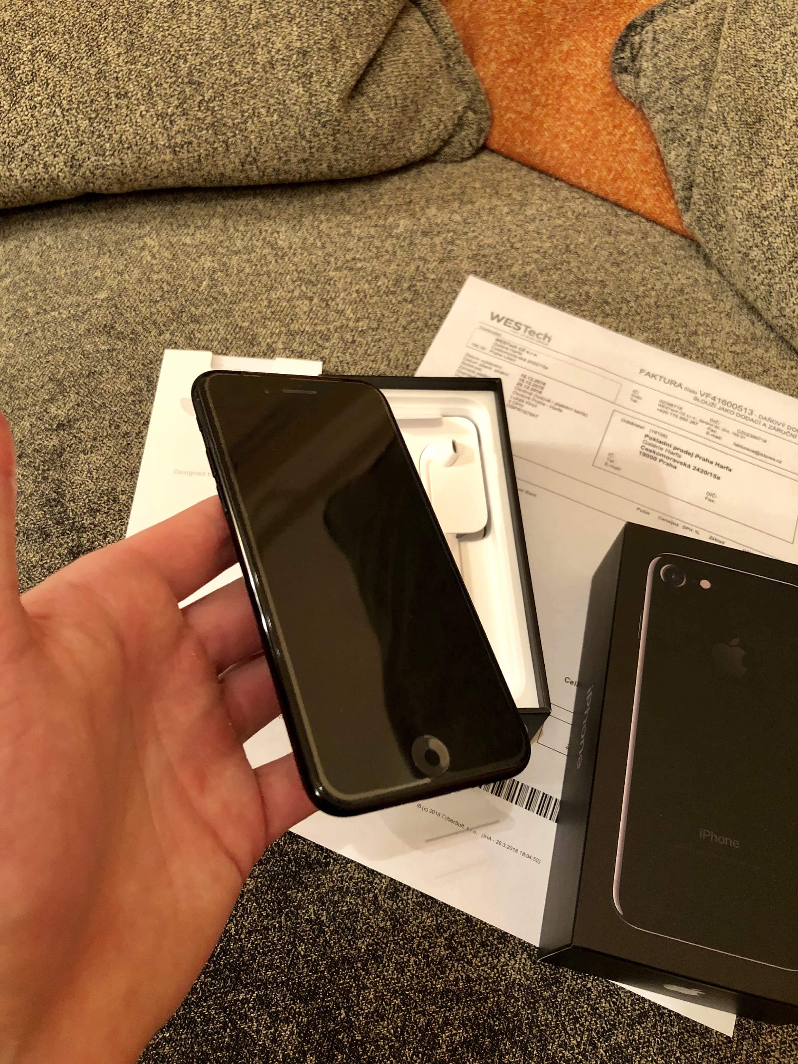 Prodám iPhone 7 s kapacitou paměti 256 GB, je v barvě Jet Black (lesklá černá).