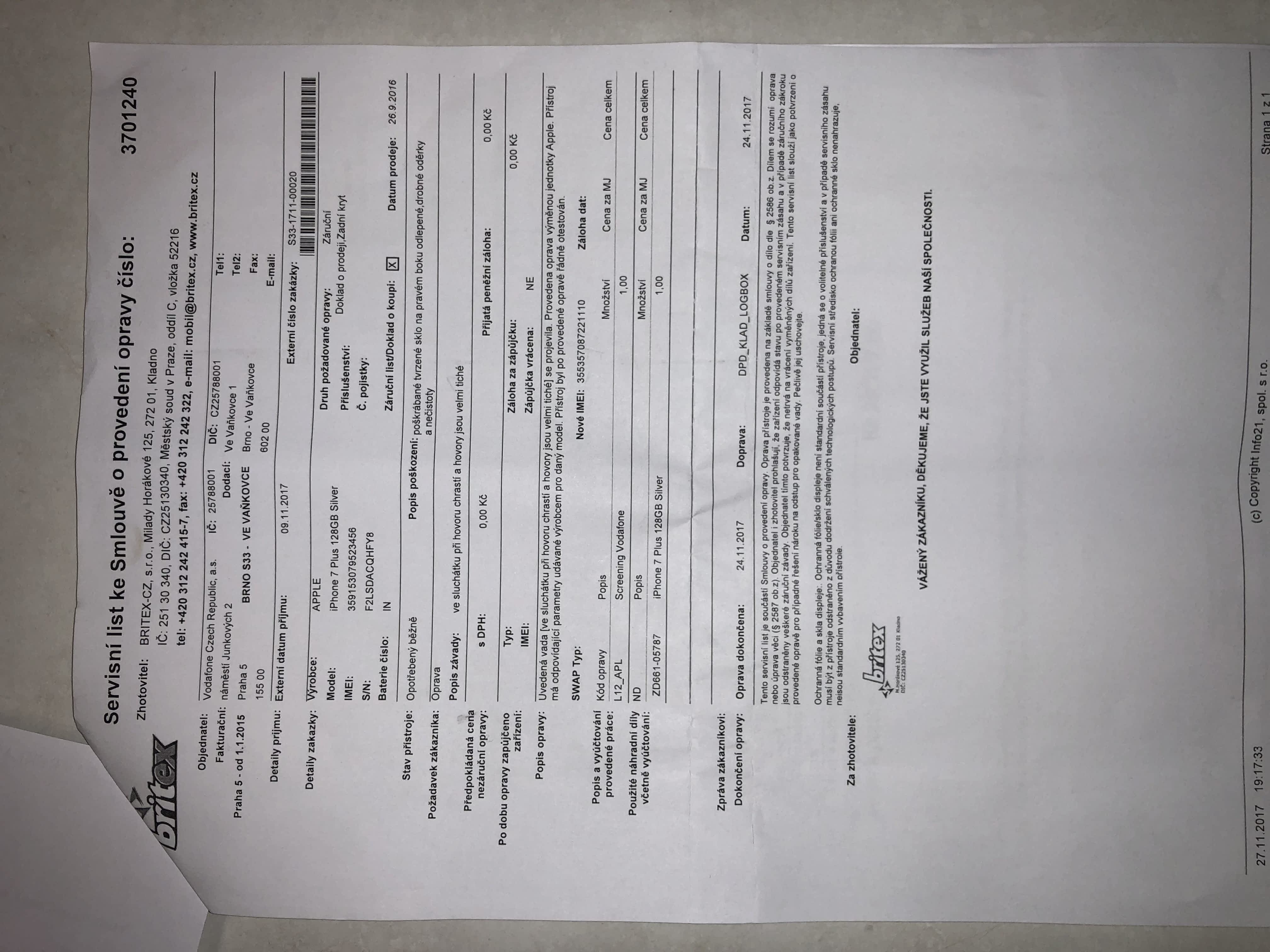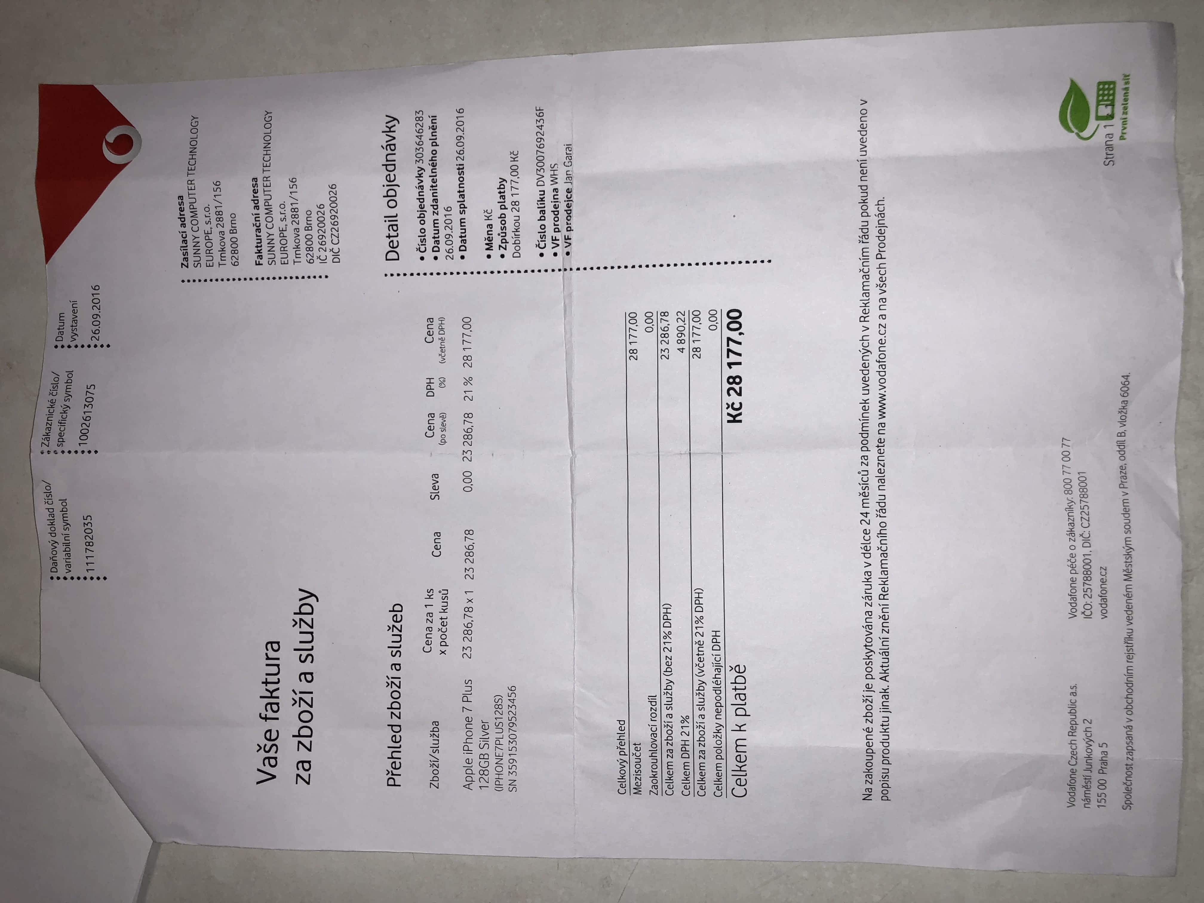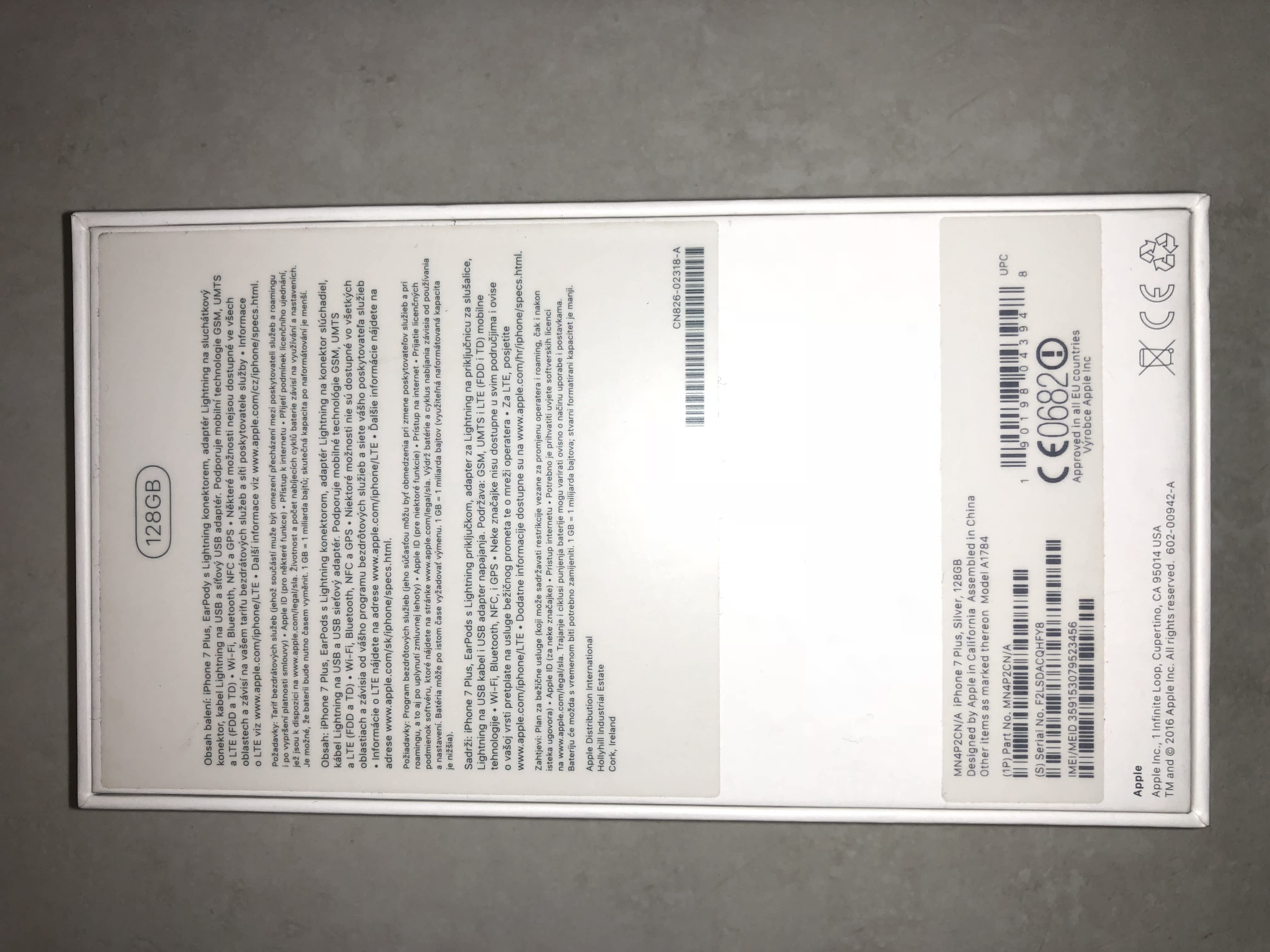 Prodám nepoužitý (vyměněn za nový kus) iPhone 7 Plus 128 GB. Telefon je v originální folii, viz. foto. Záruka na telefon je do 9.10.2018. Telefon není blokovaný a nenese logo žádného operátora. K telefonu je kompletní nepoužité příslušenství.