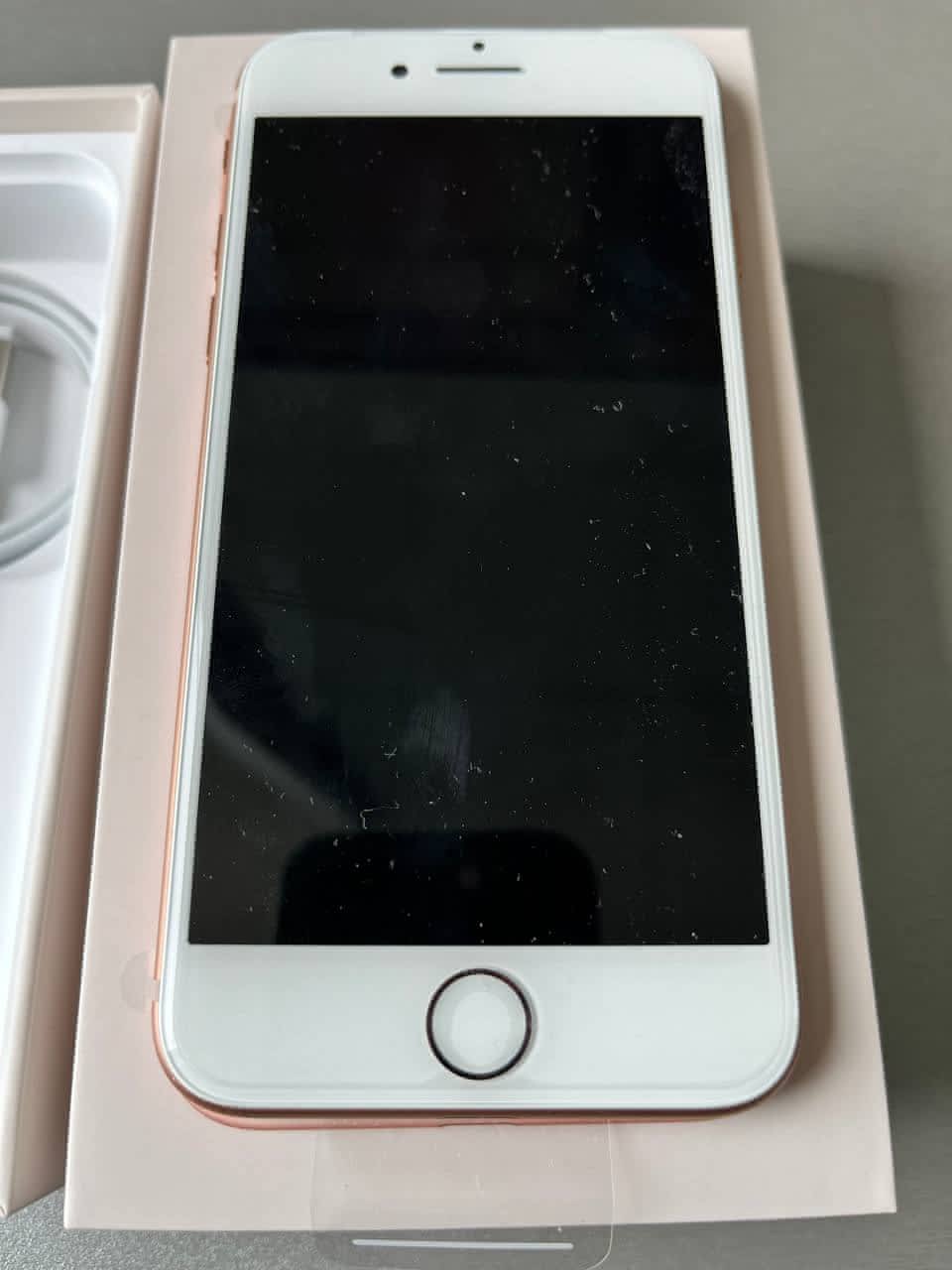 Telefon stale ve folii. Soucasti je krabicka od puvodniho iPhone 8 vcetne originalne zabalenych sluchatek, kabelu i adaptéru. Viz. foto.