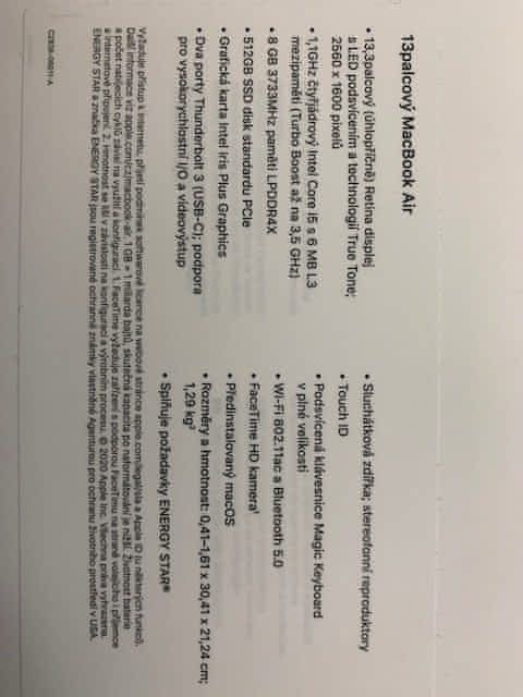 Nabízím nový MacBook Air 2020 ve vesmírně šedé barvě. Koupen 05/2020 záruka do 05/2022.