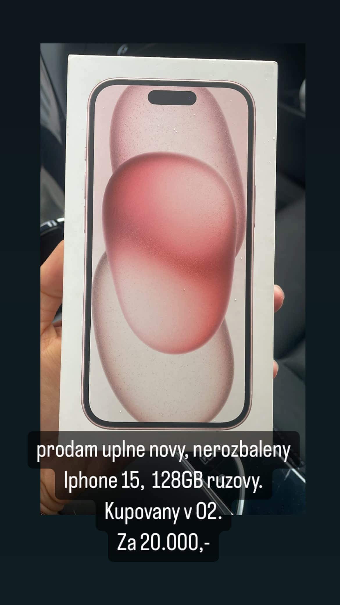 Prodám nový, nerozbalený Iphone 15. Růžový, 128 Gb. Nevhodný dárek. Fakturu přiložím. Kupovaný v listopadu 2023 v O2.