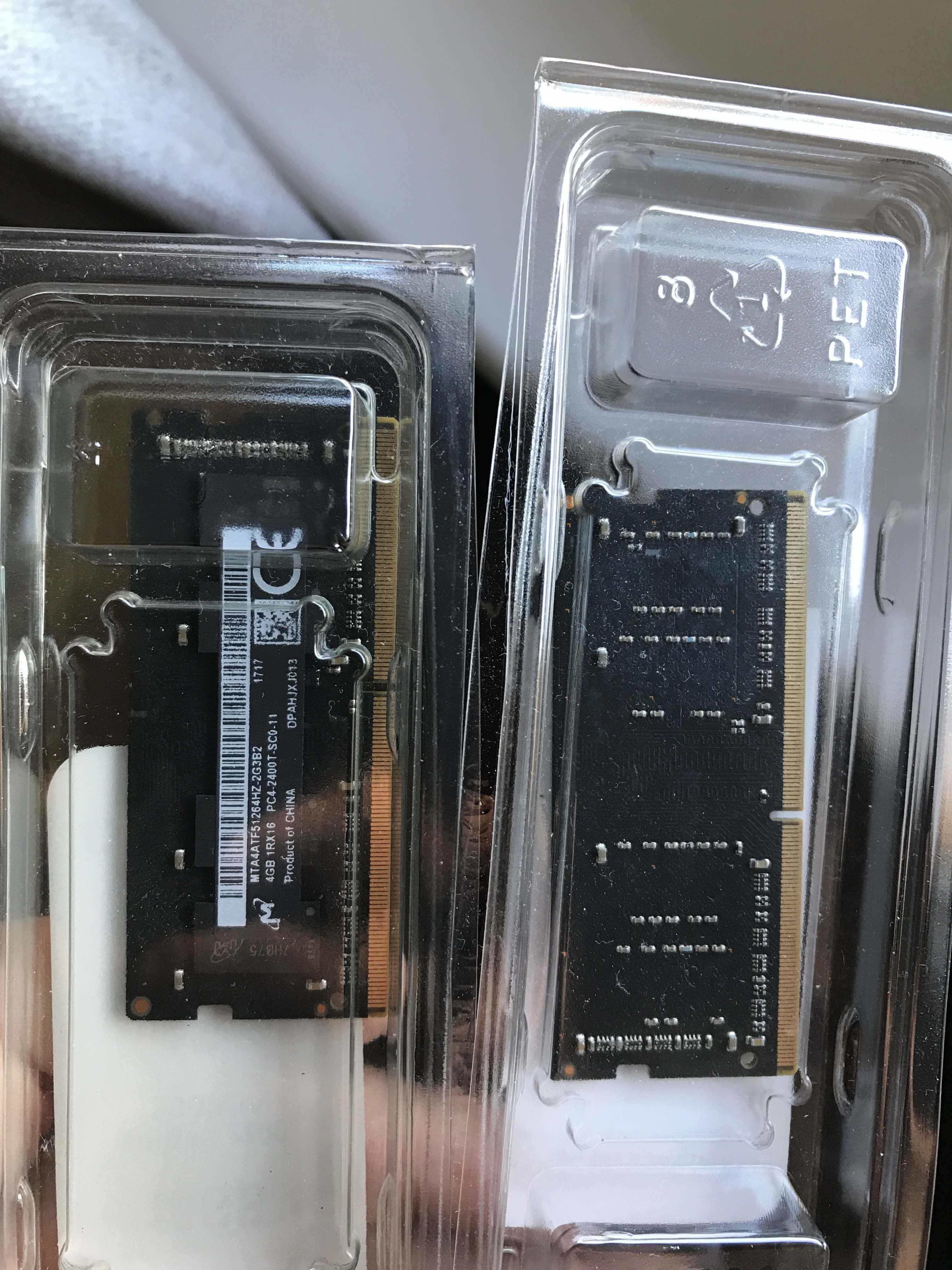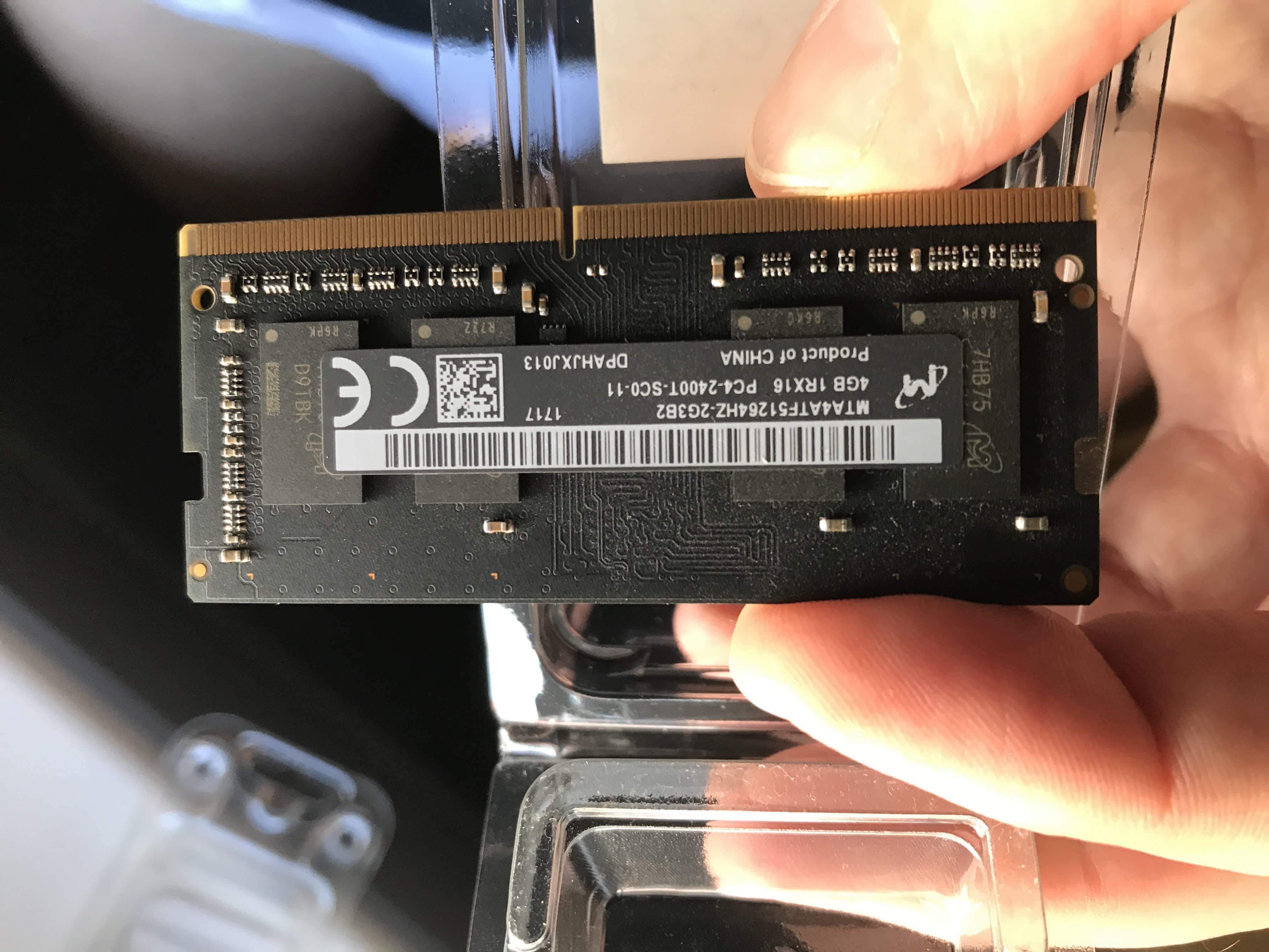 Prodám 8 GB RAM kit (2x 4 GB) originál operační paměťové moduly DD4-2400 SODIMM z Apple iMac late 2017 (Retina 5K i7 4.2), vhodné pro rozšíření operační paměti 27" iMacu z původních 8 na 16 GB. Použitelné i v PC: CL=17, 1.2 V, single ranked, x8, unbuffered, NON-ECC, bez olova a halogenu. Originál cena Apple 6400 Kč, cena adekvátních upgradů 2000 Kč, nabízím za 1000 Kč + poštovné nebo osobní převzetí. Paměti byly používané pouze rok, do 12/2019 v záruce. Důvod prodeje: upgrade.