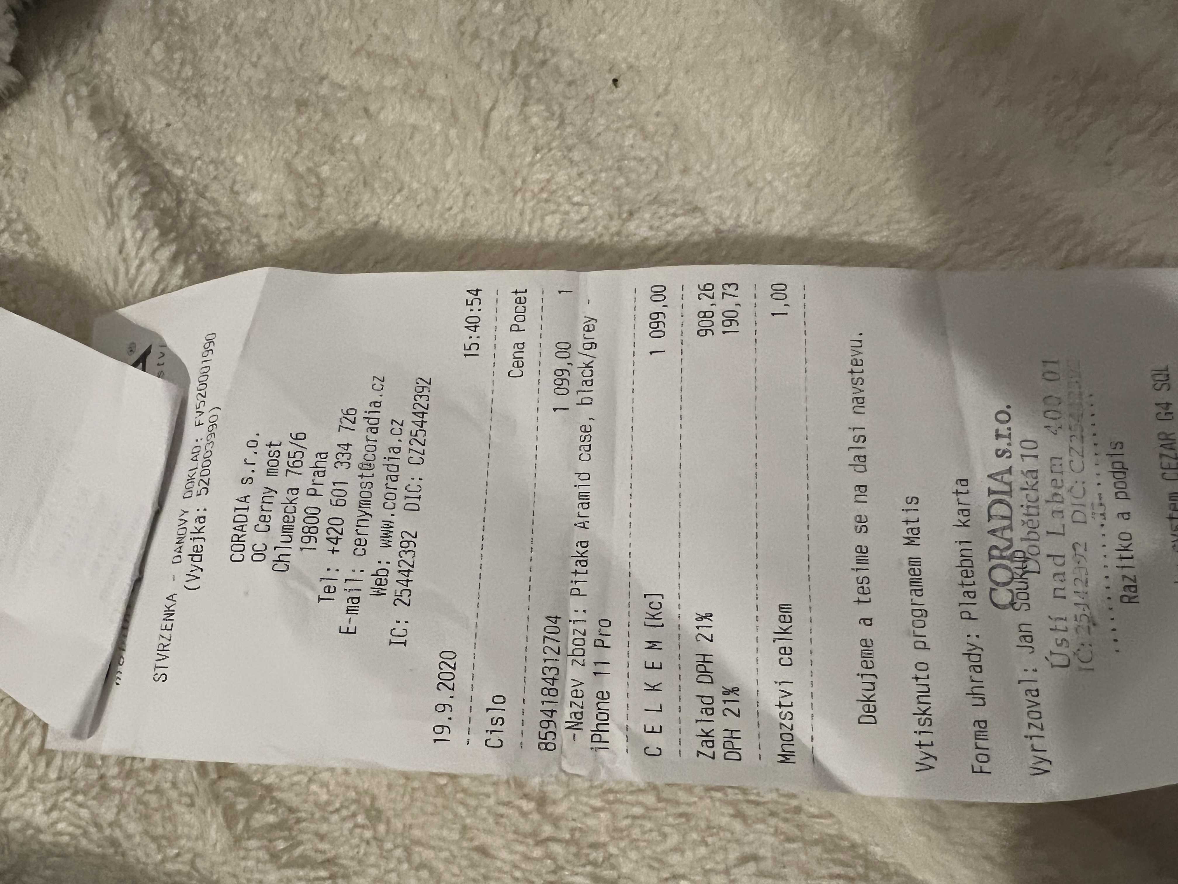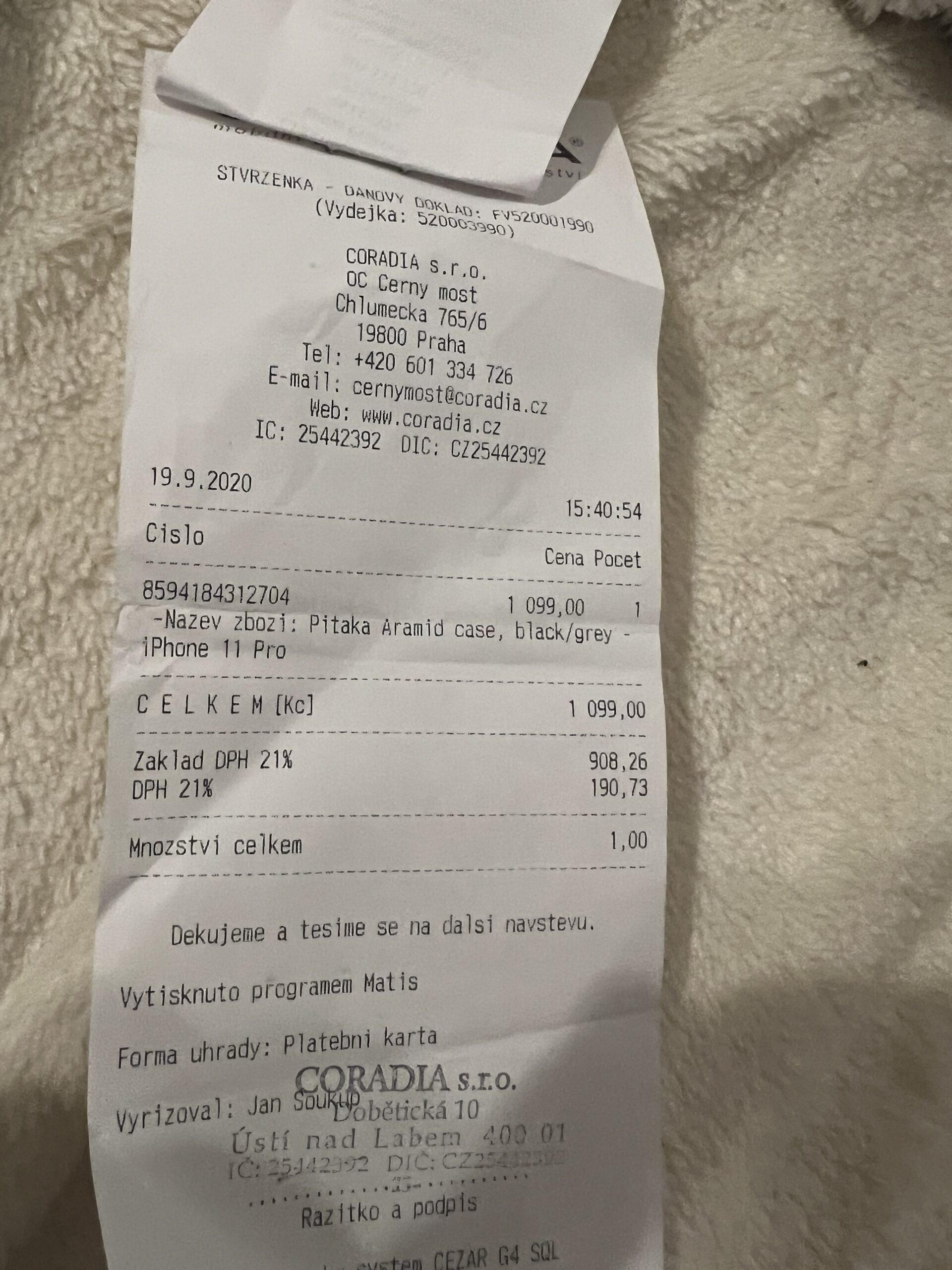 Prodám orig. kryt Pitaka na IPhone 11 pro. Málo používaný asi 6-7 měs. Mám k němu i účtenku – nový stál 1100,-Kč.