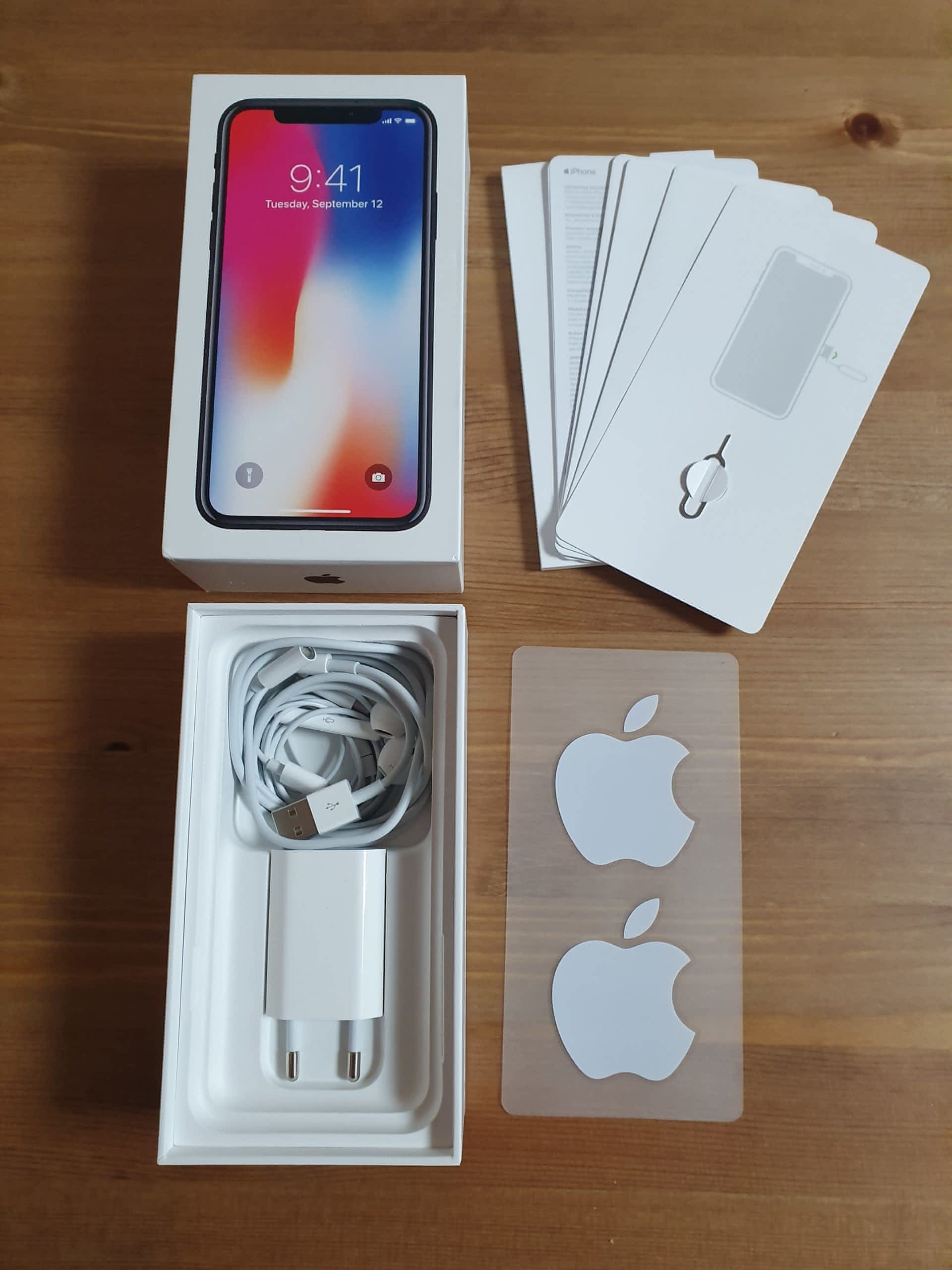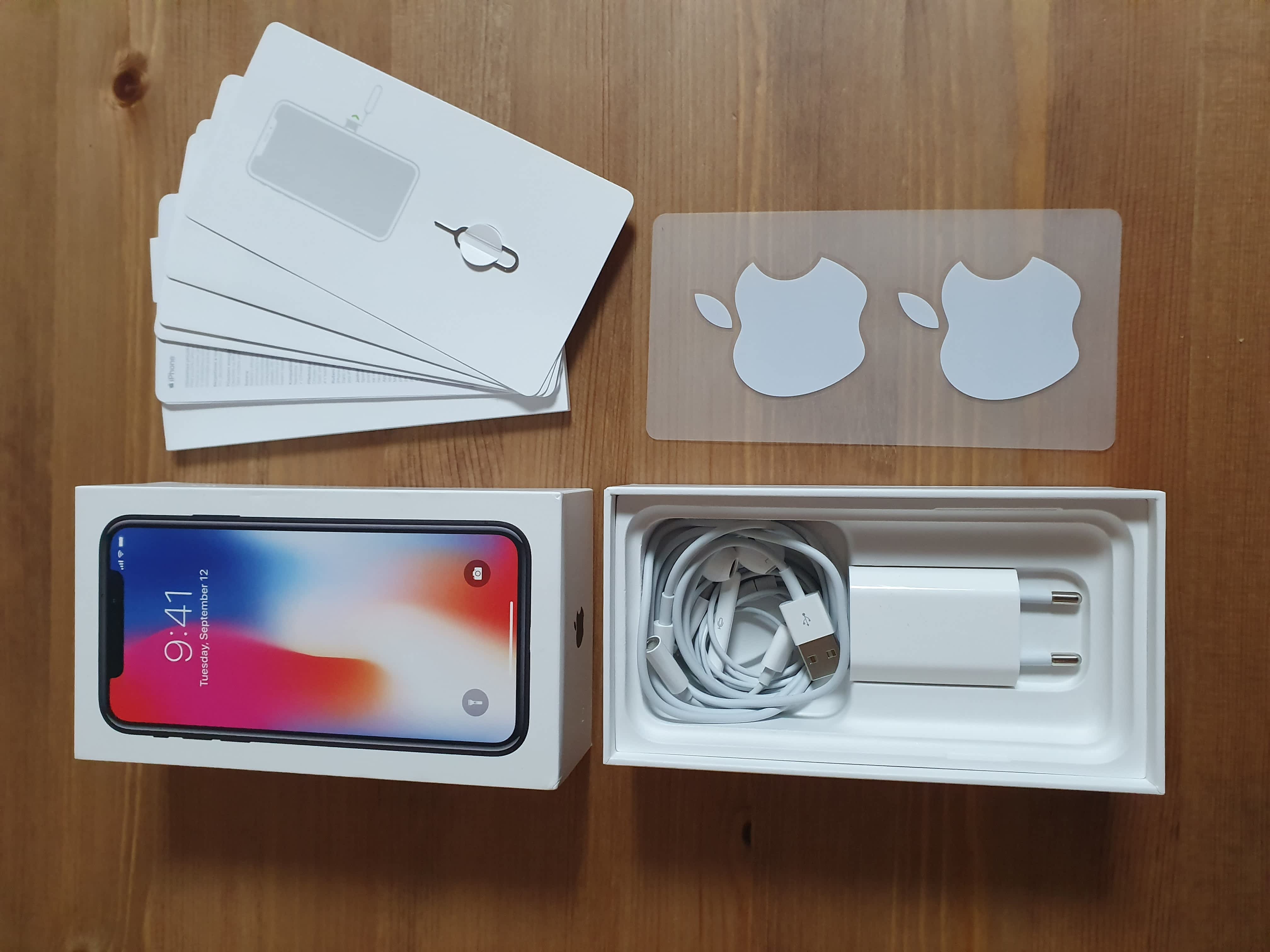 Prodám originál krabičku od iPhone X, včetně kompletního příslušenství. Nabíječka, kabel, redukce na sluchátka, sluchátka, vypichovátko, samolepky a dokumentace. Nabíječka použitá.