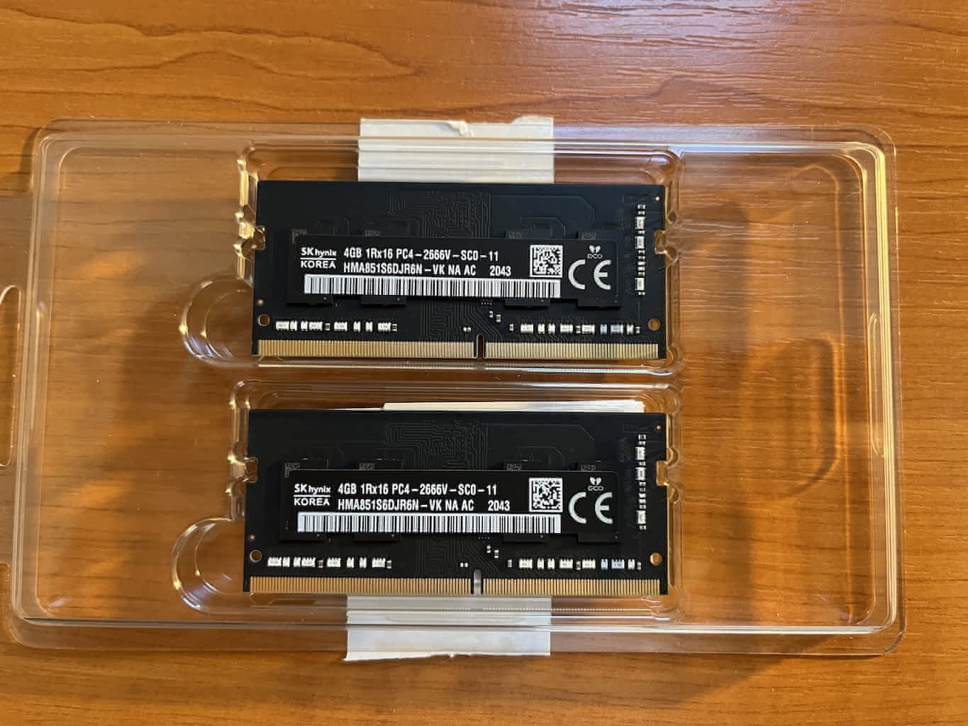 Dva moduly SO-DIMM 260-PIN 4GB PC4-21300 DDR4 2666Mhz.