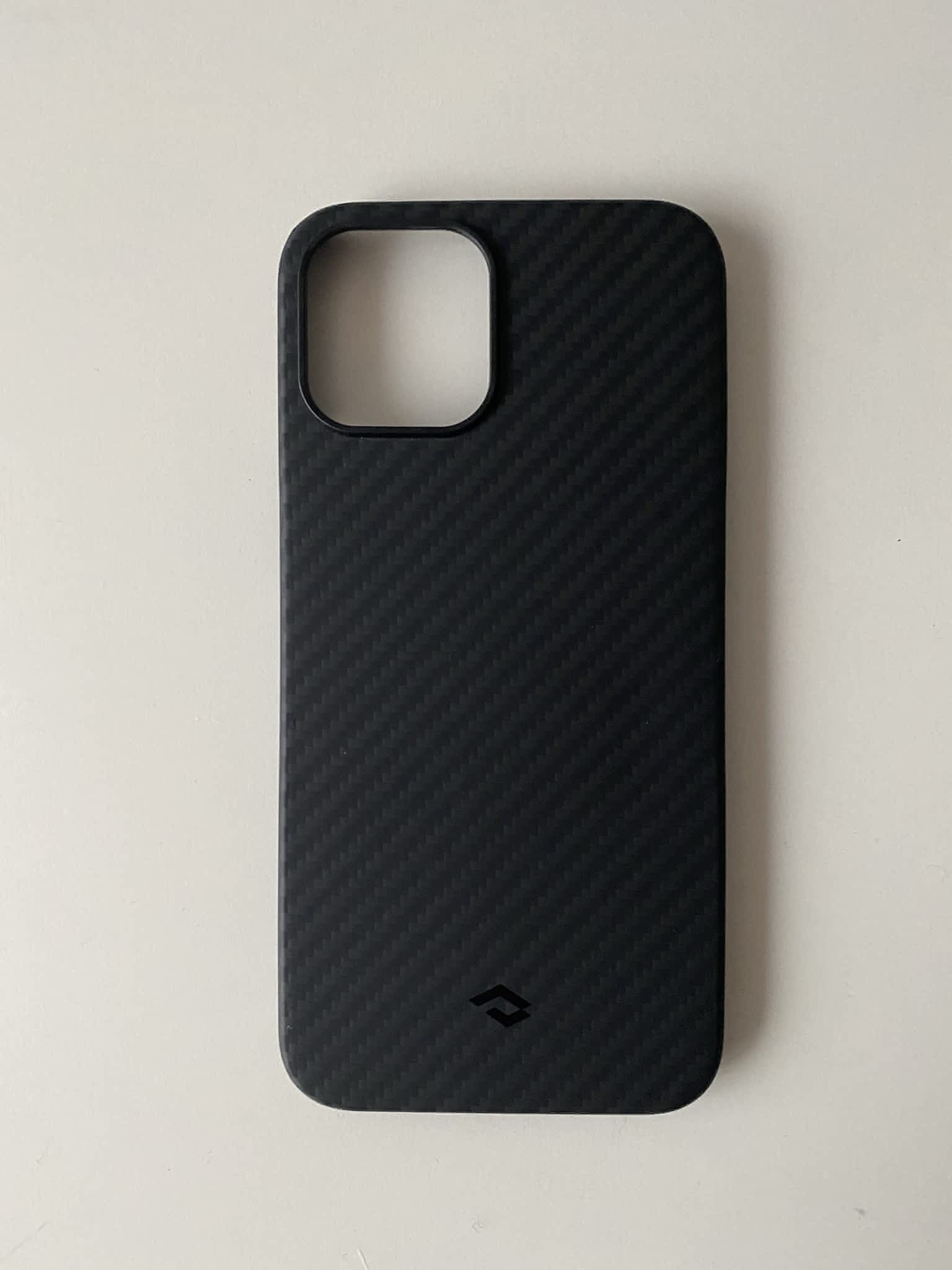 Kryt na mobil Apple iPhone 12 Pro Max, karbon, pevný, výřezy pro konektory a tlačítka, kompatibilní s bezdrátovým dobíjením. Nepoužitý