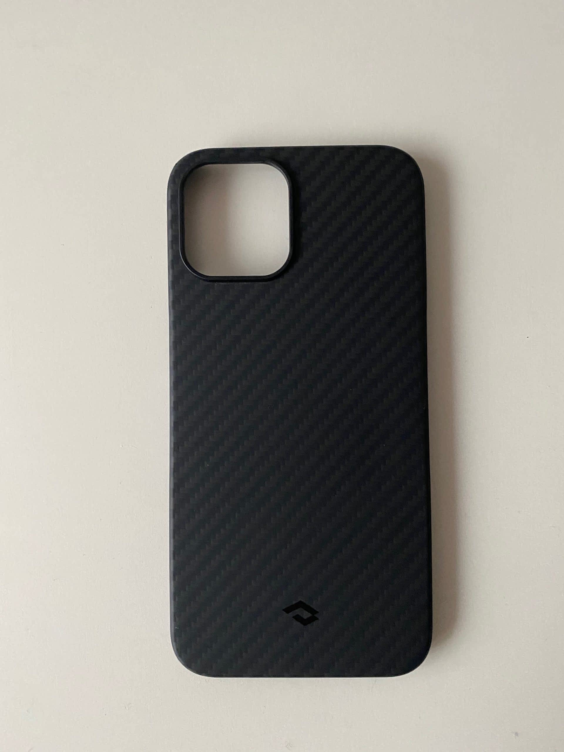 Kryt na mobil Apple iPhone 12 Pro Max, karbon, pevný, výřezy pro konektory a tlačítka, kompatibilní s bezdrátovým dobíjením. Nepoužitý