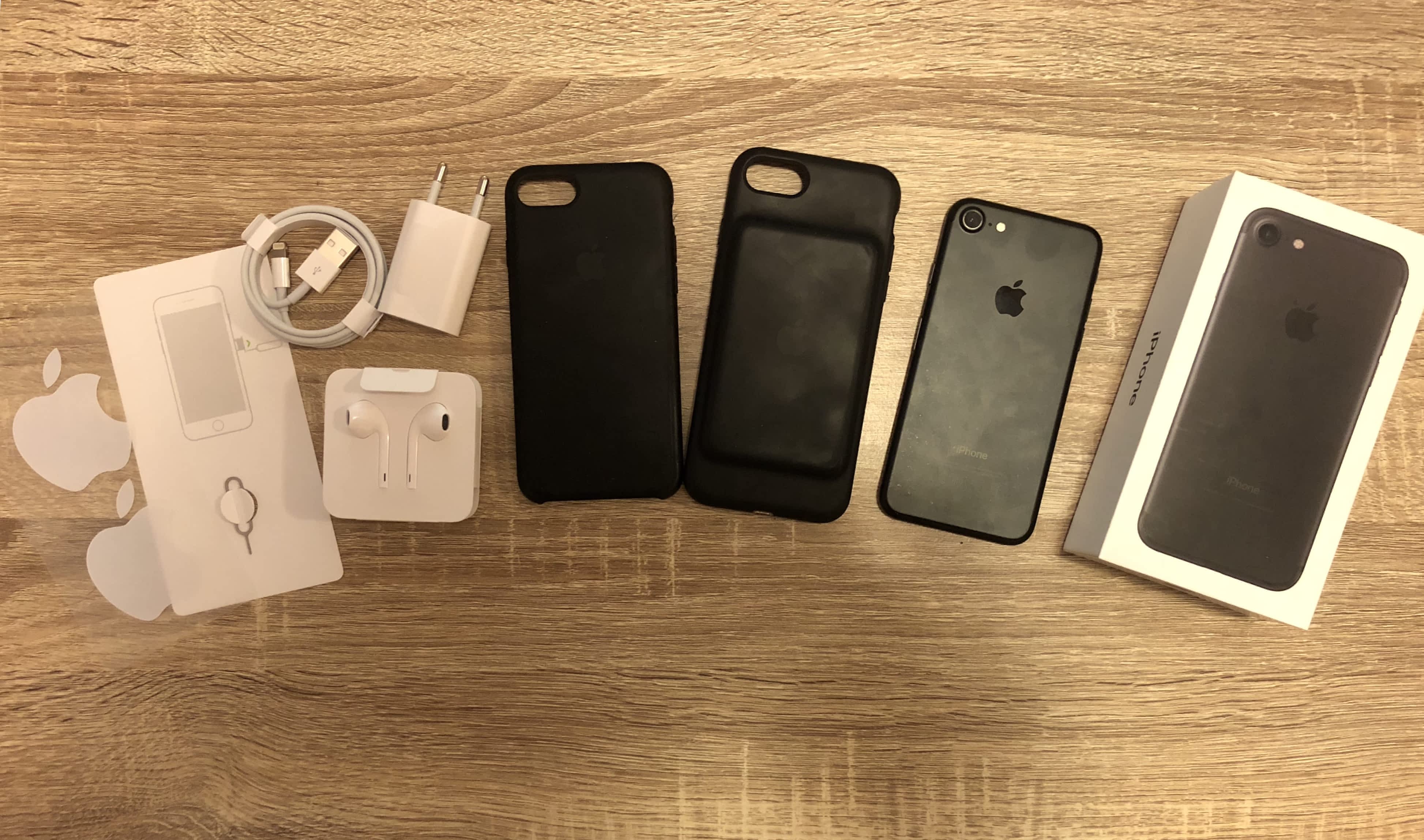 Príslušentvo : Nerozbalené EarPods, Nepoužitý kábel a USB adaptér, manuál, Apple nálepky, original Apple zadný kryt v hodnote 49 EUR, originál Apple Smart Case (nabíjací kryt) v hodnote 109 EUR (kryty majú známky používania)