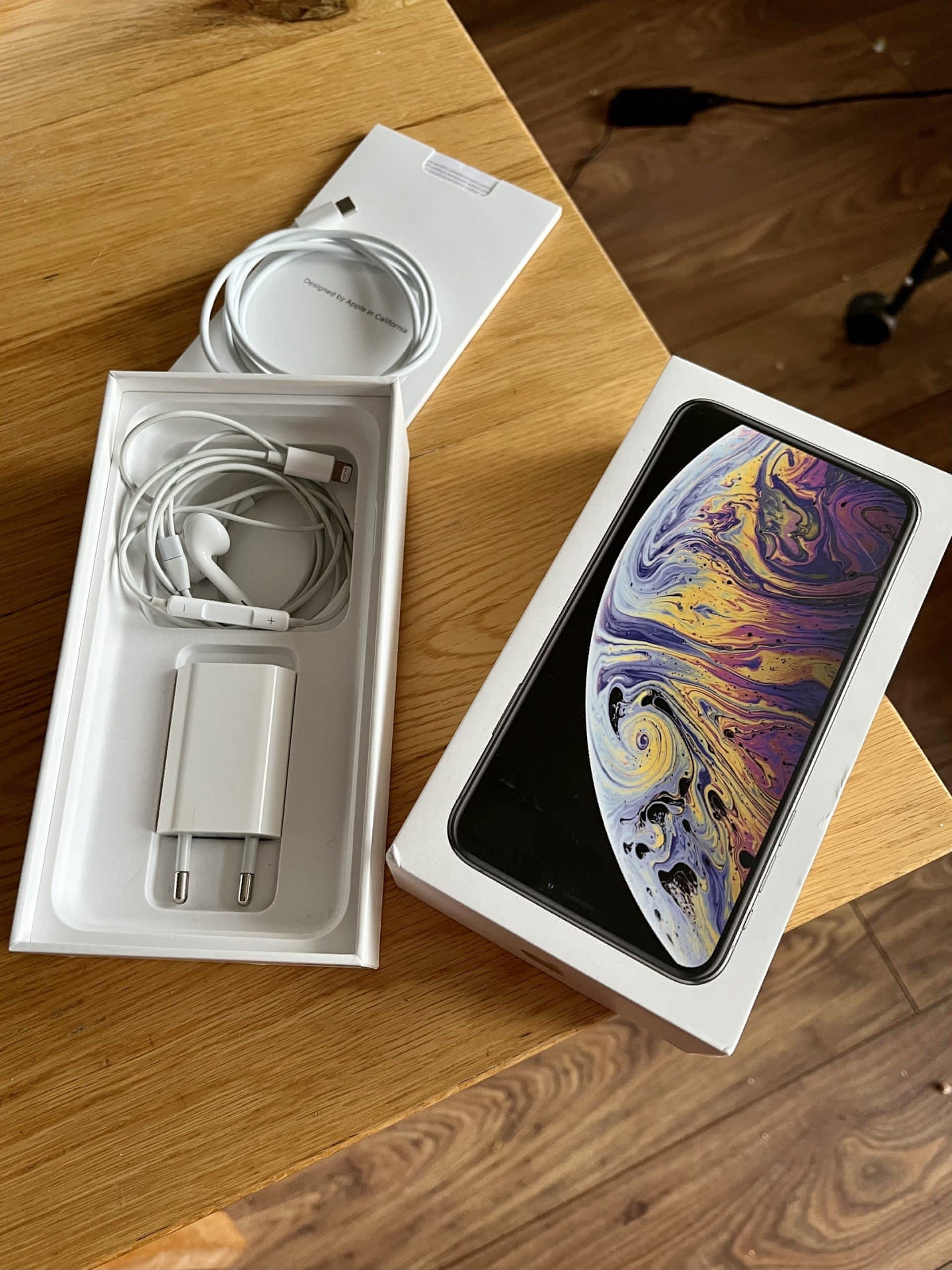 Predám telefón iPhone XS model MAX s kapacitou 64 GB. Telefón je v perfektnom stave. Od začiatku bol používaný s nalepeným sklom na display a v ochrannom obale. Predná, bočné aj zadná strana je bez známok používania. Model XS ponúka dve šošovky – štandardnú a teleobjektív (2x).