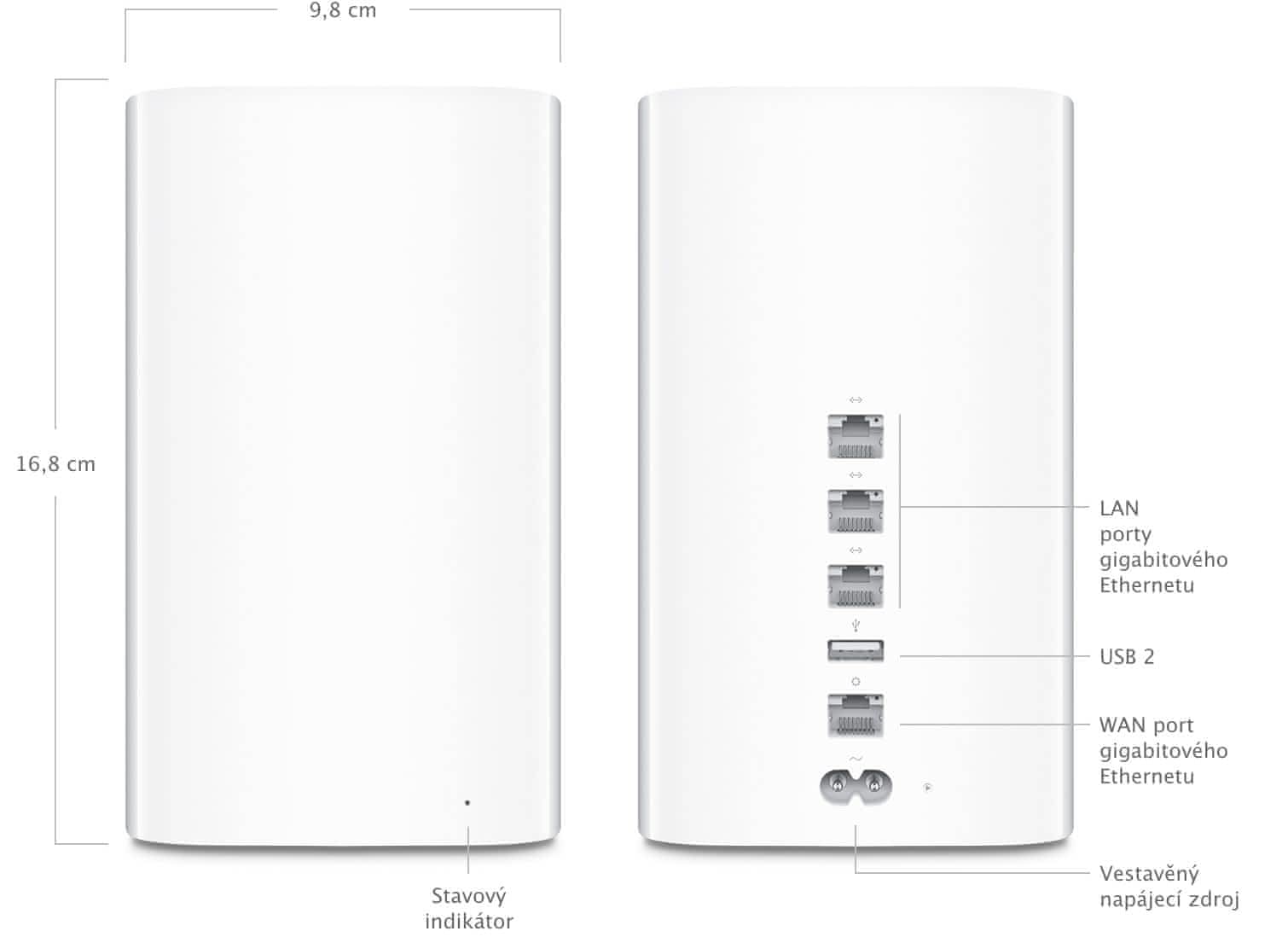 Inteligentní, snadno ovladatelná základna AirPort Extreme s podporou simultánního provozu ve dvou pásmech je dokonalý bezdrátový přístupový bod pro domácnost, školu nebo kancelář. Wi-Fi technologií další generace 802.11ac zprostředkovává vysoce výkonný bezdrátový přístup pro Macy, PC a zařízení s Wi-Fi jako iPhone, iPad, iPod touch nebo Apple TV.