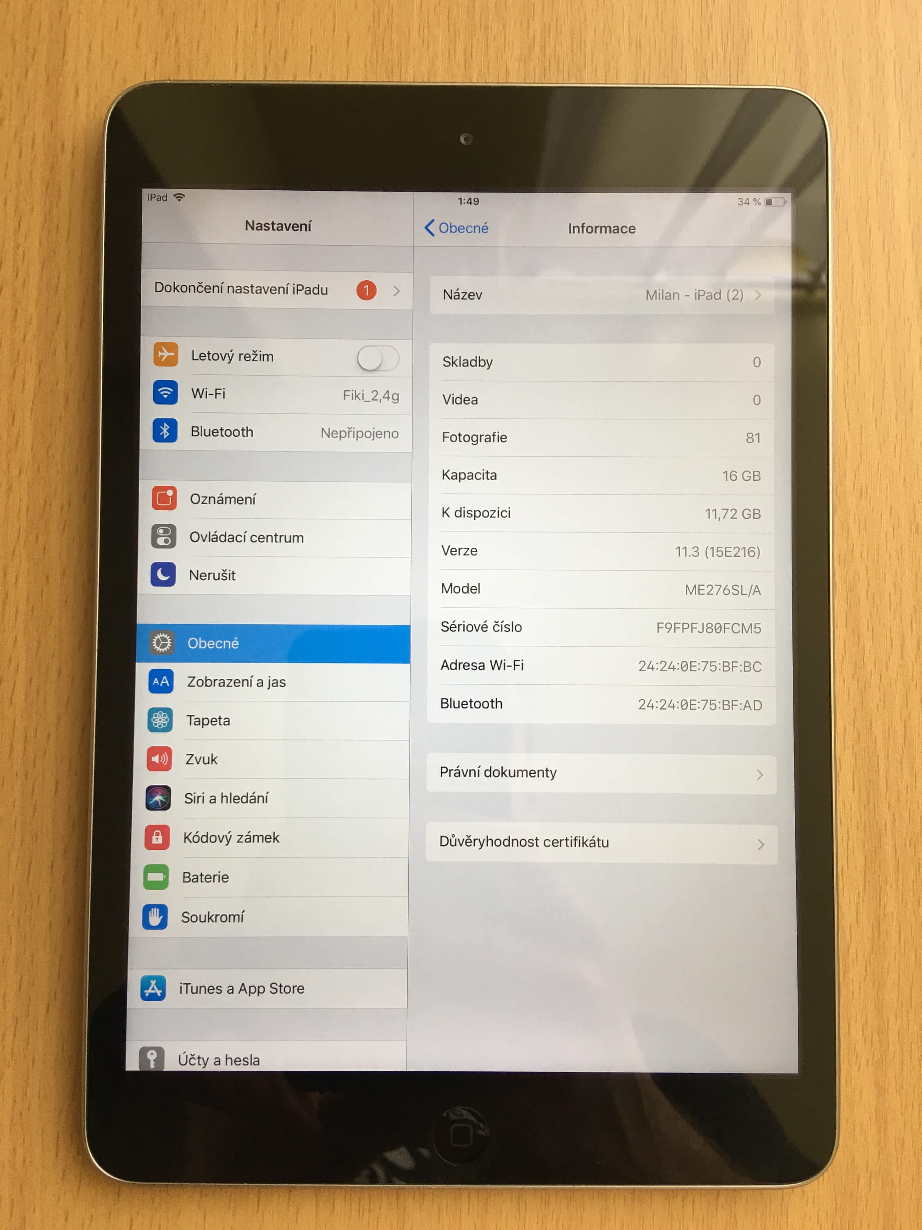 Prodám Apple Ipad Mini 2 16gb Wifi v provedení black / grey