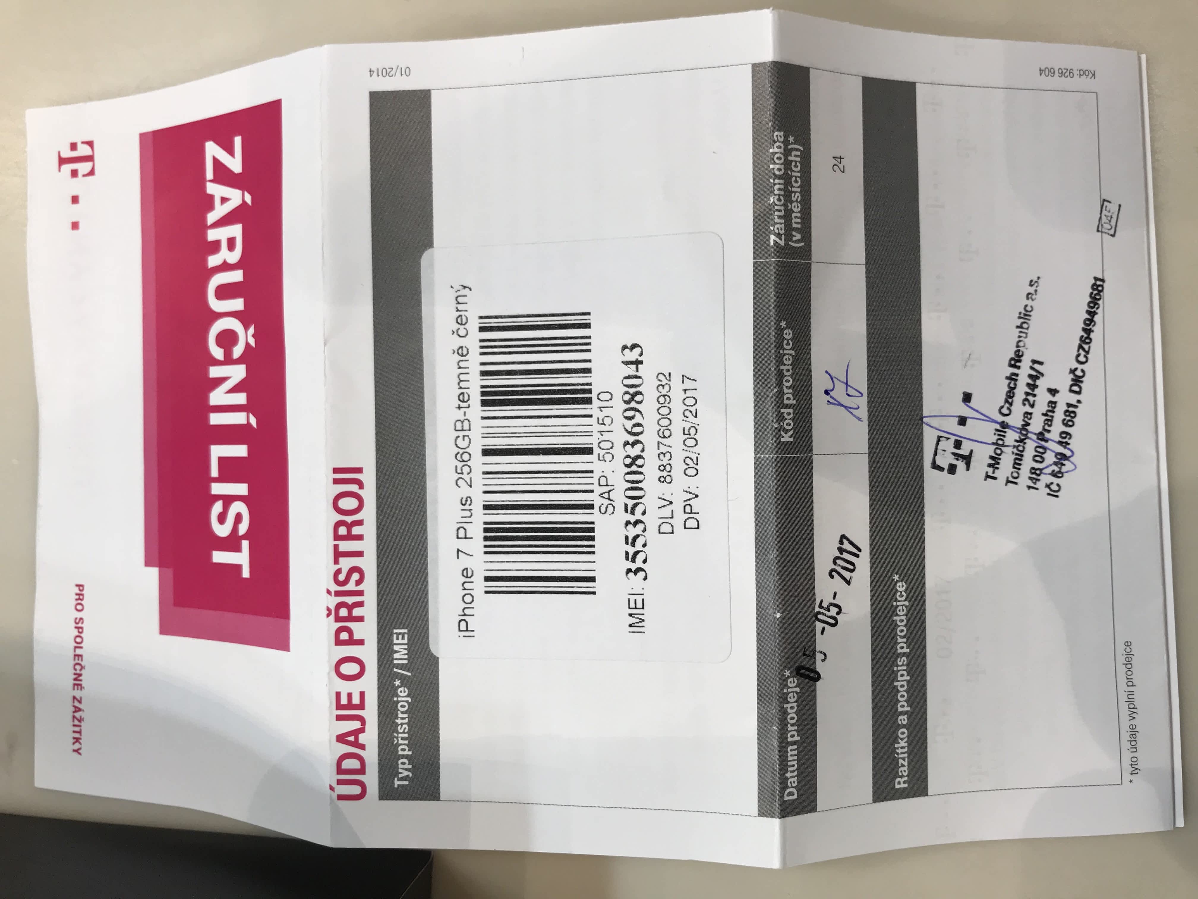 Prodám plně funkční Iphone 7 plus 256GB Jet Black, komplet příslušenství, originální krabice, včetně dokladu o koupi. Zakoupen v t-mobile 5.5.2017, tedy stále trvá apple záruka do 5.5.2018 a dvouletá záruka končí 5.5.2019. Ve skvělé kondici, odhlášen z icloudu, osobně předvedu. Preferuji osobní převzetí pro možnost otestování, jde o seriózní obchod, prodávám protože je příliš veliký, koupil jsem si sedmu a spokojenost. Pro ověření že se nejedná o kradené zboží ověřte IMEI 355350083698043.