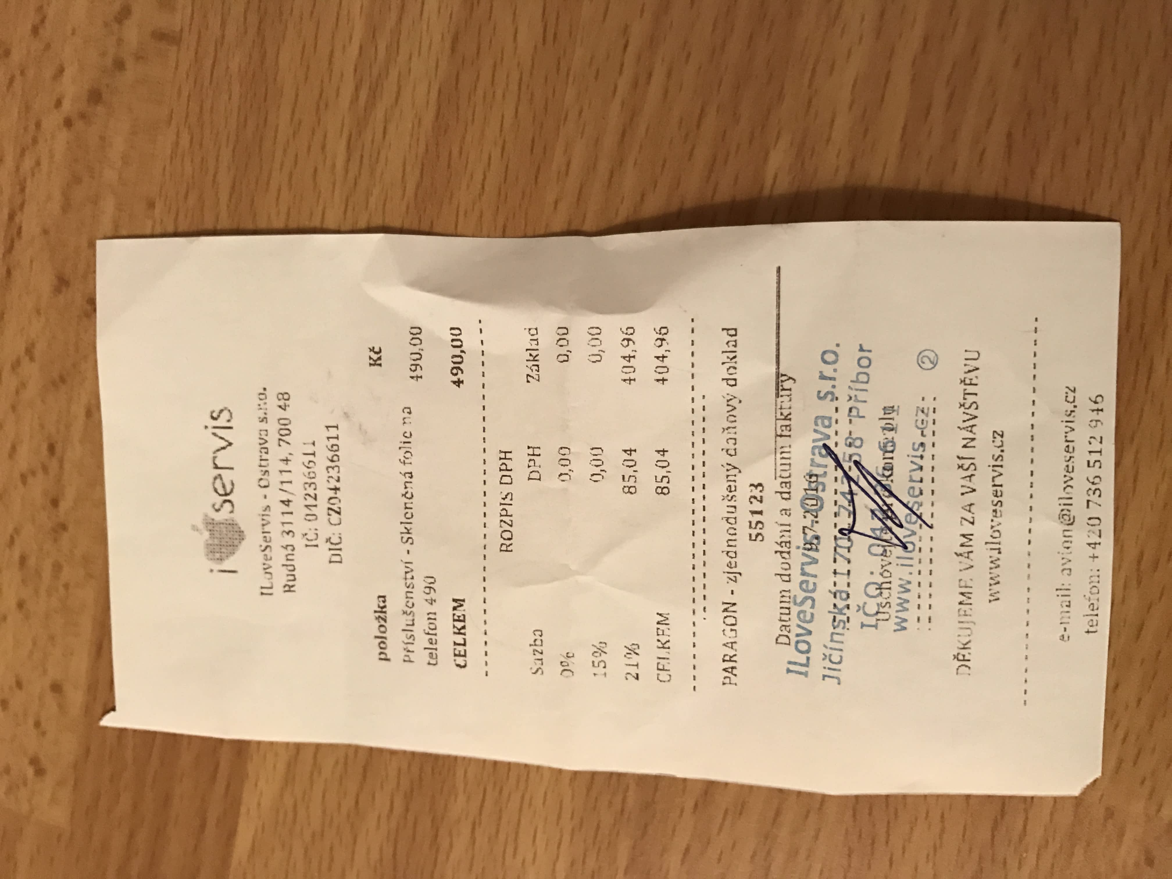 – nalepené ochranné sklo v hodnotě 490Kč (dodám účtenku)