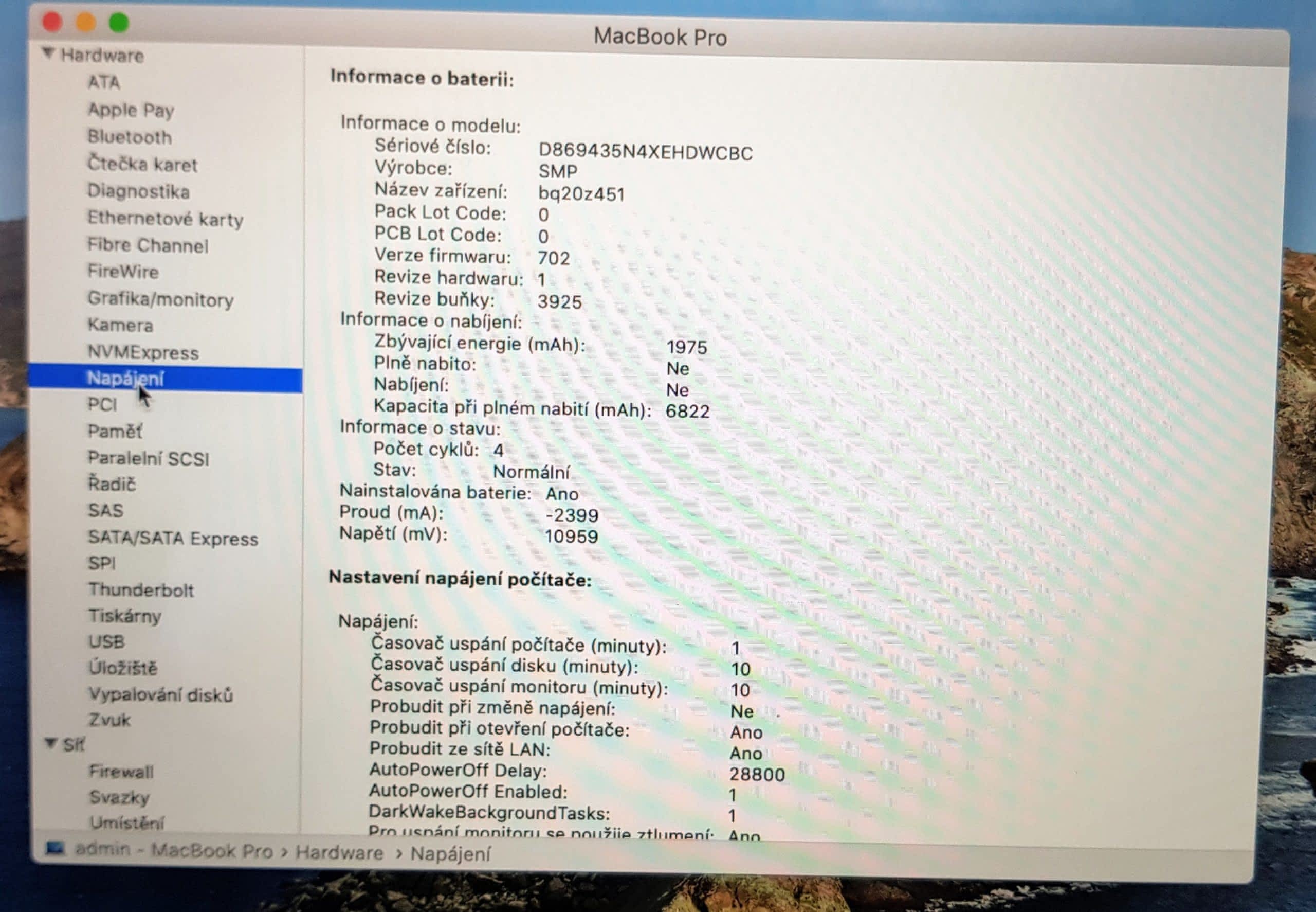 Prodám Apple MacBook Pro (15-inch, 2017), CPU Intel 4Cores i7-2,8GHz, 16GB paměť, Intel HD Graphics630 1536MB, displej 15,4" 2880×1800, disk 250GB SSD, Touch bar. Kompletní specifikaci najdete na: everymac.com/systems/apple/macbook_pro/specs/macbook-pro-core-i7-2.8-15-mid-2017-retina-display-touch-bar-specs.html. V rámci záruky byla začátkem roku vyměněna klávesnice a základní deska, takže baterie má pouze 4 cykly. MacBook má CZ klávesnici, která je v záruce do 7.9.2021. V případě zájmu volejte v době 18-21 hodin, mimo tuto dobu pošlete SMS nebo e-mail na adresu melicharj@volny.cz
