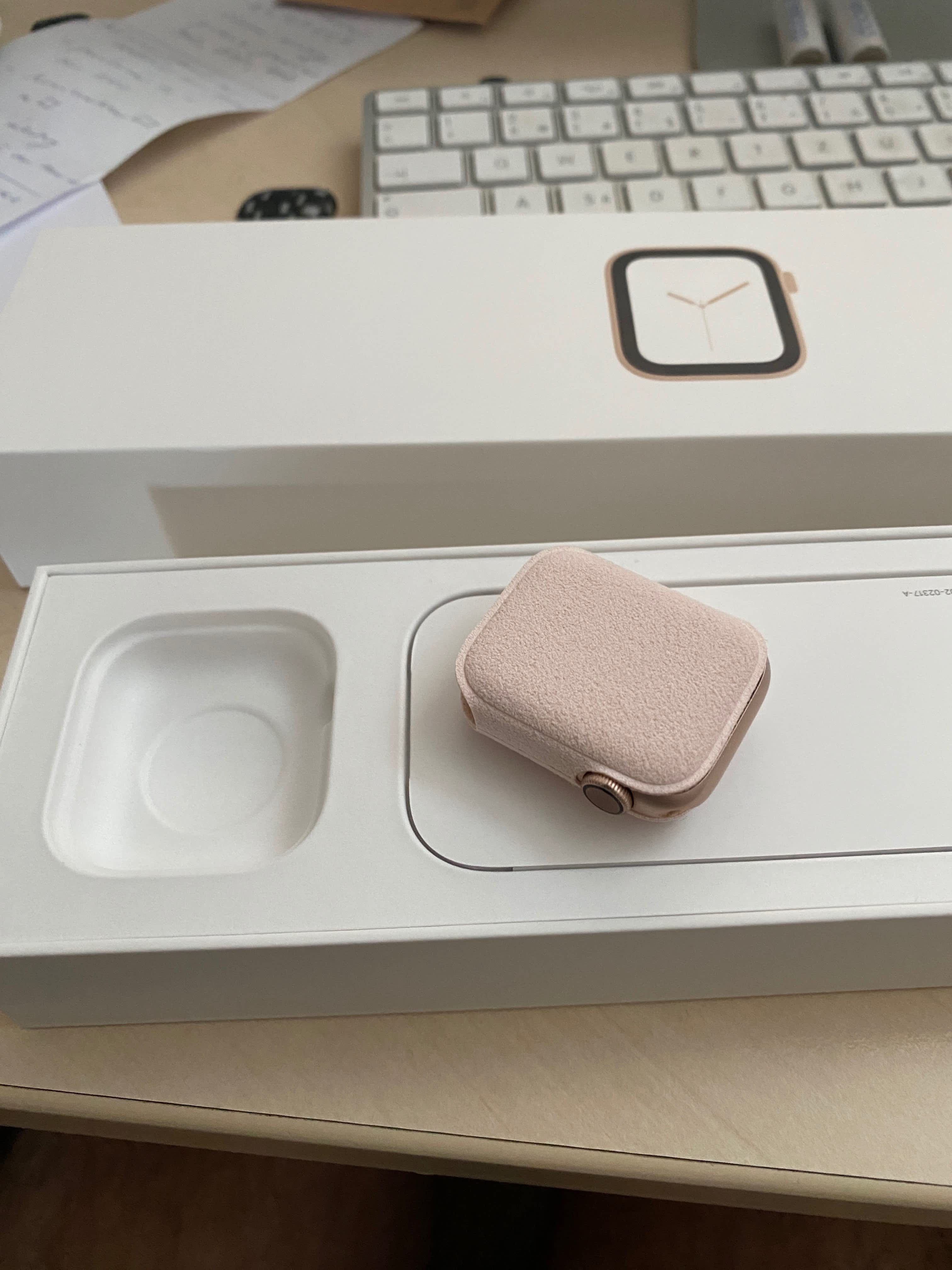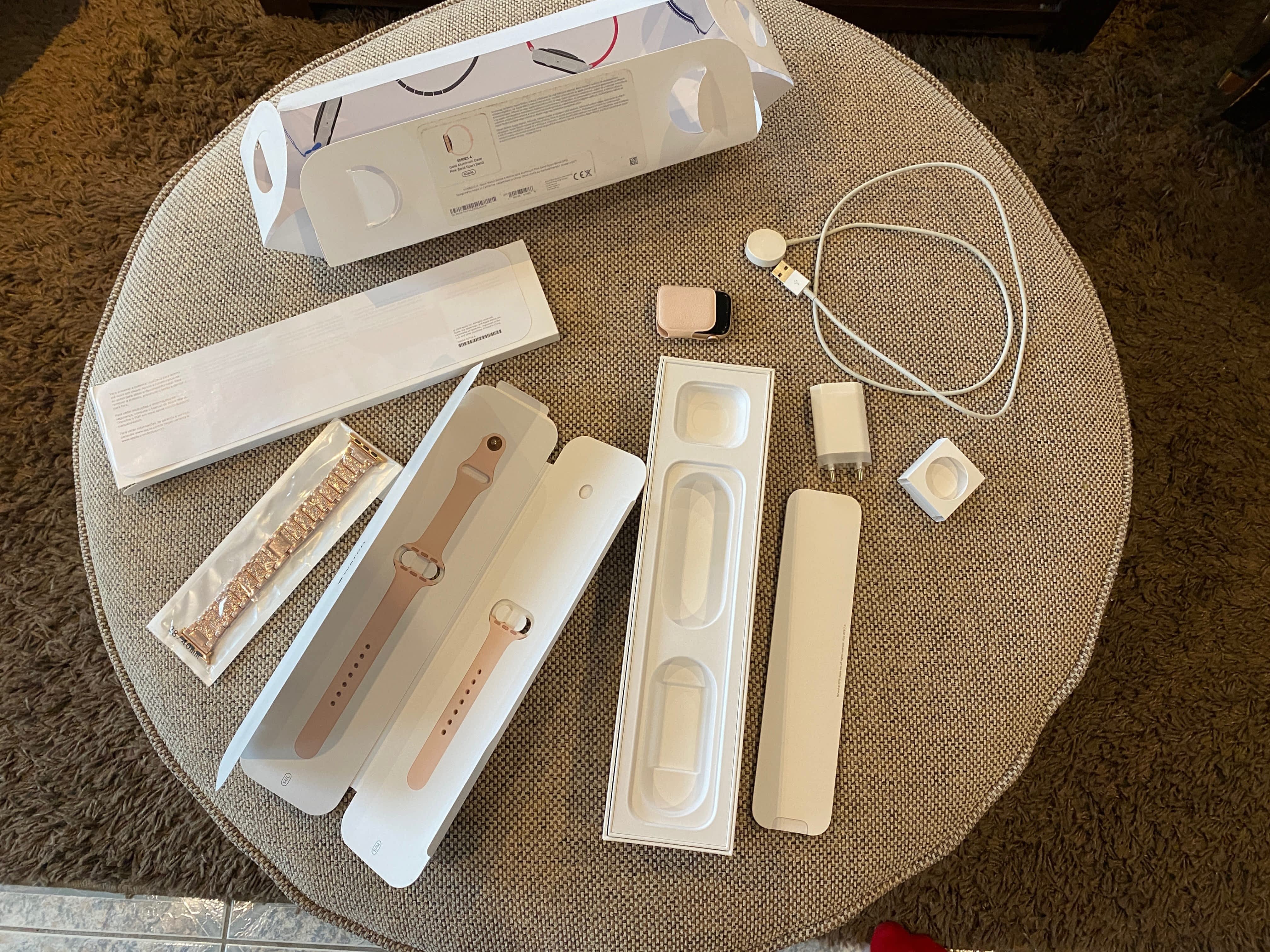 Prodám kompletní použité Apple Watch 4 40mm rosegold + pásek+nabíječka viz.foto. Nové byly koupené v iWontu. Plně funkční drobné oděrky.