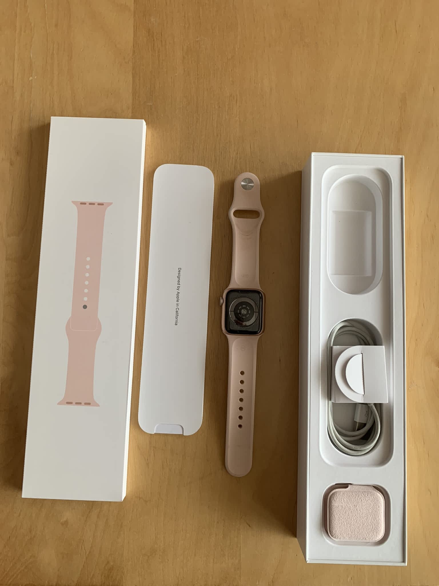 Prodám Apple watch 5 series – 40 mm – rose gold. Koupeno 2019. Hodinky nesou znaky běžného denního používání. Hodinky jsou plně funkční s originálním obalem. Dále přidávám navíc krátký nabíjecí kabel.