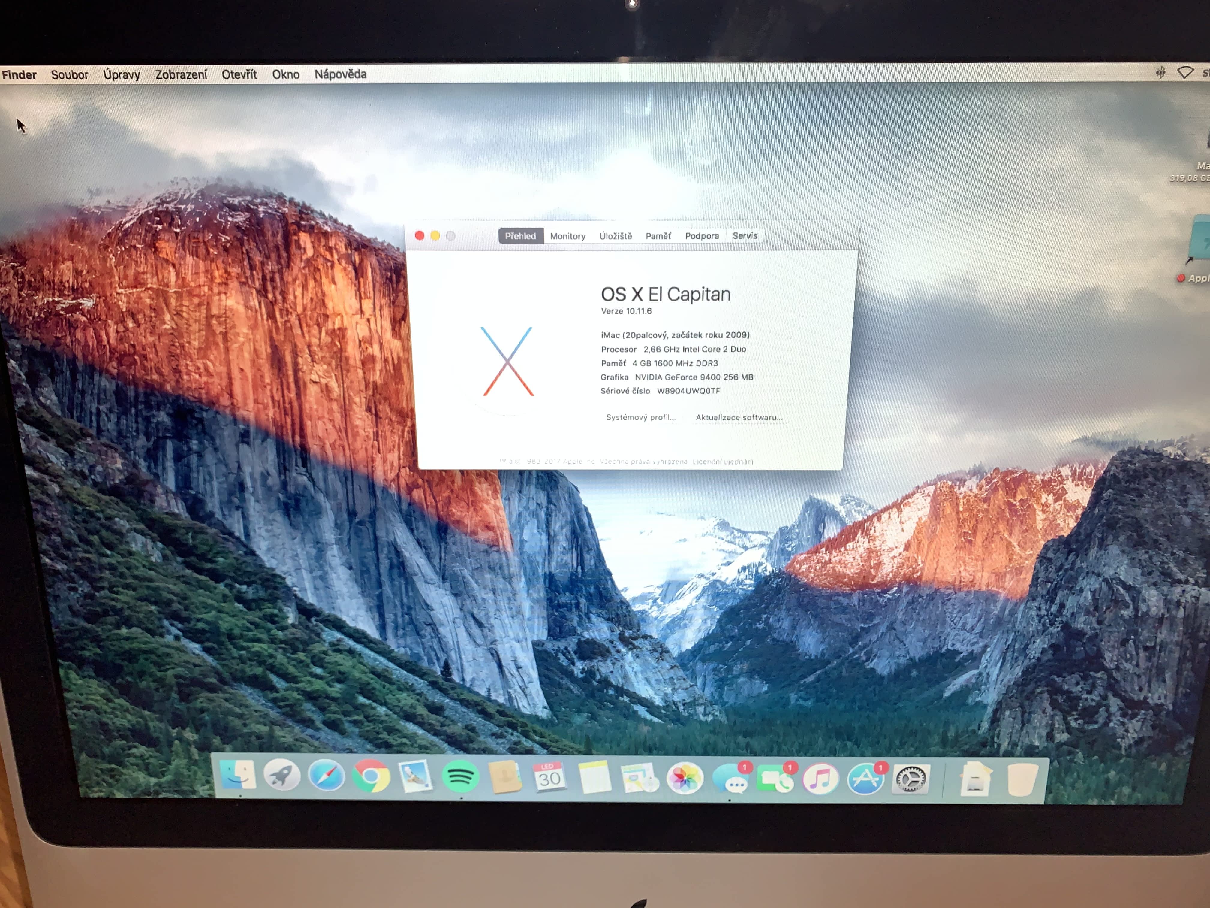 Procesor 2,66GHz Intel Core 2 Duo, 4 GB 1600MHz DDR3, NVIDIA GeForce 9400 256 MB, 320 GB,Klávesnice,Os El Capitan Osobně Brno,Blansko