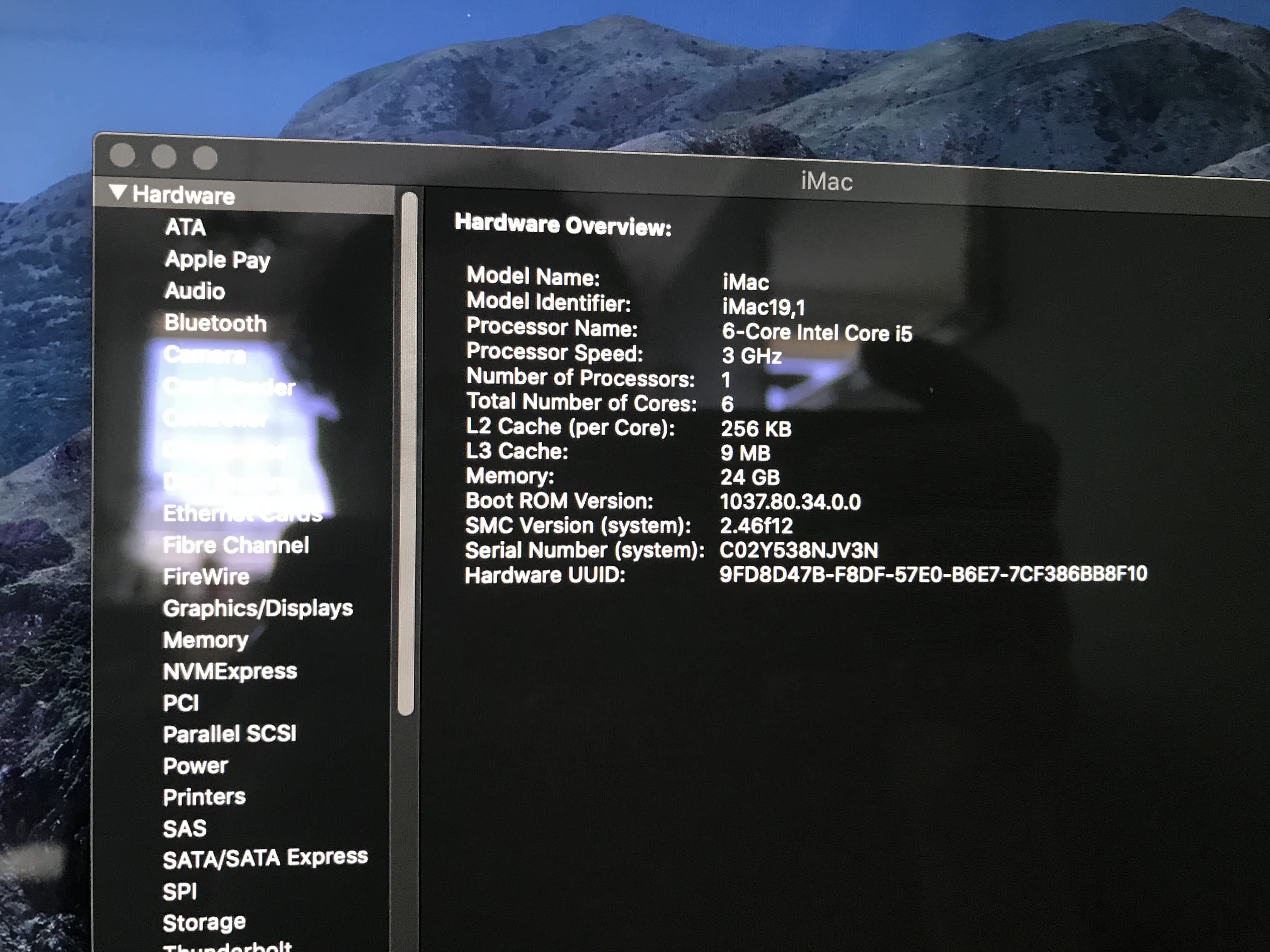 3,0GHz 6jádrový procesor, Turbo Boost až 4,1 GHz 1TB úložiště Retina 5K displej 3,0GHz 6jádrový Intel Core i5 osmé generace Turbo Boost až 4,1 GHz 24 GB 2666MHz paměti DDR4, možnost objednat až 32 GB 1TB Fusion Drive¹ Radeon Pro 570X se 4 GB paměti GDDR5 Dva porty Thunderbolt 3 Retina 5K P3 displej s rozlišením 5120 × 2880