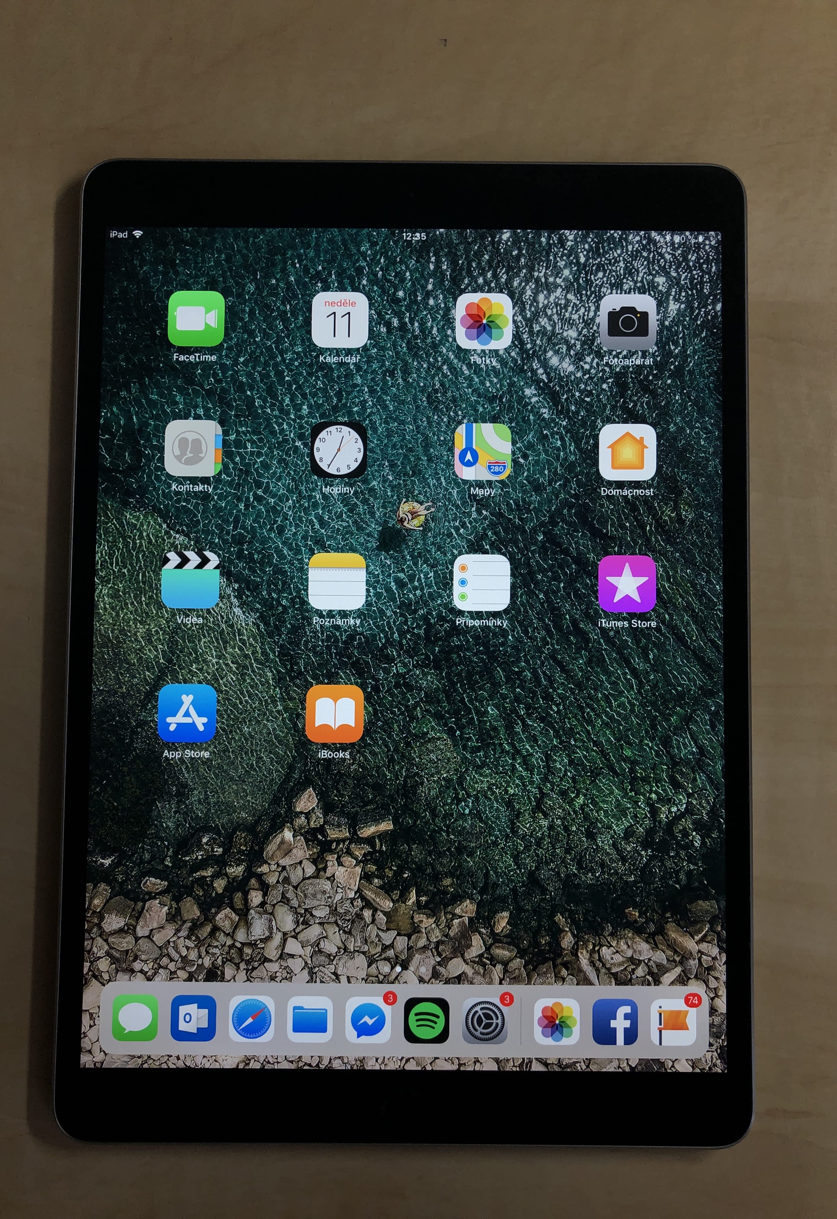 – procesor A10X s 64bitovou architekturou a pohybovým koprocesorem M10, multidotykový Retina 10,5" LED 2224×1668, interní paměť 256 GB, WiFi 802.11ac, Bluetooth 4.2, 2x webkamera, 4x reproduktory, Touch ID, Lightning konektor, iOS 12