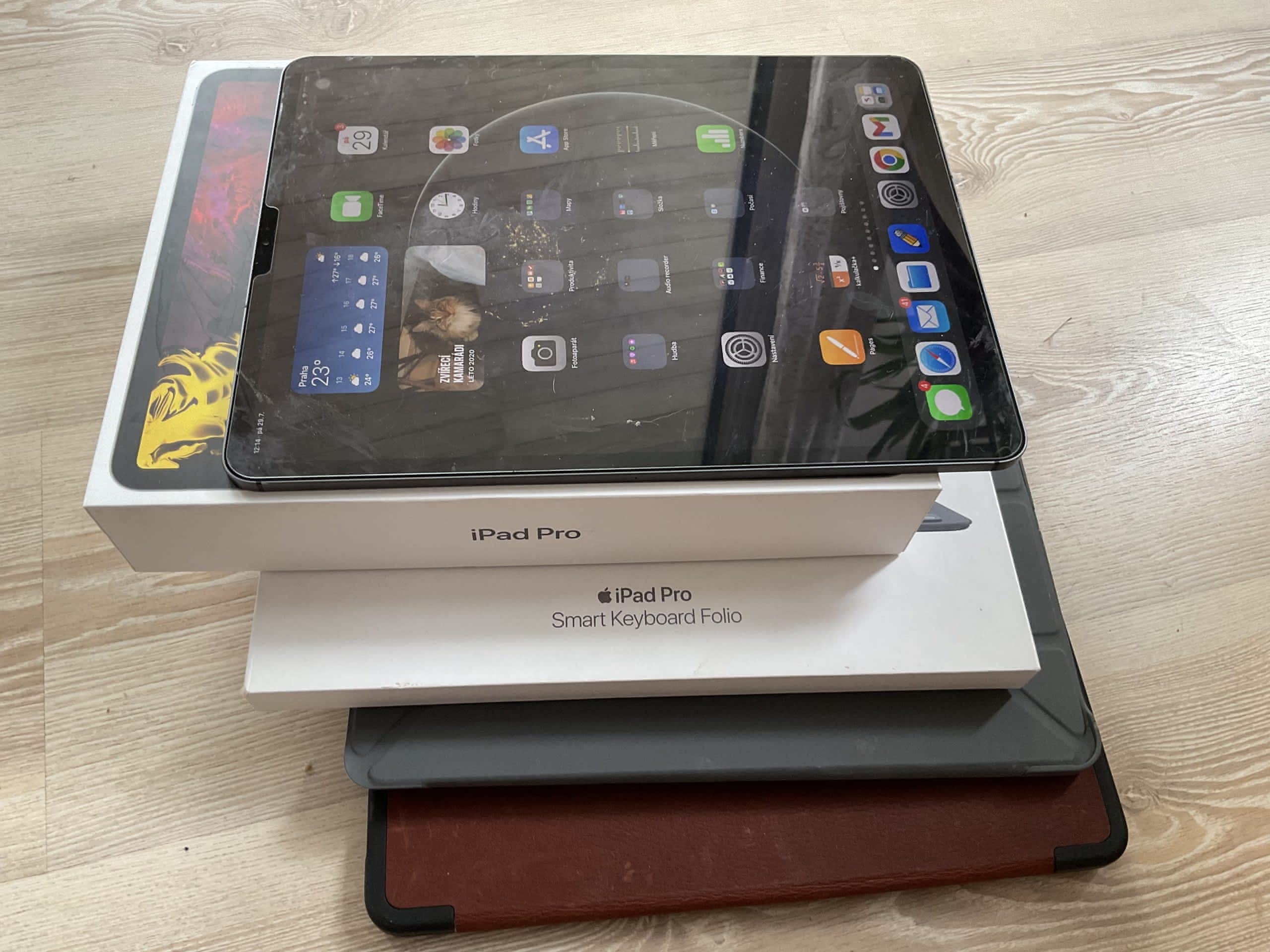 Prodám Apple iPad Pro 12,9” 1TB barvy Space Gray (2018). Jedná se o třetí generaci přístroje a druhou nejvyšší konfiguraci s větší pamětí RAM(6GB). Přístroj je v bezvadném stavu vždy nošen v ochranném obalu a nalepeným sklem. Součástí prodeje je i originální Apple Smart Keyboard Folio a obaly firem Decoded a Pipetto.