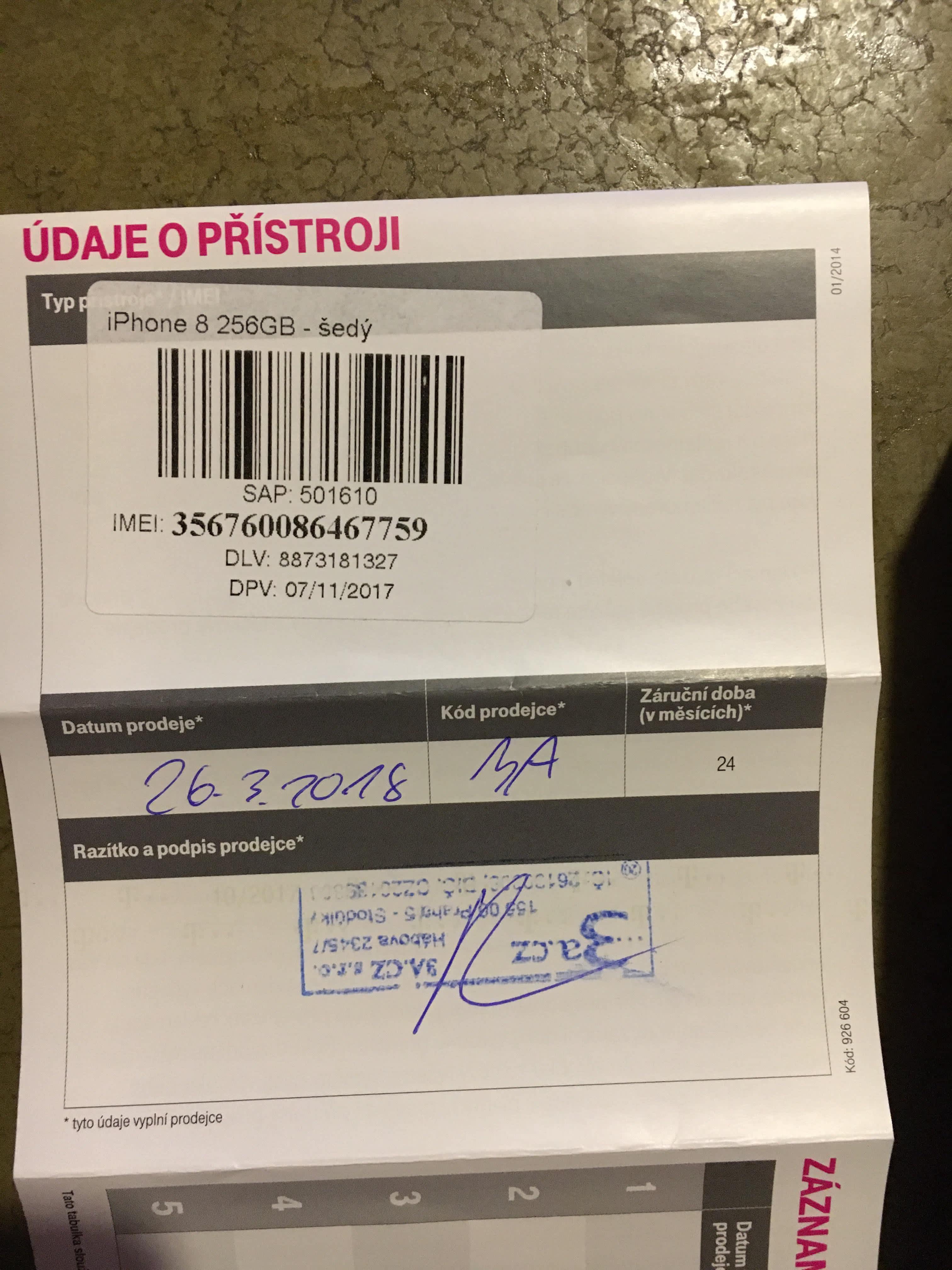 Prodam novy pouze rozbaleny iphon 8 256 gb se zarukou 2 roky