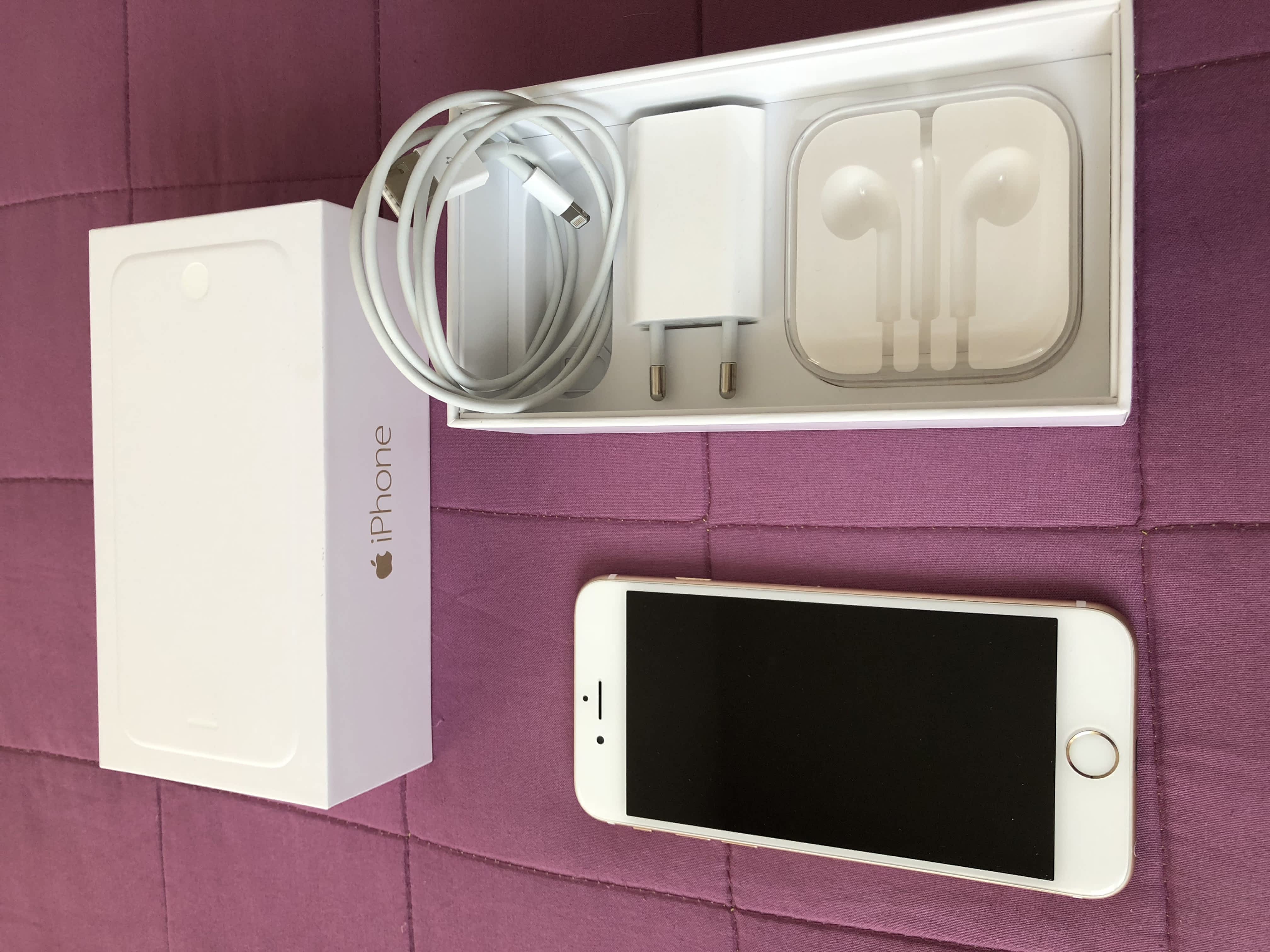 Prodám iPhone 6, Gold, 16gb. Telefon je v perfektním stavu, bez škrábanců či prasklin, nošen pouze v obalu. S originál krabičkou, v balení i originální nabíječka + kabel.