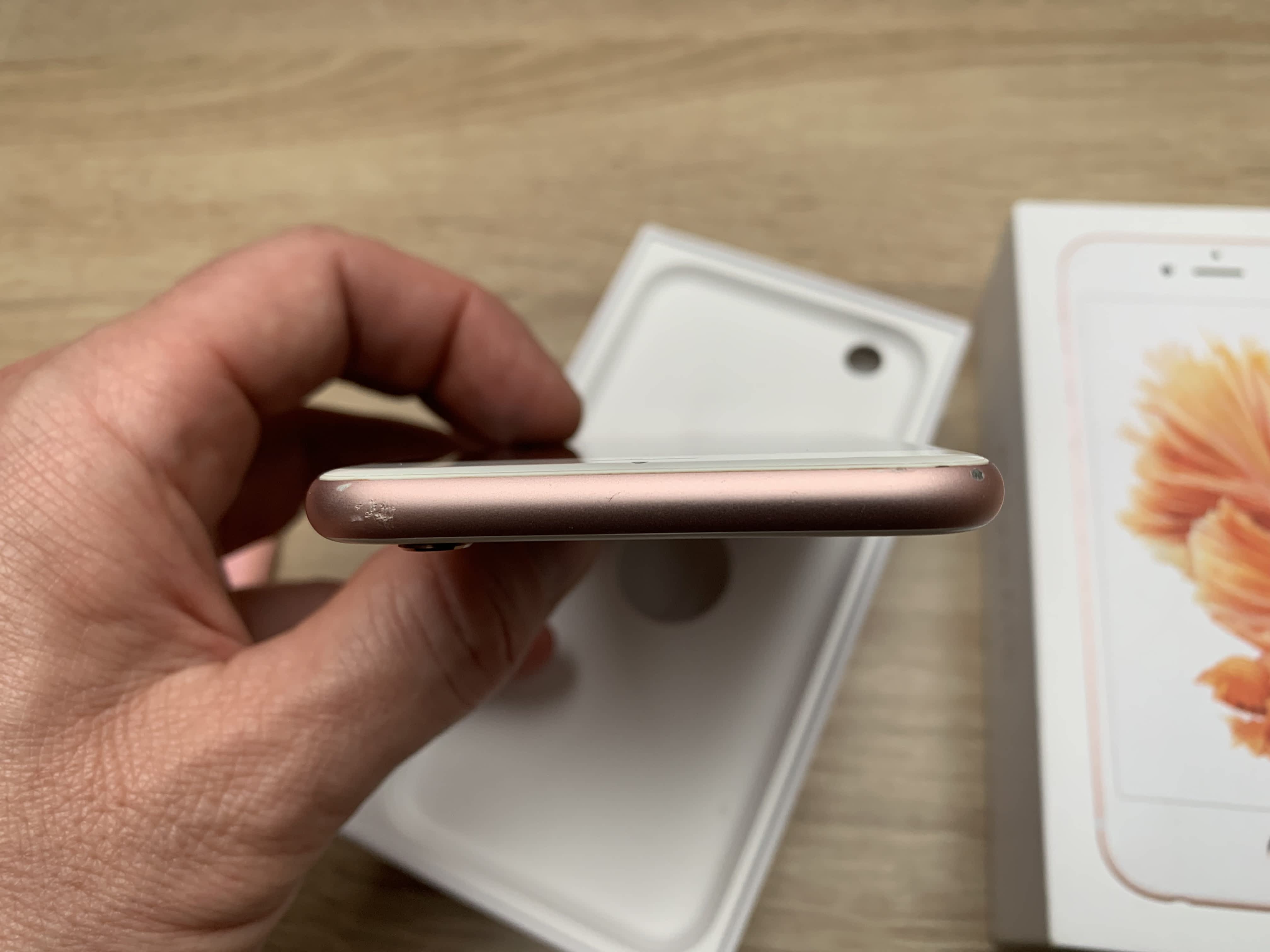 iPhone 6S 64 GB v Rose Gold provedení. Stáří telefonu tři roky, ve velmi dobrém stavu. Na horní hraně oděrky. iCloud odhlášen, telefon není blokován od operátora, vše je plně funkční. Prodáváno v původní krabičce, včetně nabíječky, sluchátek. V ceně originální silikonový kryt a další kryty viz foto.