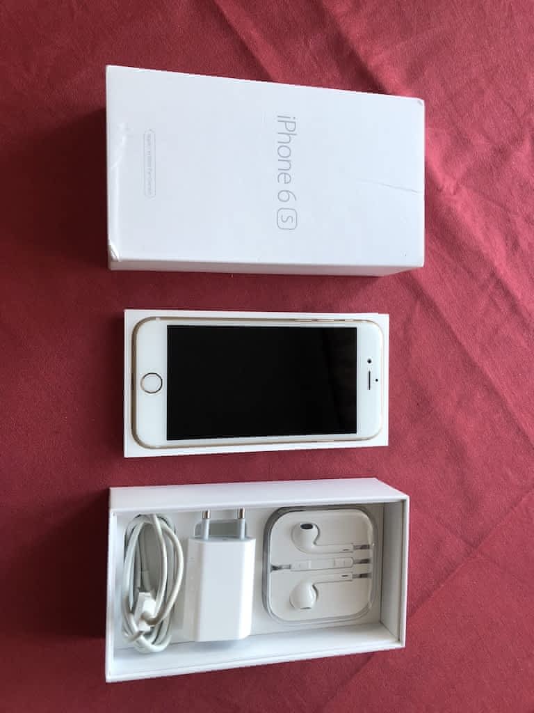 Prodám iPhone 6s 128 GB ve zlaté barvě včetně krabičky. Zařízení je v moc pěkném stavu, což dokládají fotky, na displeji bylo po celou dobu používání nalepeno ochranné sklo a zařízení bylo celou dobu nošeno v obalech. Zařízení bylo zakoupeno na konci srpna minulého roku jako distribuce USA, tzn. už není v záruce, ale přikládám k němu 5W nabíjecí adaptér, který je nový – součástí balení je tedy evropský adaptér, 1m kabel, sluchátka nepoužitá a origo zabalená a samozřejmě návody se samolepkami. K iPhonu přidám zdarma 4 obaly viz fotky. Cena je 9000Kč. Preferuji osobní předání v Praze či ve Středních Čechách.