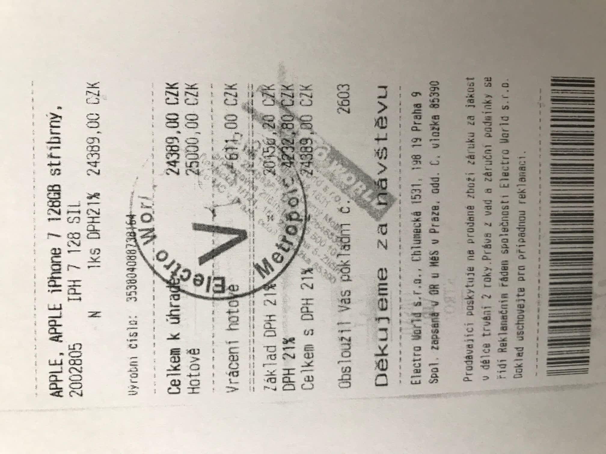 Prodám Iphone 7 128GB stříbrný, kupován 28.11. 2016 v ElectroWorldu,záruka do 28.11. 2018. Bez známek používání, na displeji ochranné sklo. Kompletní balení.
