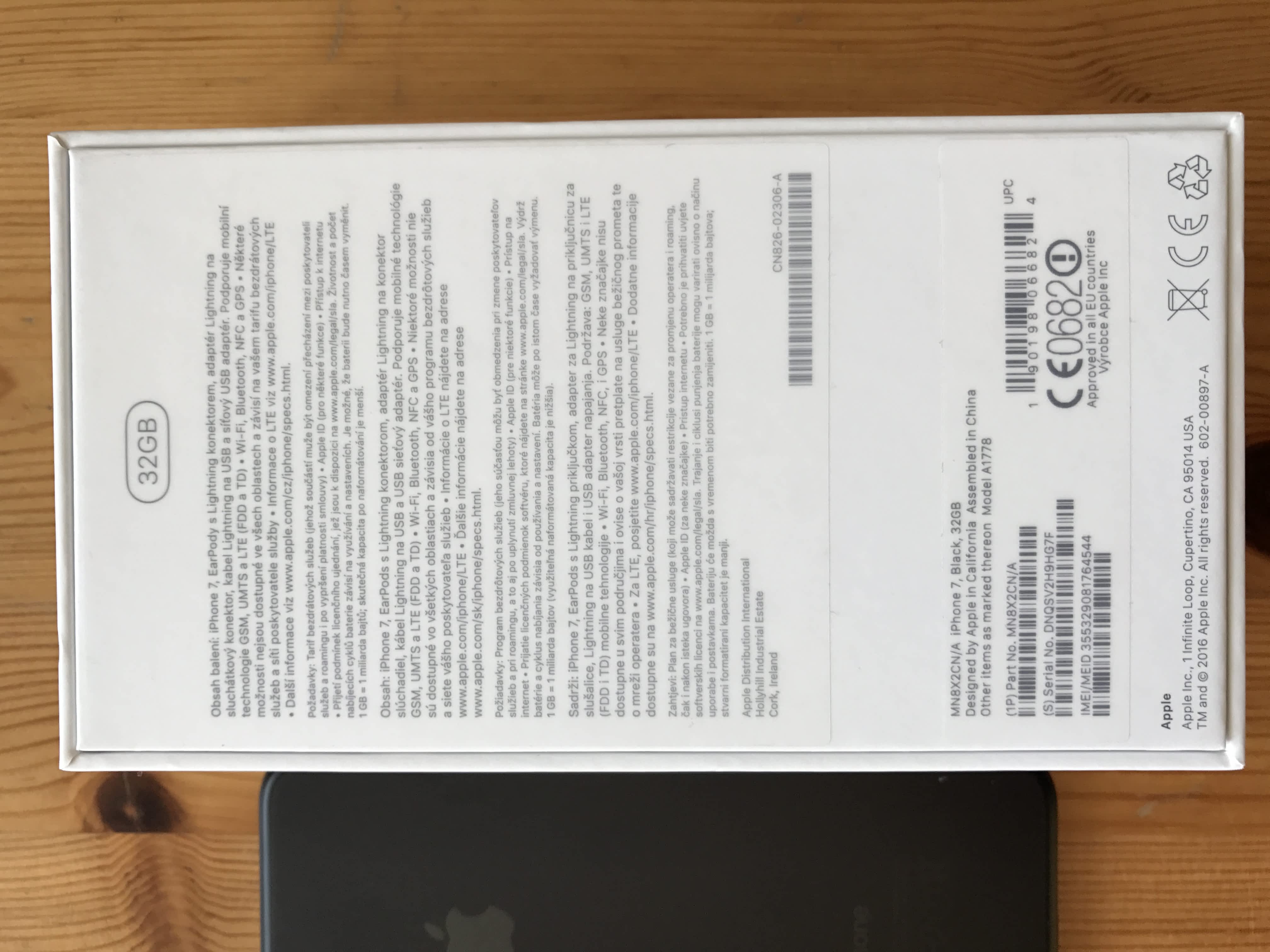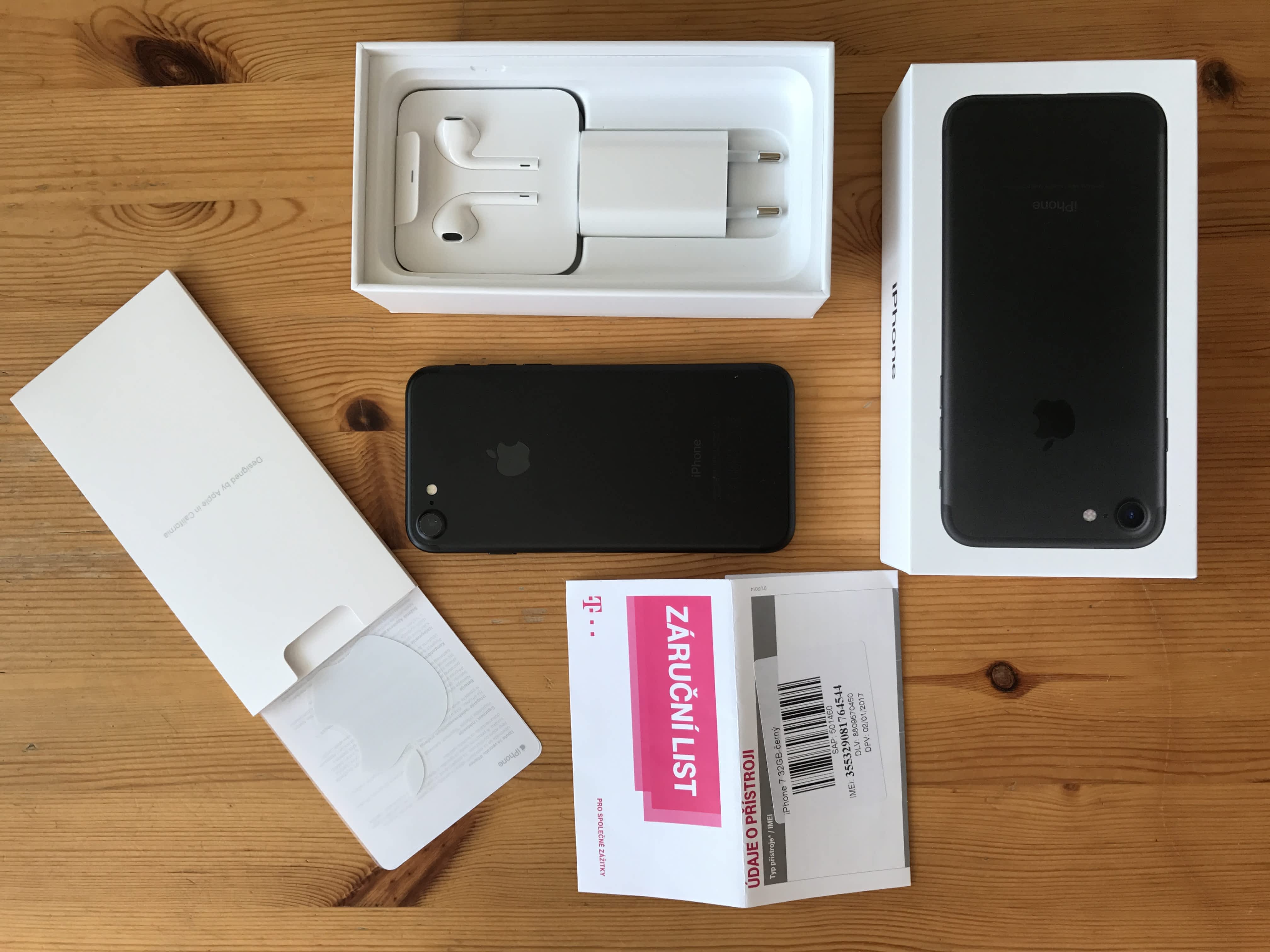 Prodám zánovní Iphone 7 32GB v barvě Matte Black. Telefon je kupovaný 20.2.2017 u T-mobile, ihned nalepeno ochranné sklo a nošen v obalu. Telefon je ve stavu NOVÝ, bez jakýchkoliv známek používání. Příslušenství kompletní, ani nevybaleno a nepoužito.
