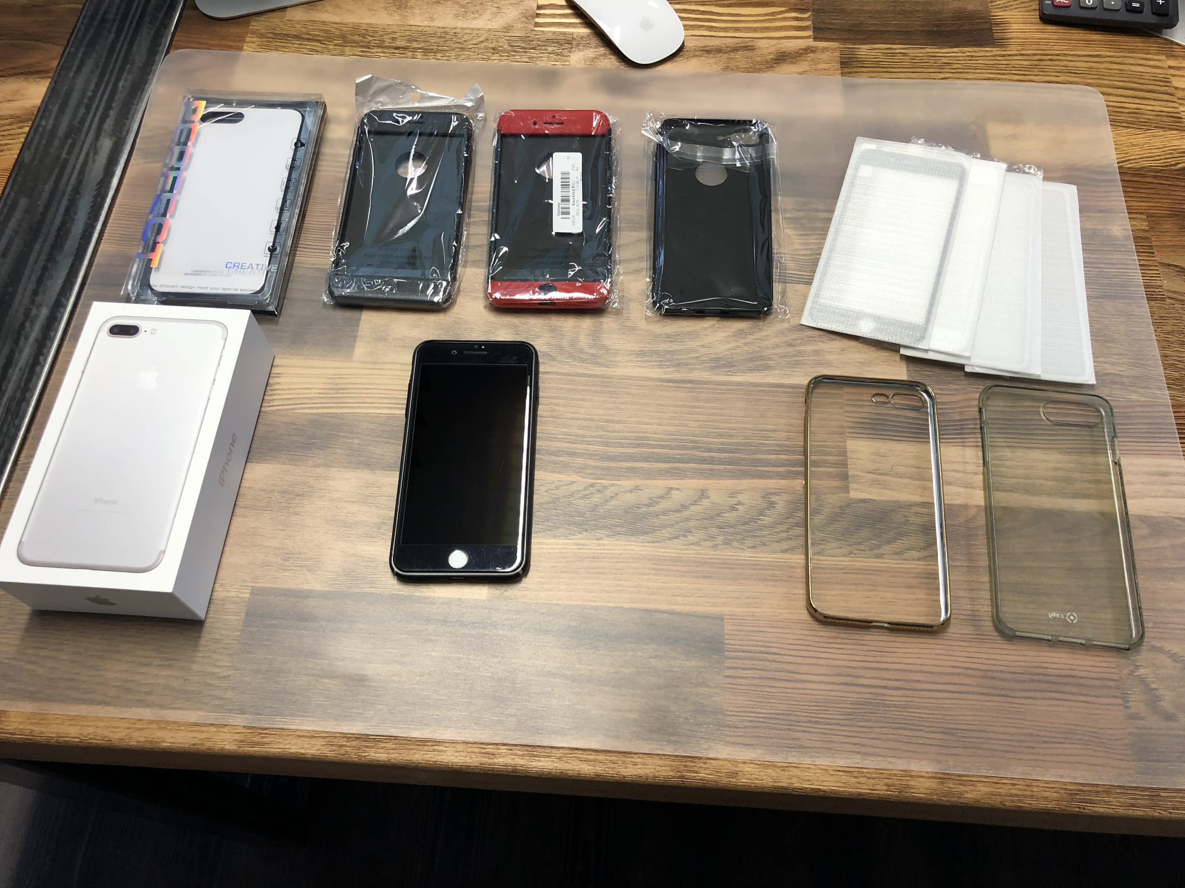 Prodám iPhone 7plus 256 gb stříbrný, rok starý, stav jako nový bez jediného škrábance. Vždy byl nošený v pouzdře a s ochranným sklem. Dodám k němu zdarma 4 plastové kryty, 2 silikonové kryty a náhradní 4 ochranné skla – viz foto.