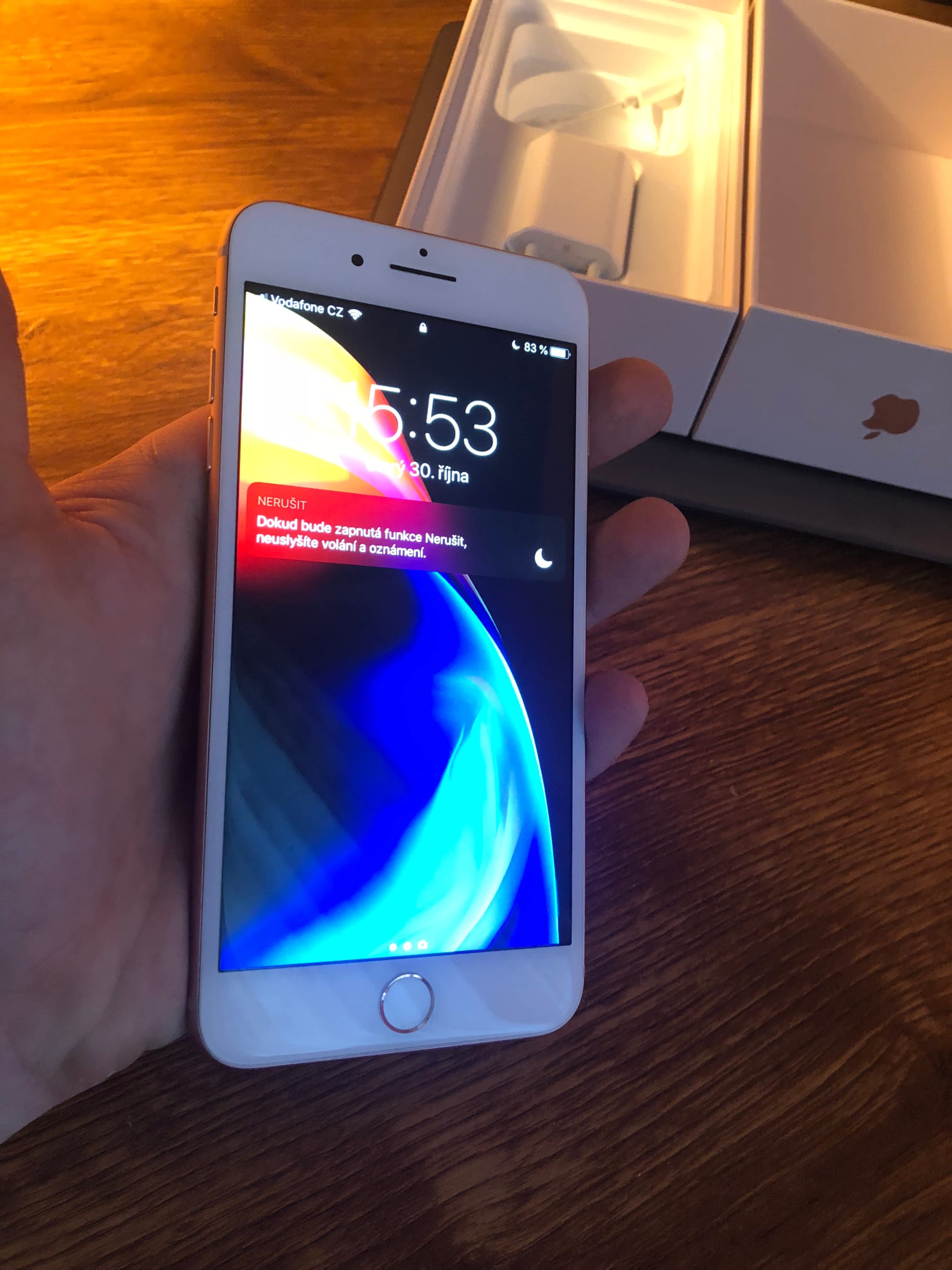 Prodám iPhone 8 Plus 256GB Gold, CZ distribuce, kupován 11/2017 (ještě 13 měsíců záruka), celou dobu nošen s krytem (všechny kryty v ceně), skleněná záda naprosto v pořádku, bez škrábanců, vizuální stav telefonu 9.5/10, vše funkční včetně Touch ID, nainstalován iOS 12, kompletní balení (krabička, usb adaptér, lightning kabel, redukce lightning-jack, bez sluchátek – z hygienických důvodů). Prodej z důvodu přechodu na jiný model. Pouze osobní odběr nebo odeslání při platbě předem. Na dobírku nezasílám. Při prodeji bude telefon obnovený do továrního nastavení, připravený k použití pro nového uživatele, odhlášené Apple ID a Find My IPhone. Více fotografií není problém kdykoliv poslat mailem. Preferuji buď SMS/iMessage a nebo email.
