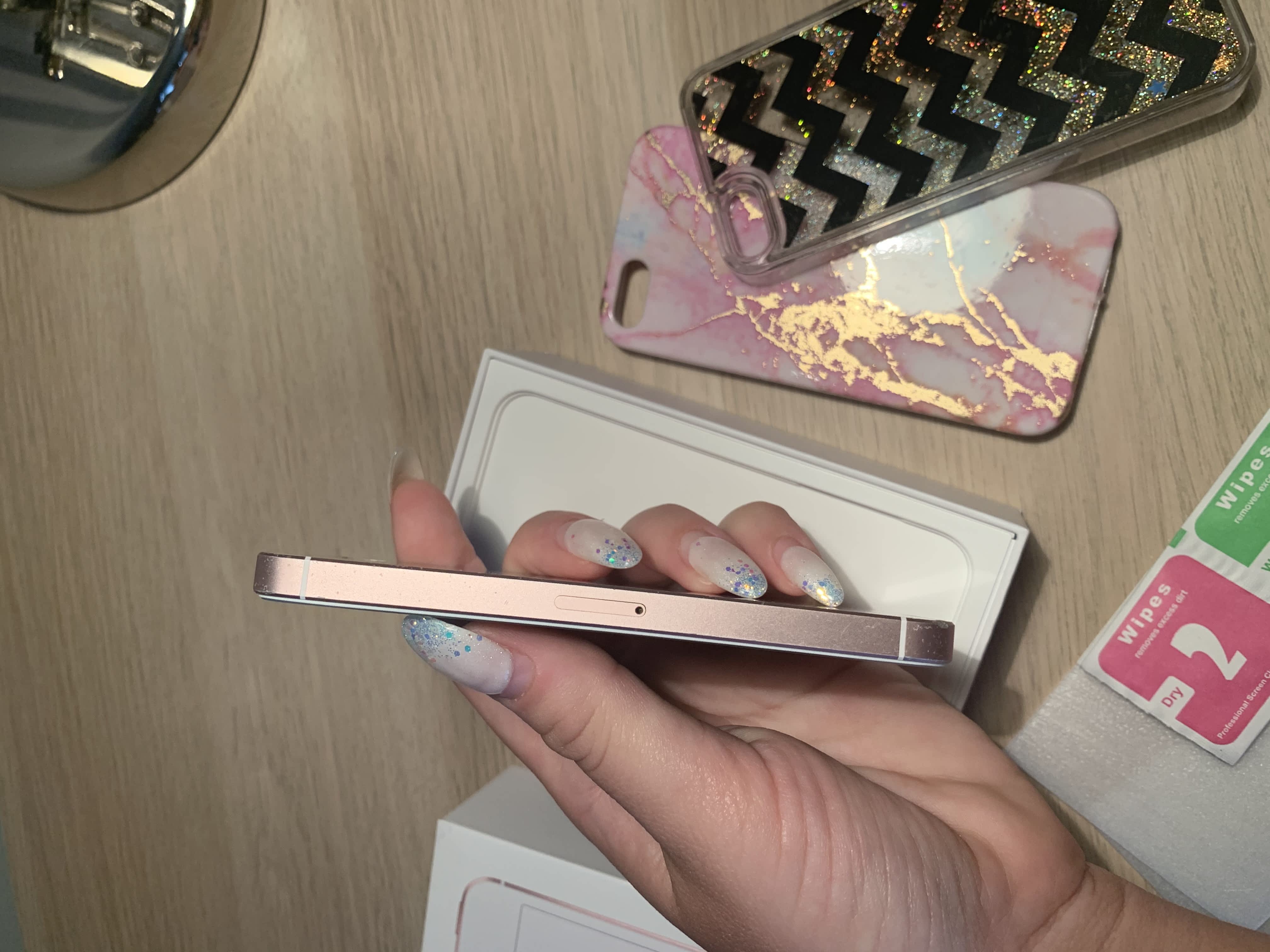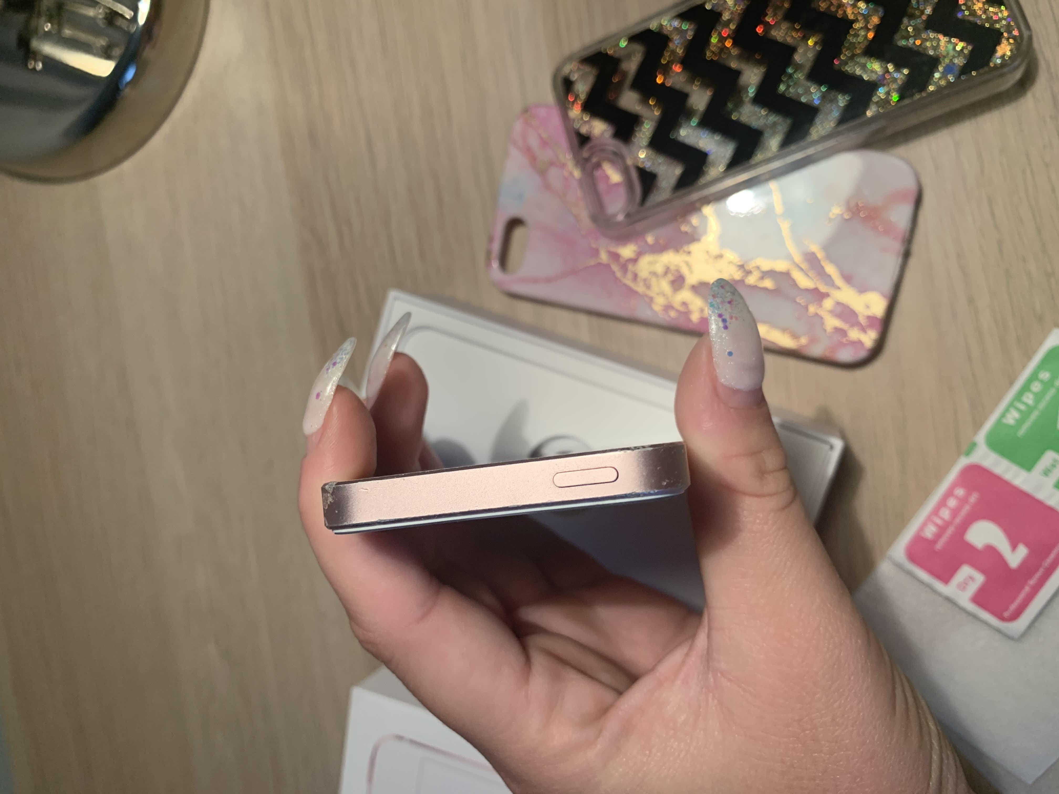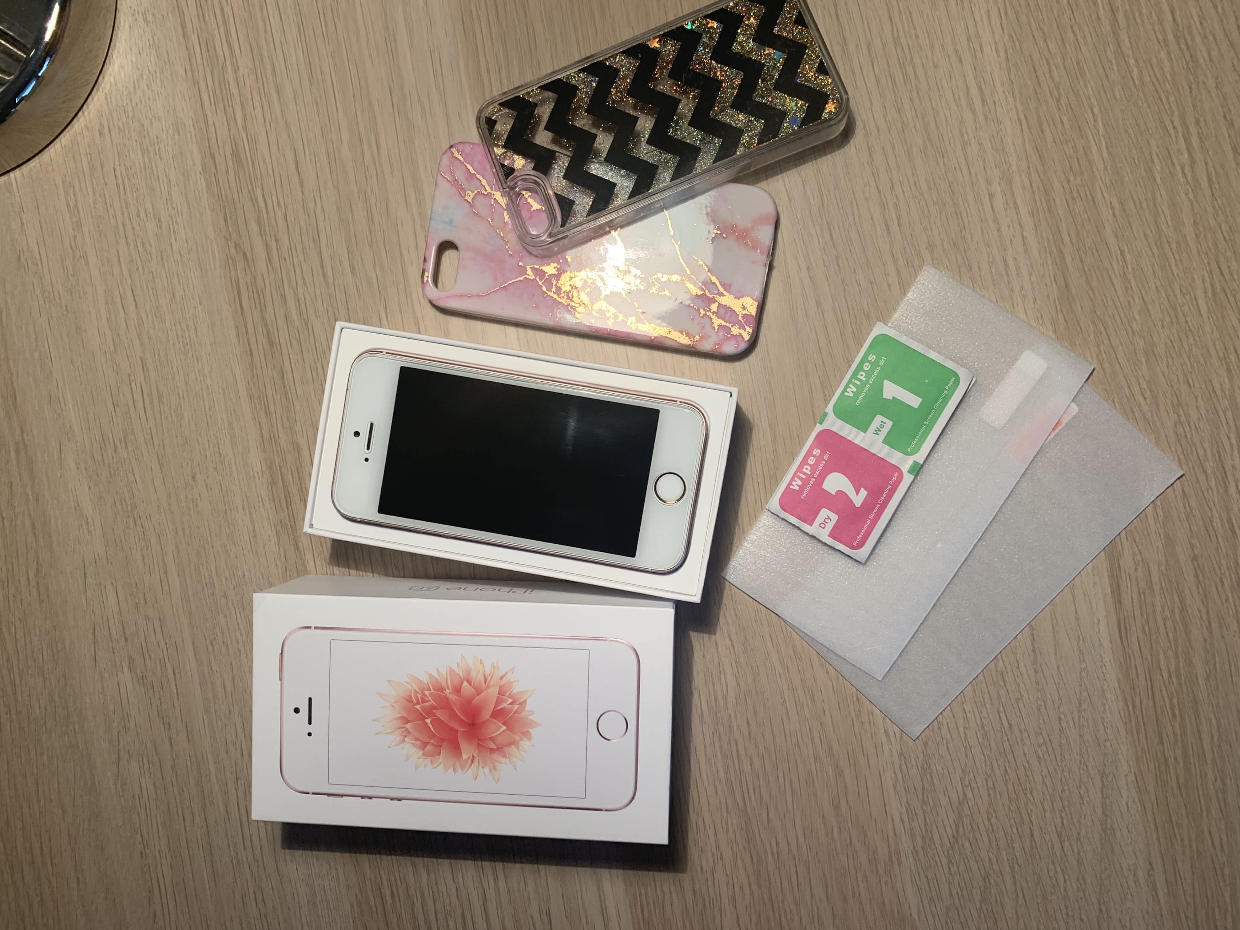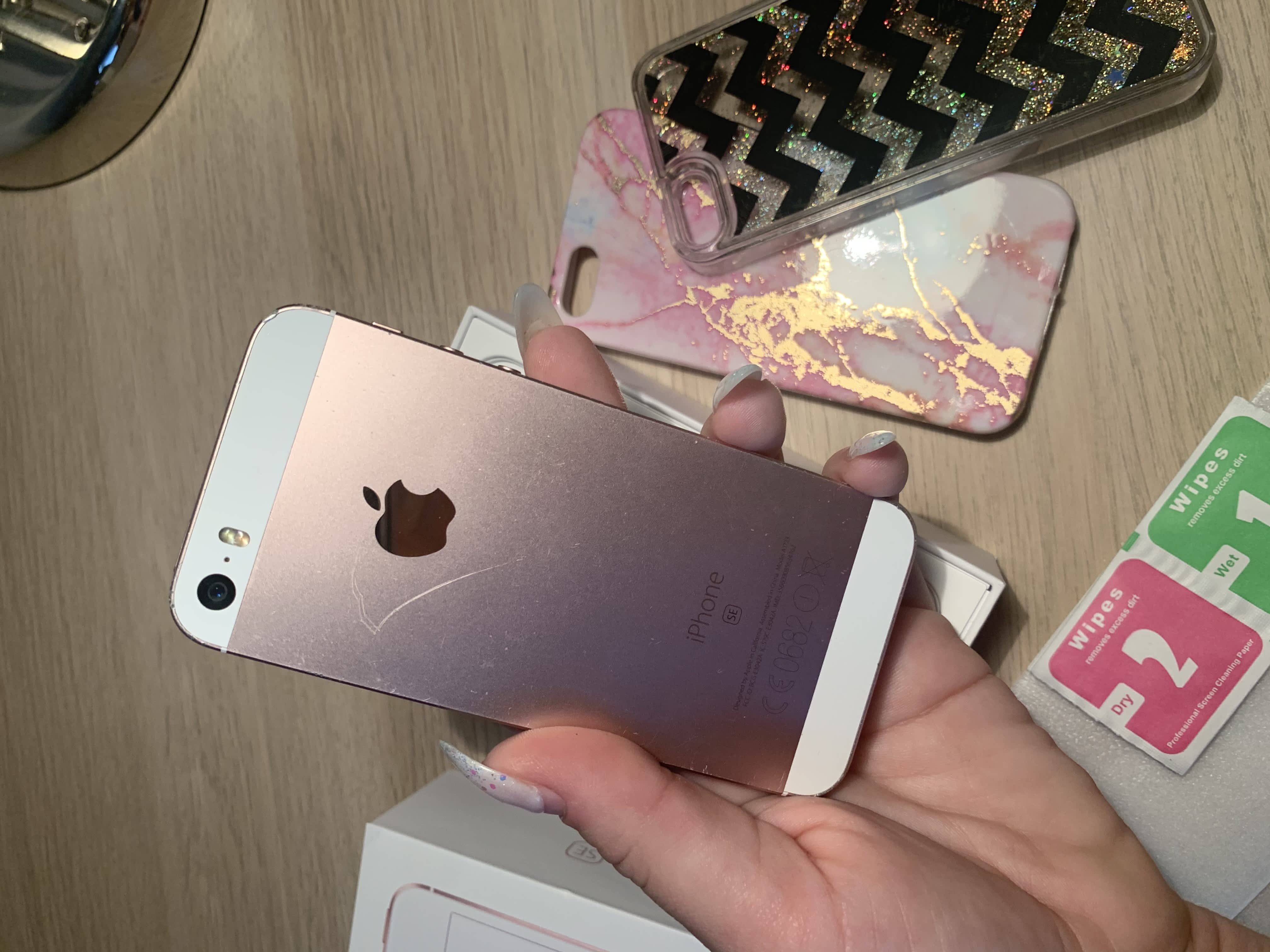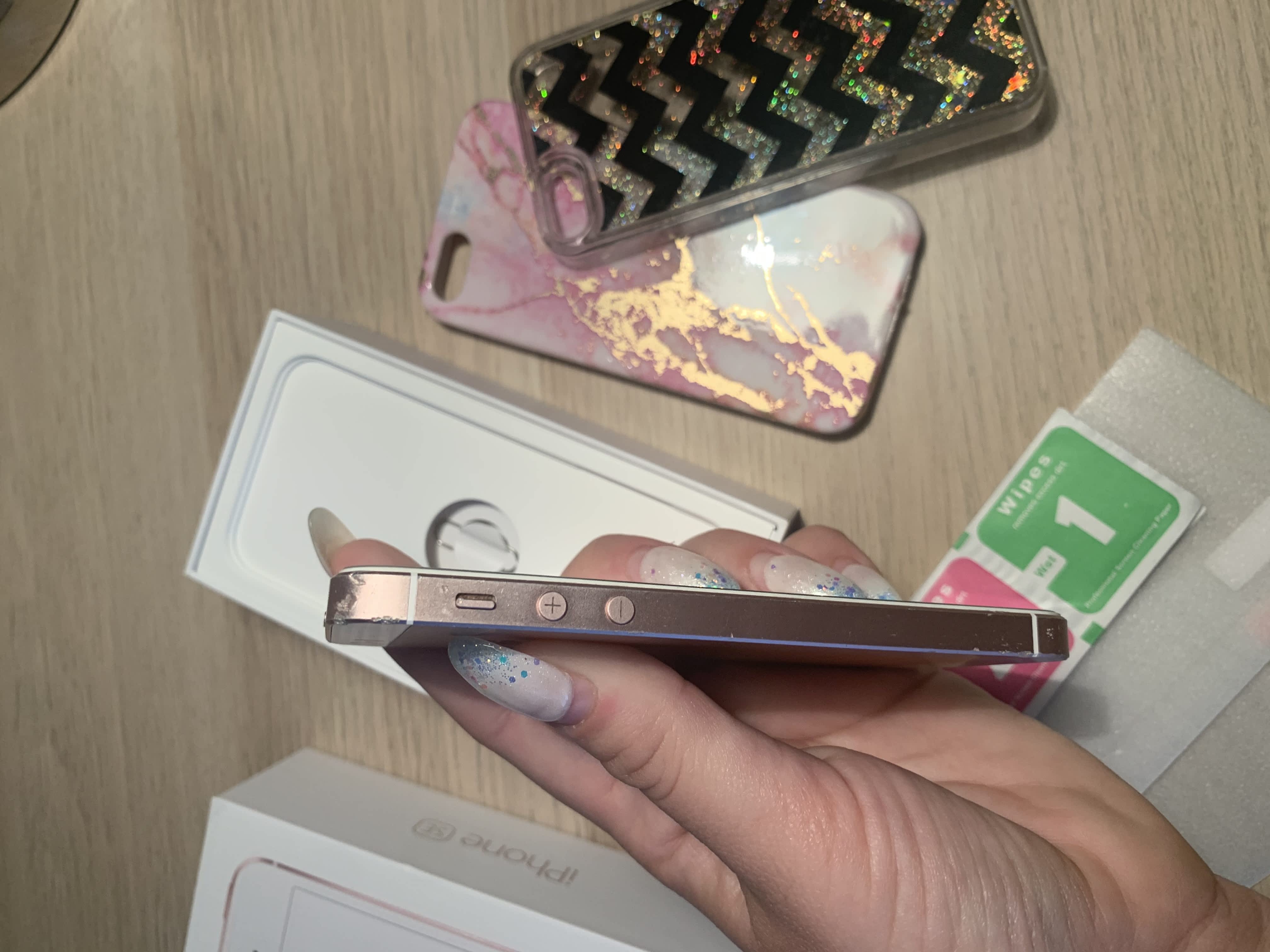 Prodám iPhone SE růžový, 32GB. Kupovaný 26.11.2017 v iStyle – doklad o koupi na fotce, ještě pár dnů je na něj záruka. Prodám ho s krabičkou a kryty, nabíječka a sluchátka k němu jsou, ale jsou používané, proto nejsou součástí nabídky. Na telefonu je nalepeno tvrzené sklo + 2 skla k telefonu v ceně.